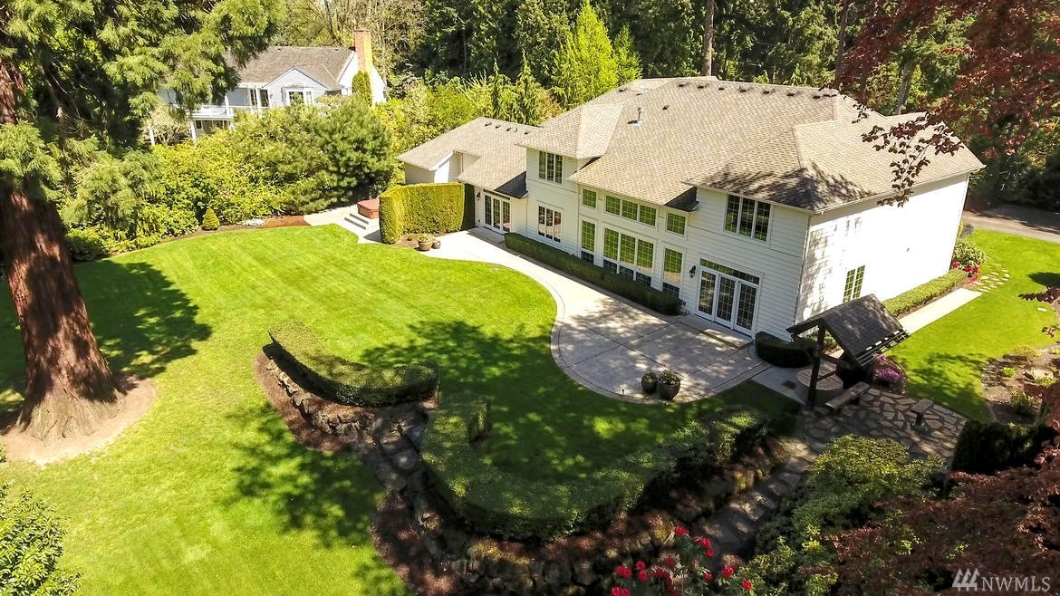 Luxe Estate in the Heart of Medina complete with 84' of shared waterfront! This grand, custom residence sits on almost an acre of manicured grounds along desirable Evergreen Point Rd. Stately entry with formal living/dining, soaring ceilings, endless windows, stunning hardwoods and detailing throughout. An imperial kitchen leads to open living and a pristine, private backyard. Lavish master suite on main level. Media and workout rooms, large office/den and 2 garages. An inspiring Medina retreat.