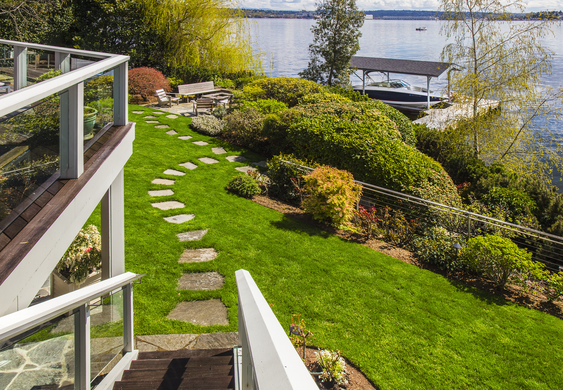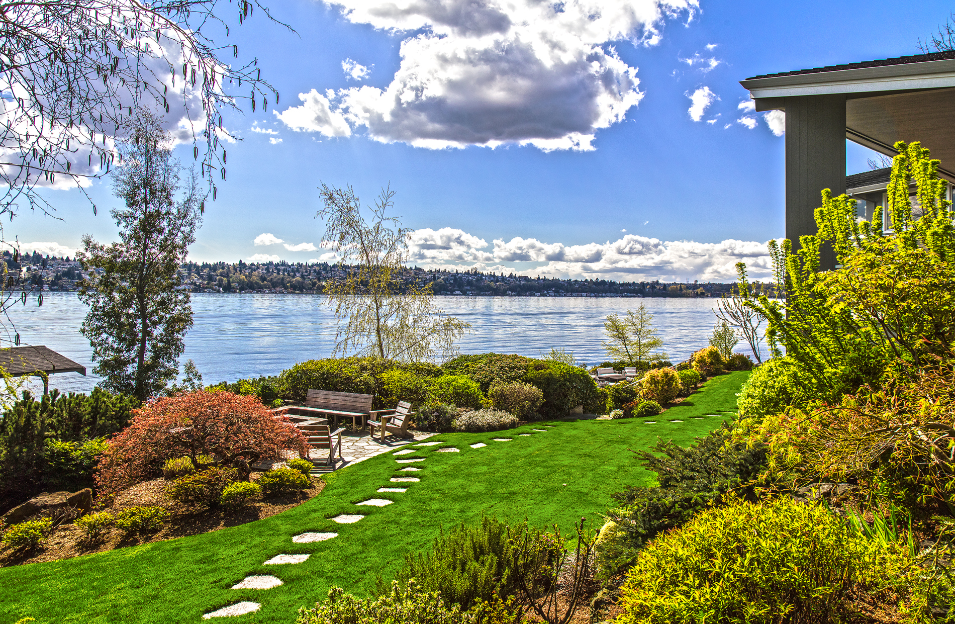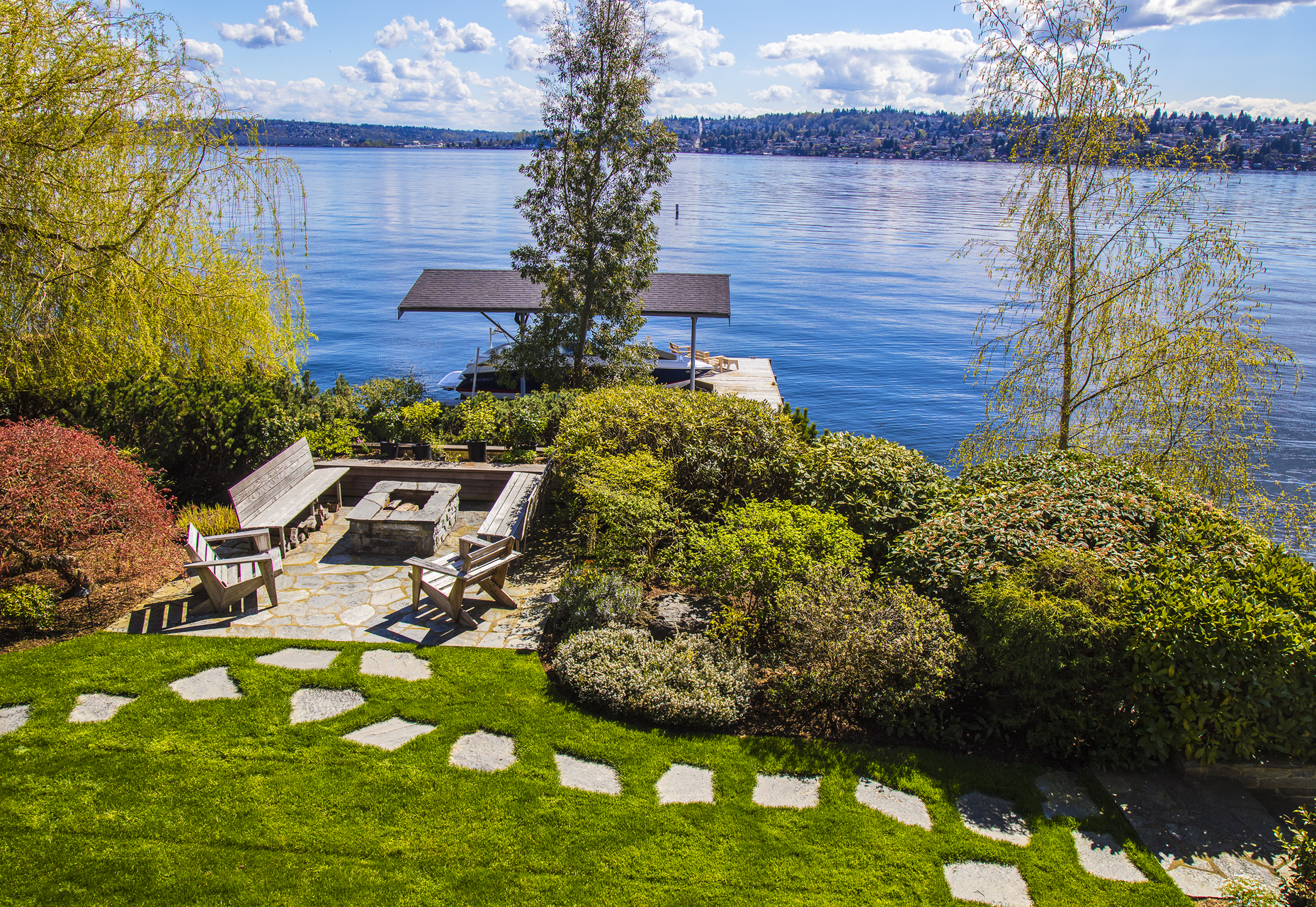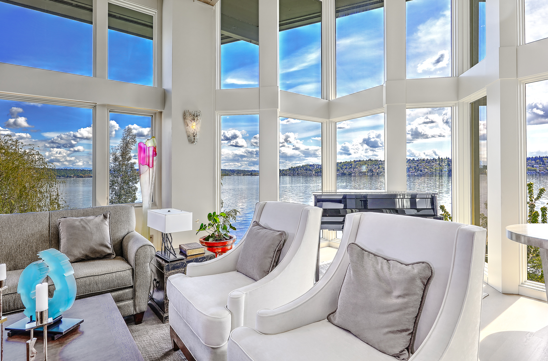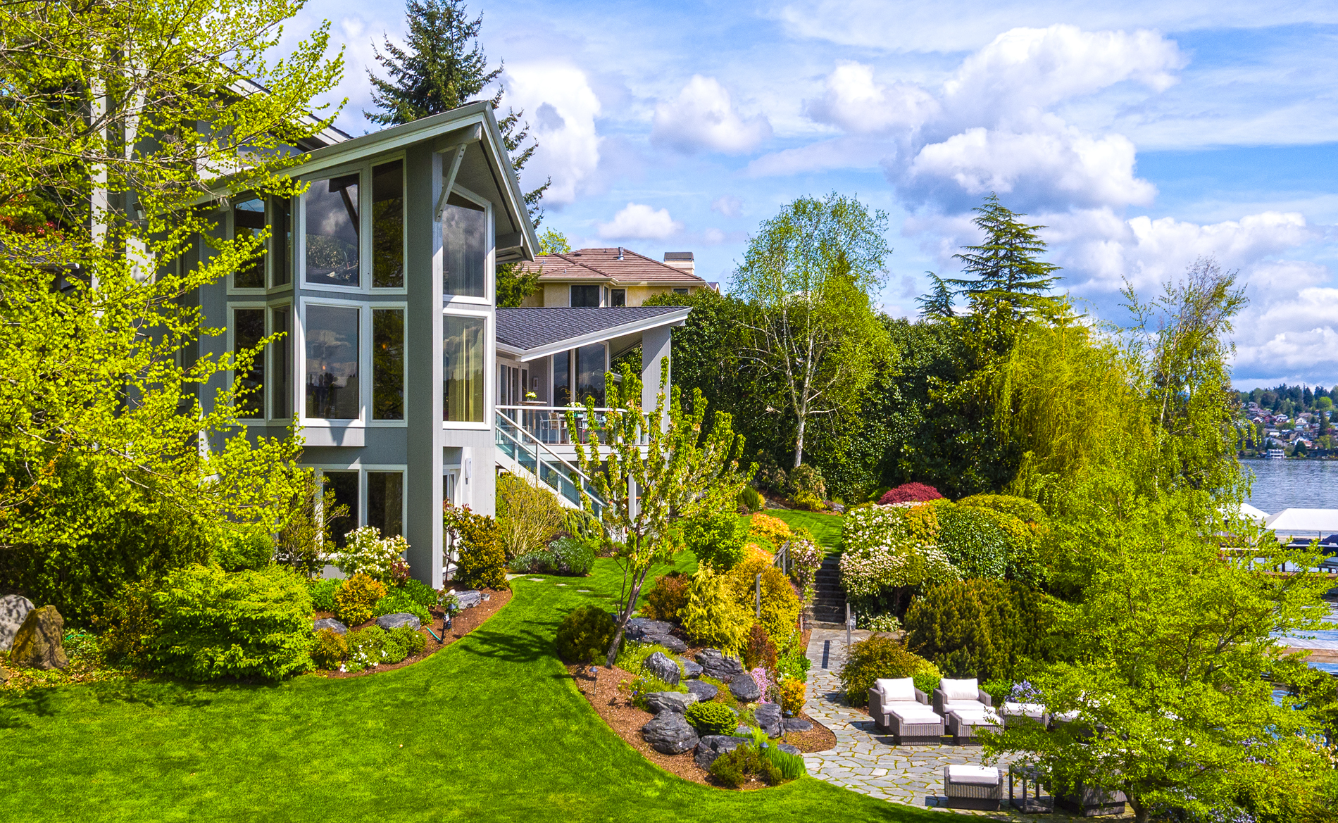 Southpointe, 1 of 20 such tips on Lk Washington. Custom contemporary 2009 home is over 100 wide, opportunistically capturing light and vistas dawn to dusk. Mt Rainier in every conceivable color, framed up dramatically in two story walls of glass. Exquisite fully appointed kitchen befitting the culinary artist. 5 full suites. Extensive guest parking. 145+ of no bank waterfront, expertly designed grounds with multiple destinations. Exclusive dock, covered moorage, multiple lifts. Brilliance!