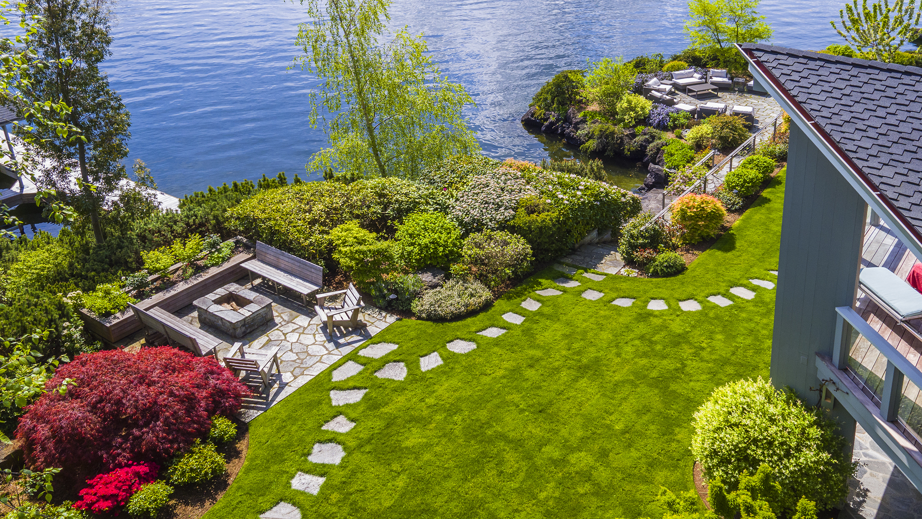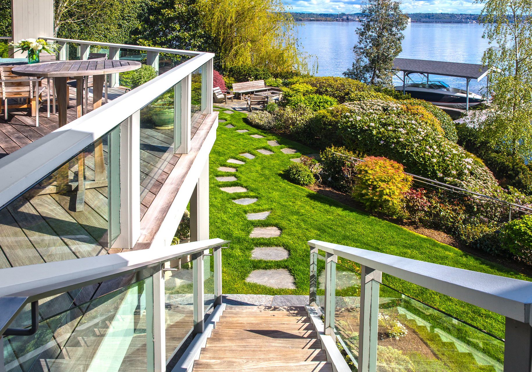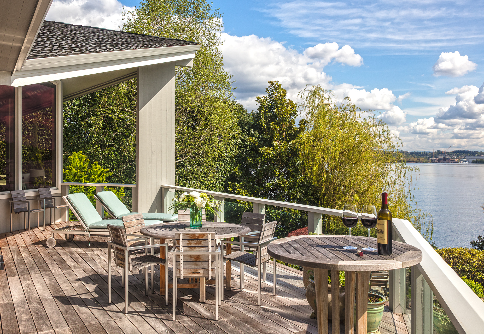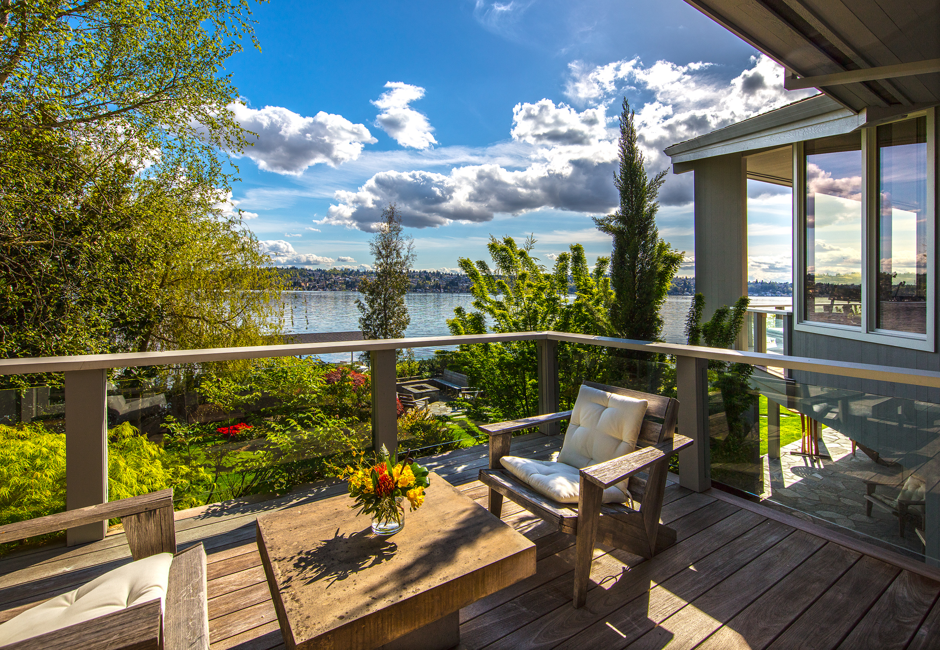 Southpointe, 1 of 20 such tips on Lk Washington. Custom contemporary 2009 home is over 100 wide, opportunistically capturing light and vistas dawn to dusk. Mt Rainier in every conceivable color, framed up dramatically in two story walls of glass. Exquisite fully appointed kitchen befitting the culinary artist. 5 full suites. Extensive guest parking. 145+ of no bank waterfront, expertly designed grounds with multiple destinations. Exclusive dock, covered moorage, multiple lifts. Brilliance!