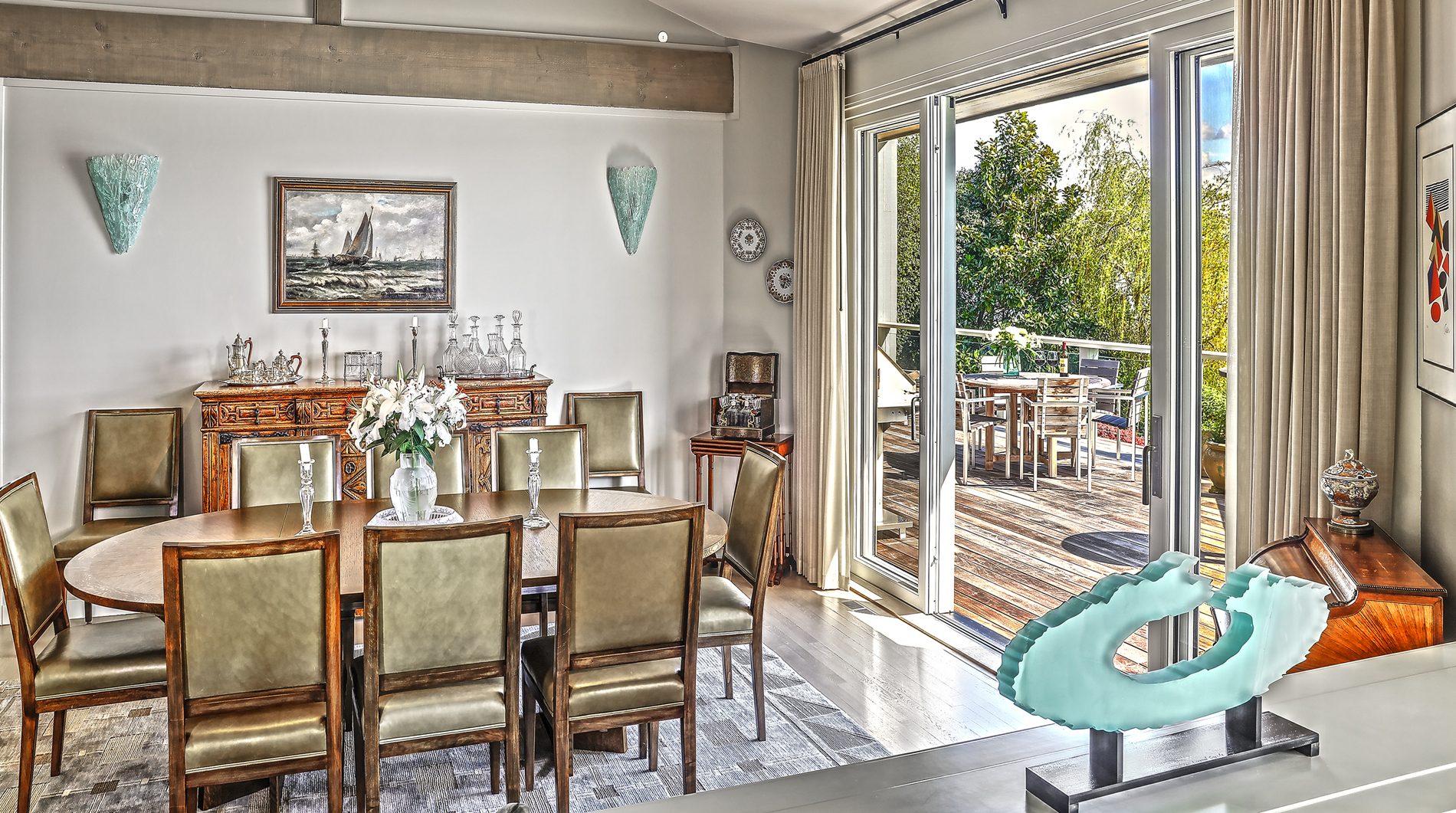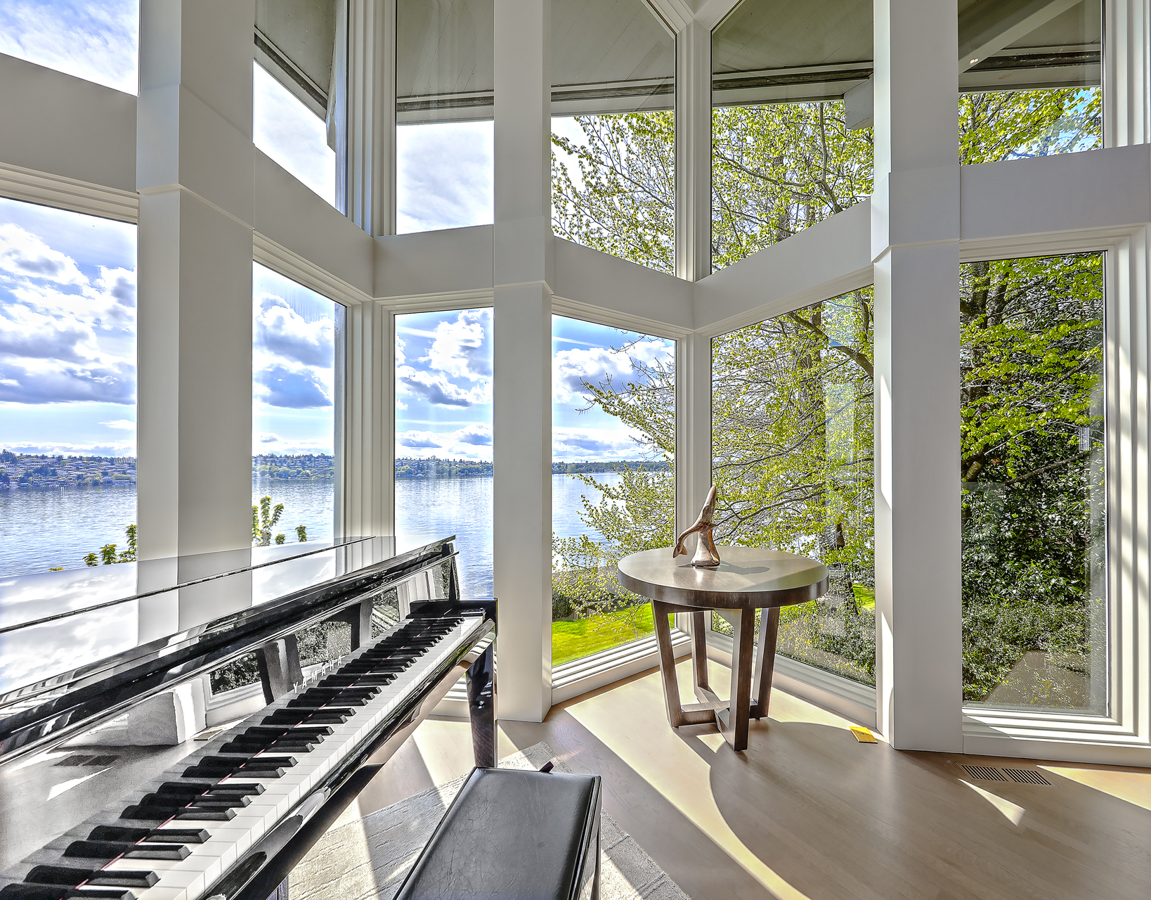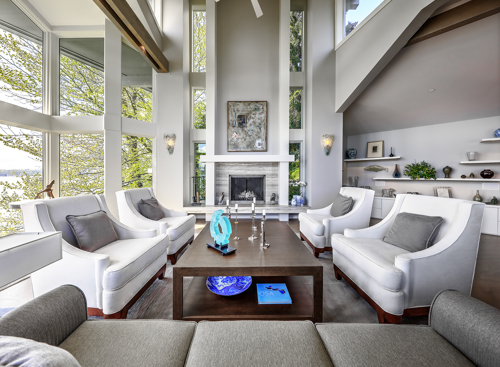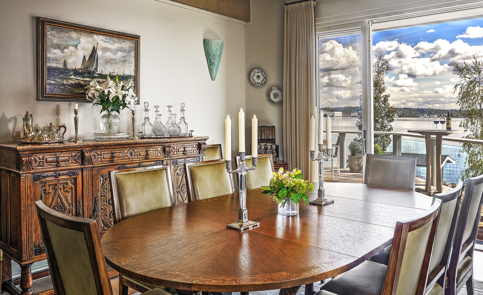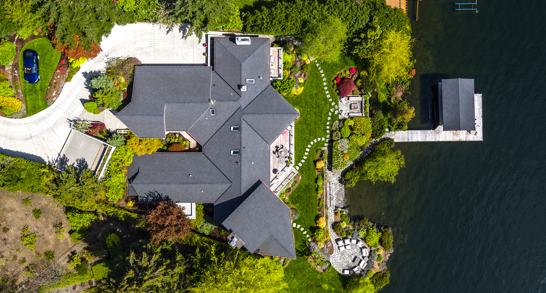 Southpointe, 1 of 20 such tips on Lk Washington. Custom contemporary 2009 home is over 100 wide, opportunistically capturing light and vistas dawn to dusk. Mt Rainier in every conceivable color, framed up dramatically in two story walls of glass. Exquisite fully appointed kitchen befitting the culinary artist. 5 full suites. Extensive guest parking. 145+ of no bank waterfront, expertly designed grounds with multiple destinations. Exclusive dock, covered moorage, multiple lifts. Brilliance!