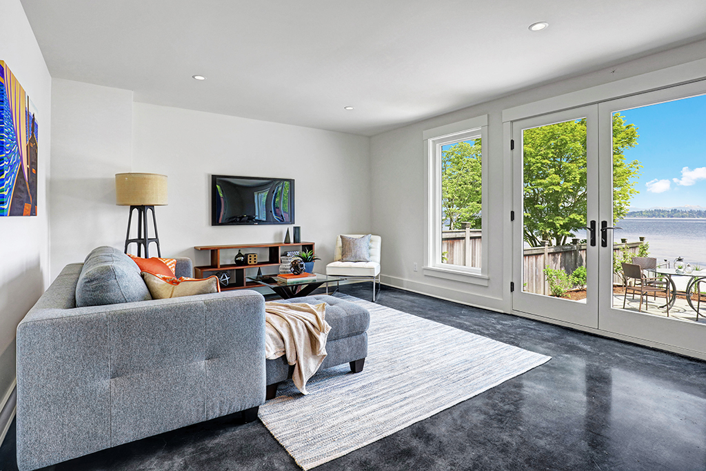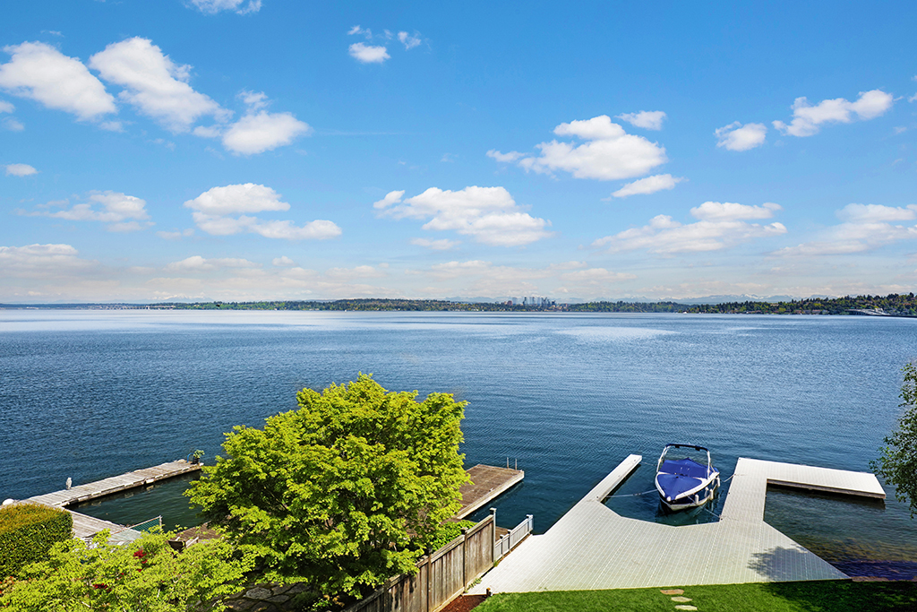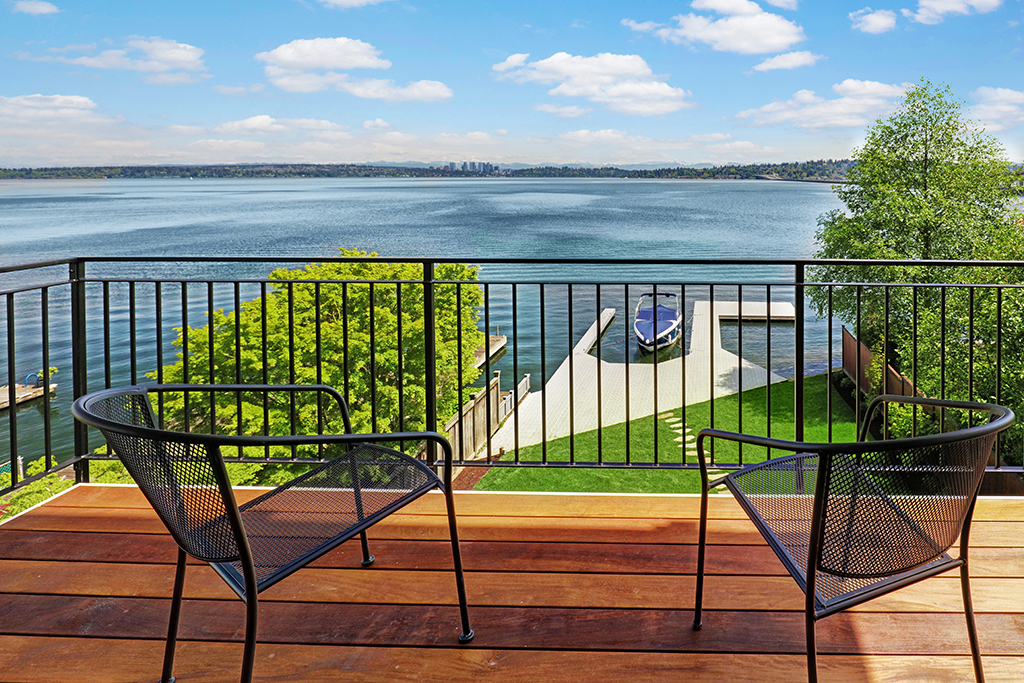 Stunning new construction NW Contemporary home on 45 ft prime waterfront. Grand entry w/ vaulted ceilings, main floor guest suite, chef's gourmet kit w/ marble ctrs, top-end appls, custom cabts, frml dining w/ built in wet bar, huge lvng rm opens to entertainment size deck, and 4 hrdwd qtr sawn flrs. Lavish master suite w/ marble bath, walk-in closets, 2 addtl bdrms, full bth, and 2nd laundry. Lower level has media rm, wine cellar, exercise rm, great rm, tons of storage. Stylish and sophisticated!