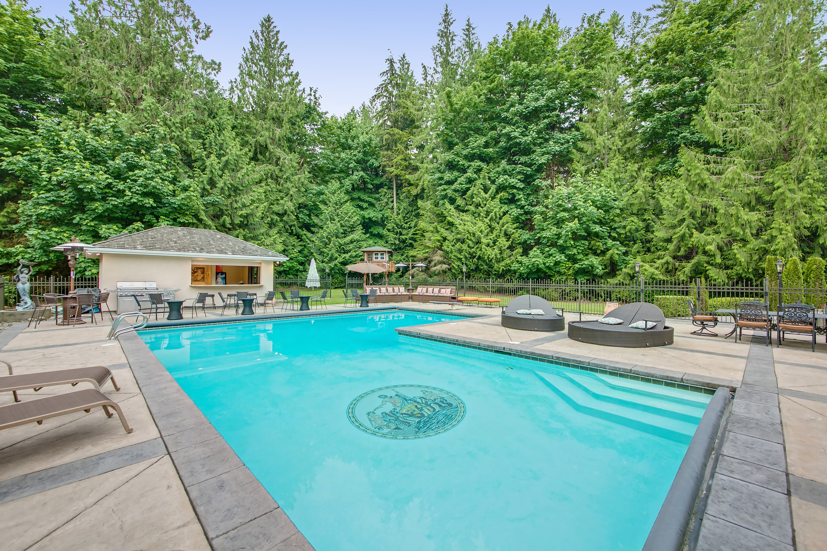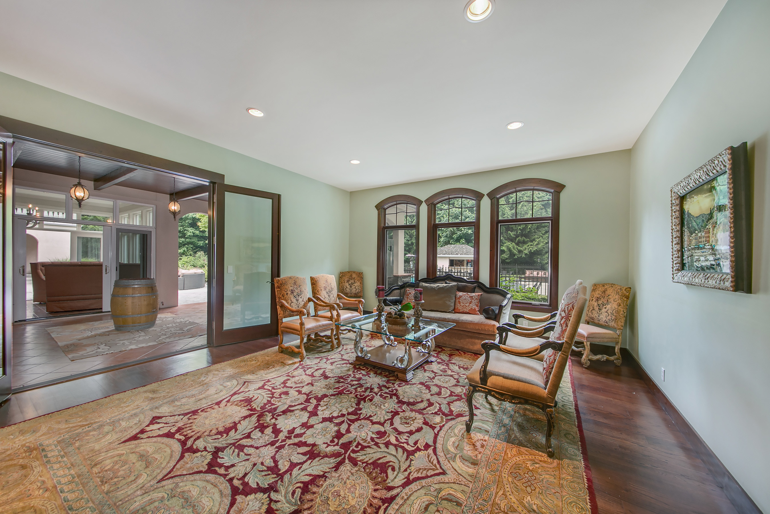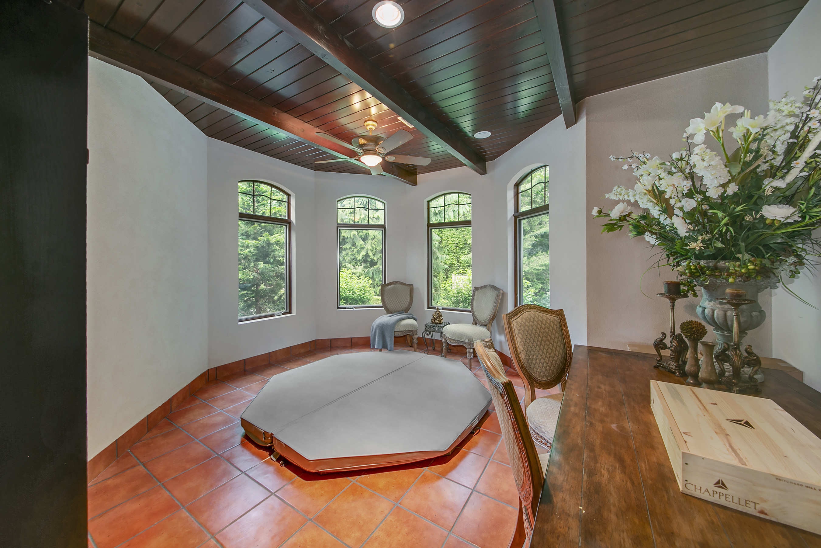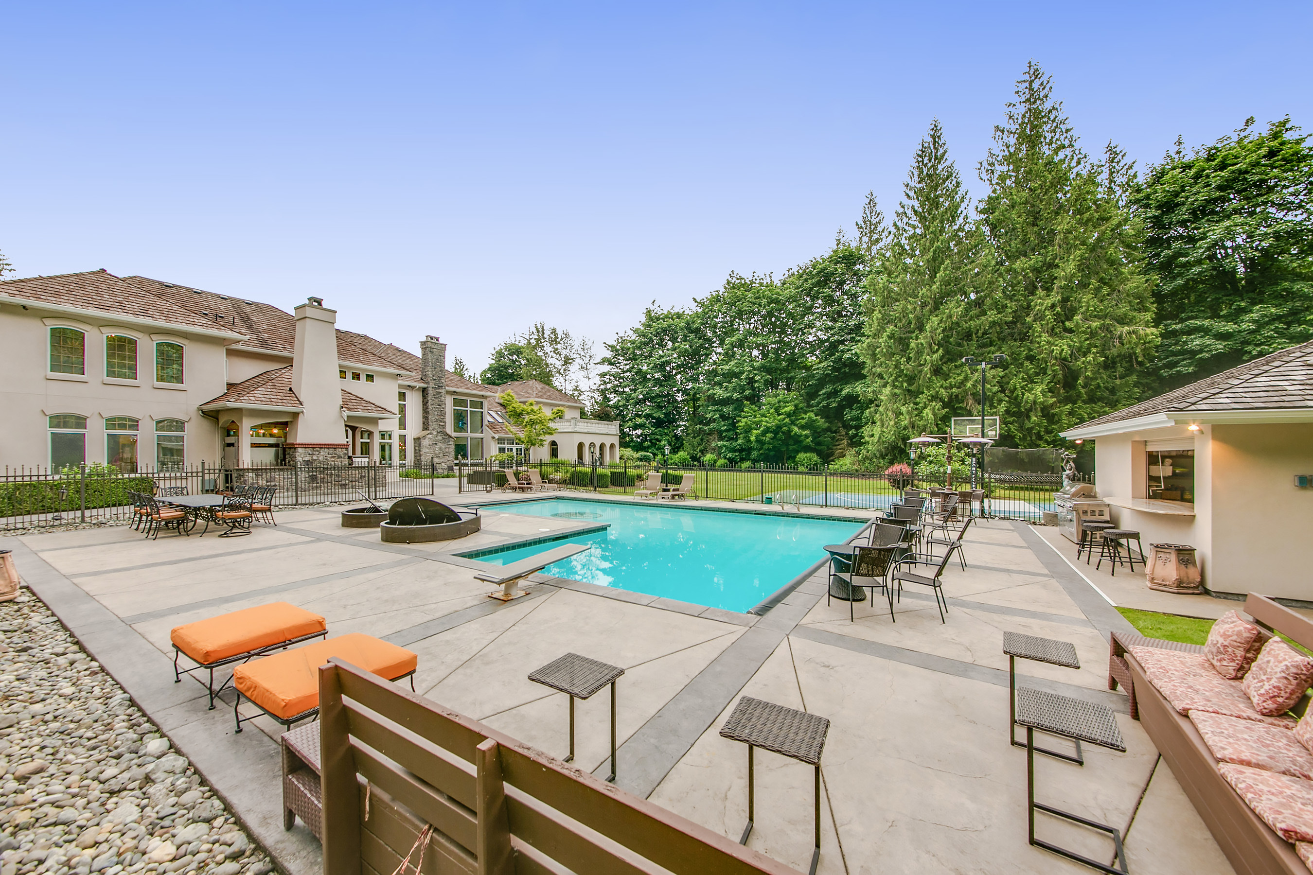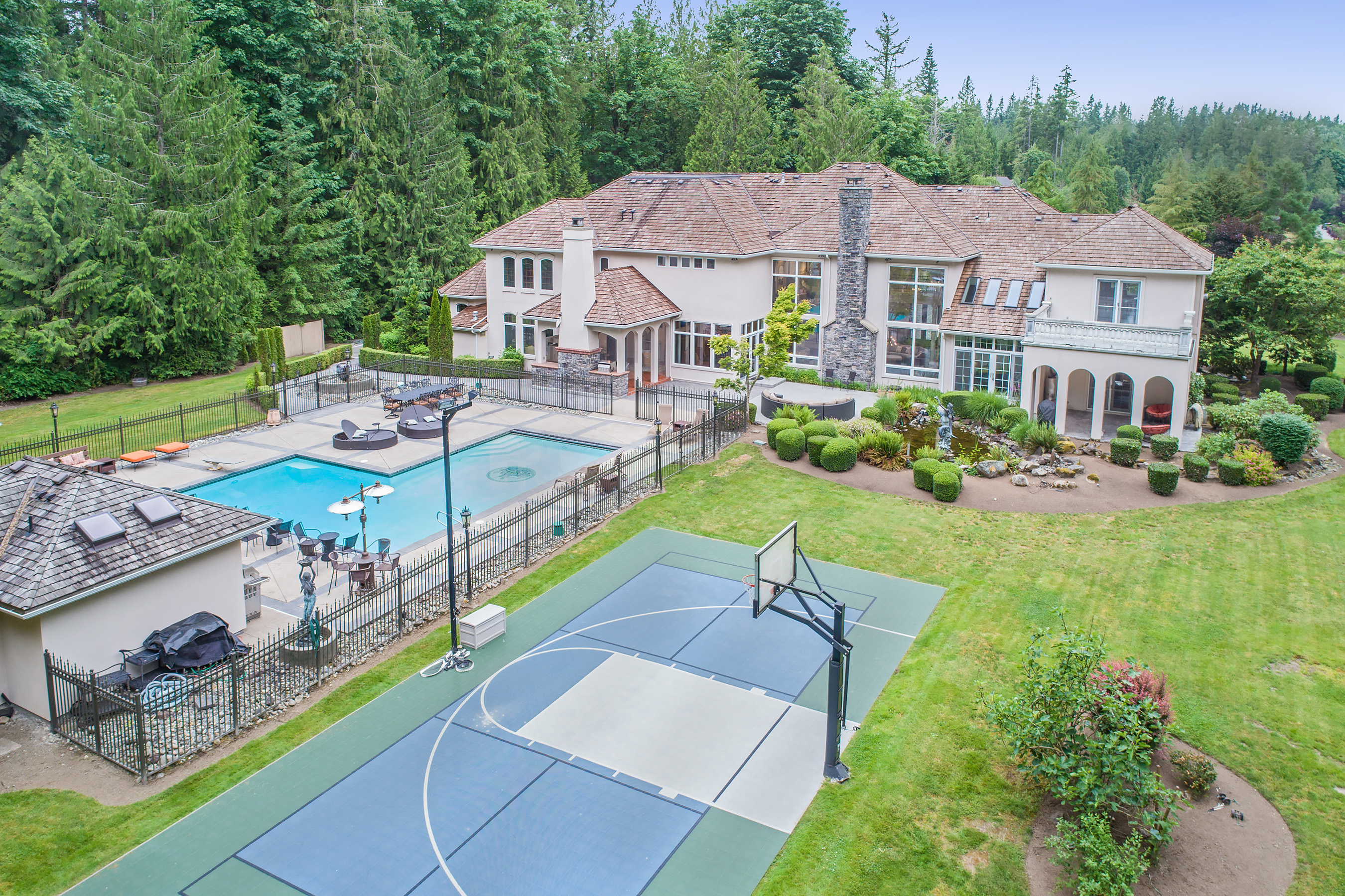 Old World elegance meets luxury dream home in this palatial masterpiece. Cathedral ceilings, interior columns and hand-painted murals transport you to the Tuscan countryside while the home theater, gym, sports court and sauna radiate luxury. Relax poolside from your private outdoor oasis w/ entertainers veranda, 2nd kitchen and 3.94 acres of lush grounds. Epicurean kitchen w/ Italian range, mosaic tile, granite and butlers pantry/wine cellar. Master suite w/ luxe bath and private balcony. 4 car garage!