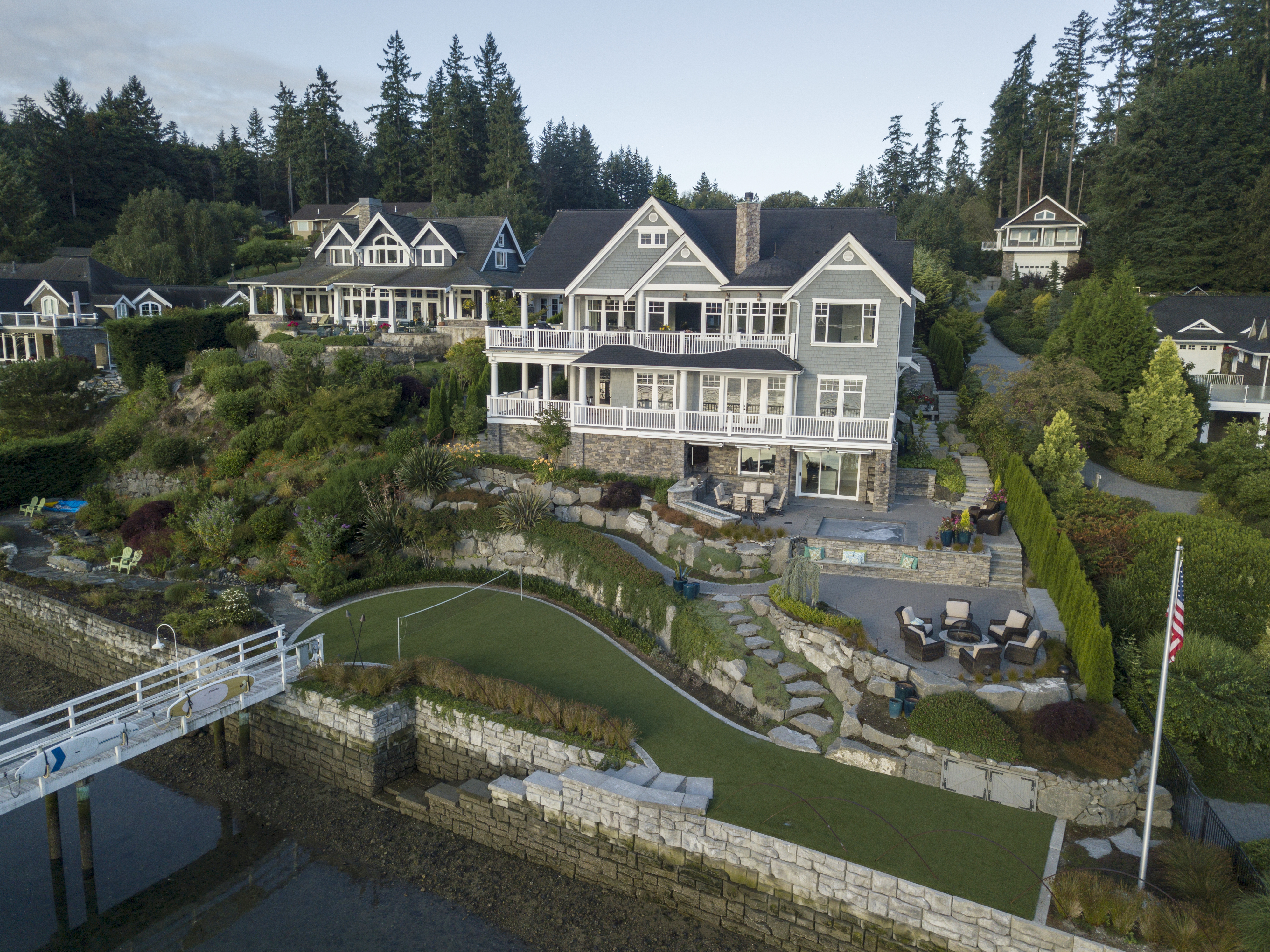 Live an active lifestyle on 92' low-bank waterfront in this stunning Nantucket style home w/sweeping views of Sound and Mt. Rainier on private acre+ setting on coveted Fox Island. This magnificent home is designed for entertaining indoors and out with flowing spaces for gatherings, an epicurean kitchen, finest of materials and luxury w/no details overlooked. Ski off the deep water dock, paddleboard in tranquil waters, gather at custom surf bar, end your day w/a glass of wine at water's edge. Breathe!