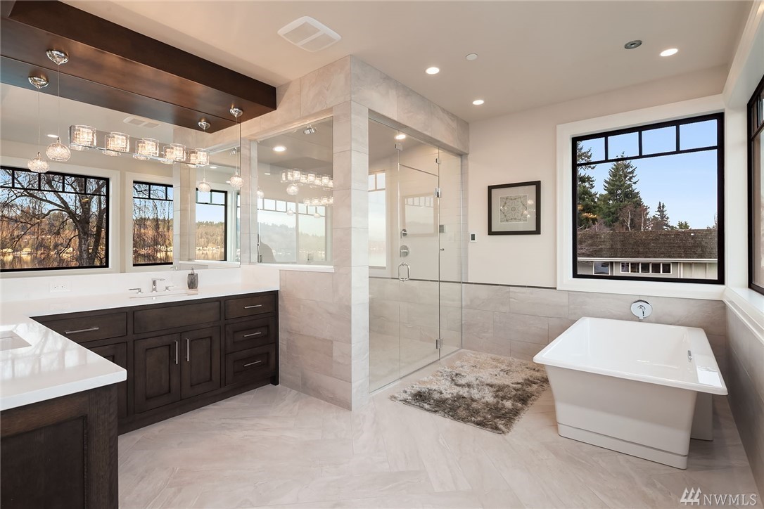 Waterfront living at its finest! Newly Constructed by Legacy Homes of WA. Classic architecture w/ a refreshing twist. Sweeping 180 degree lake views in the spa-like Owners Suite on upper floor. Second Master Suite on main. Elevator accessing 3 floors. The Lake Room on lower level is reminiscent of a world class resort where guests move freely between indoor and outdoor spaces for year round entertaining. Terraced lawn leads to new dock w/ deep water moorage and 75 of Lake WA shoreline.