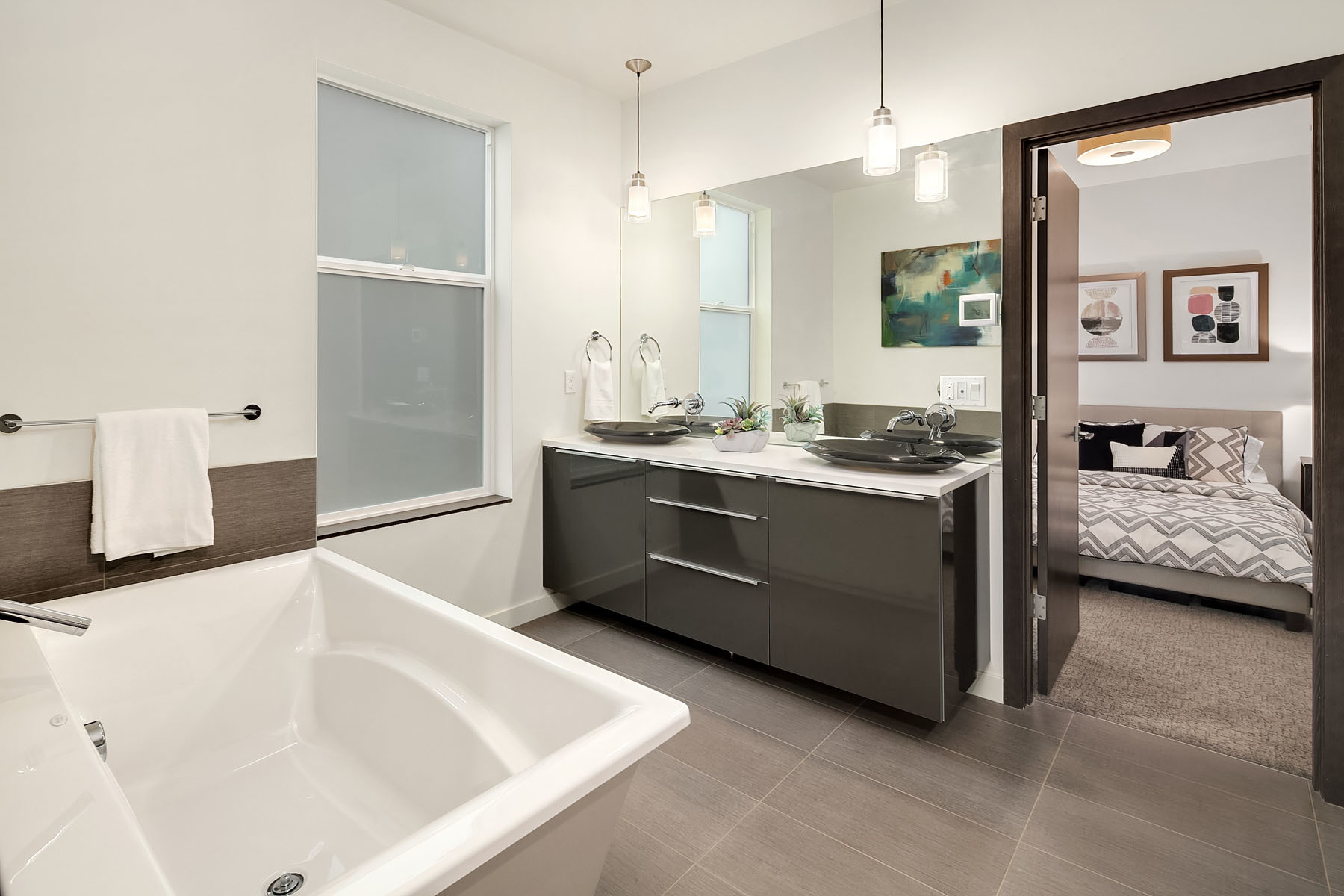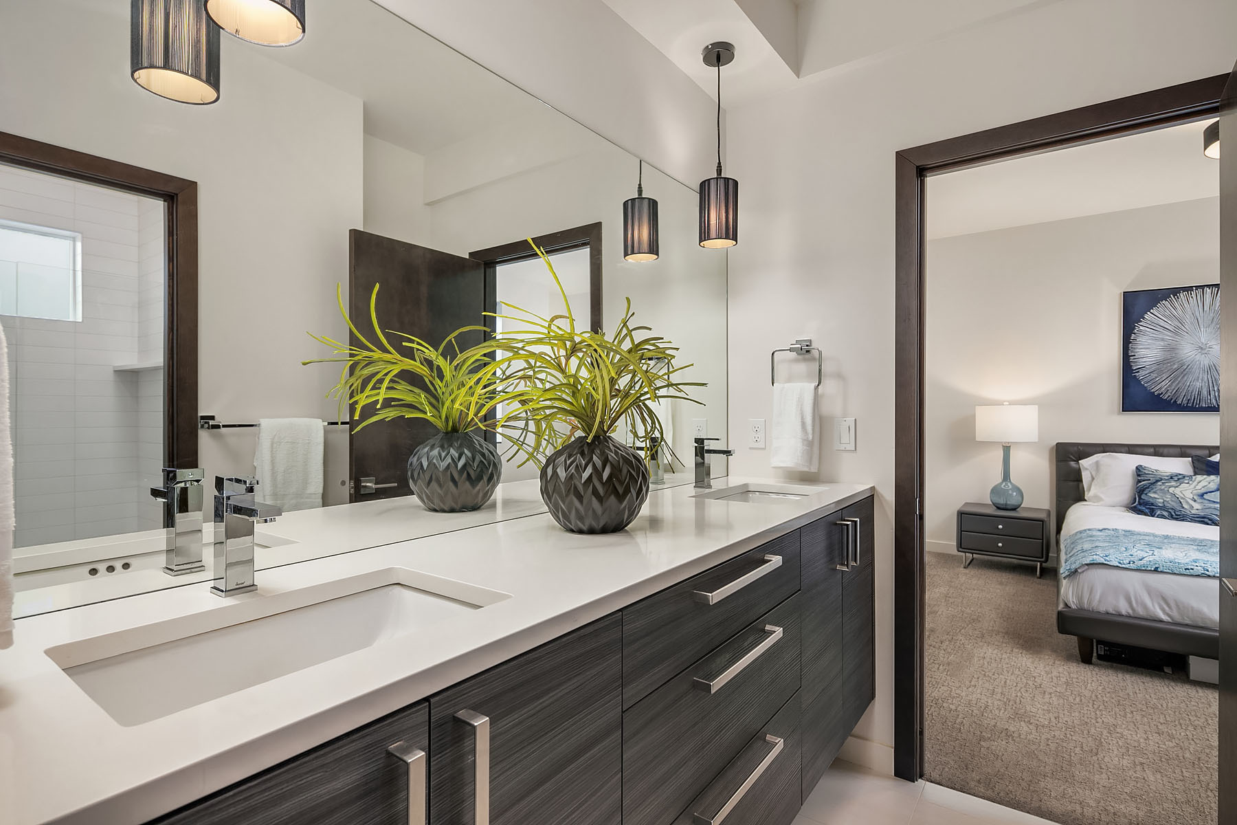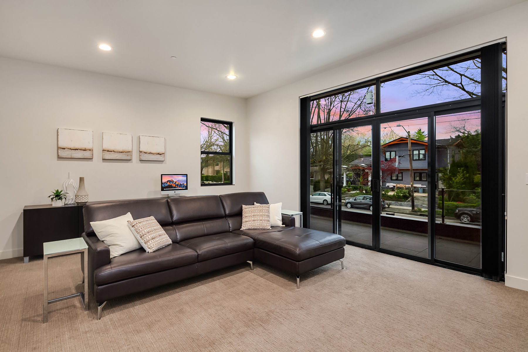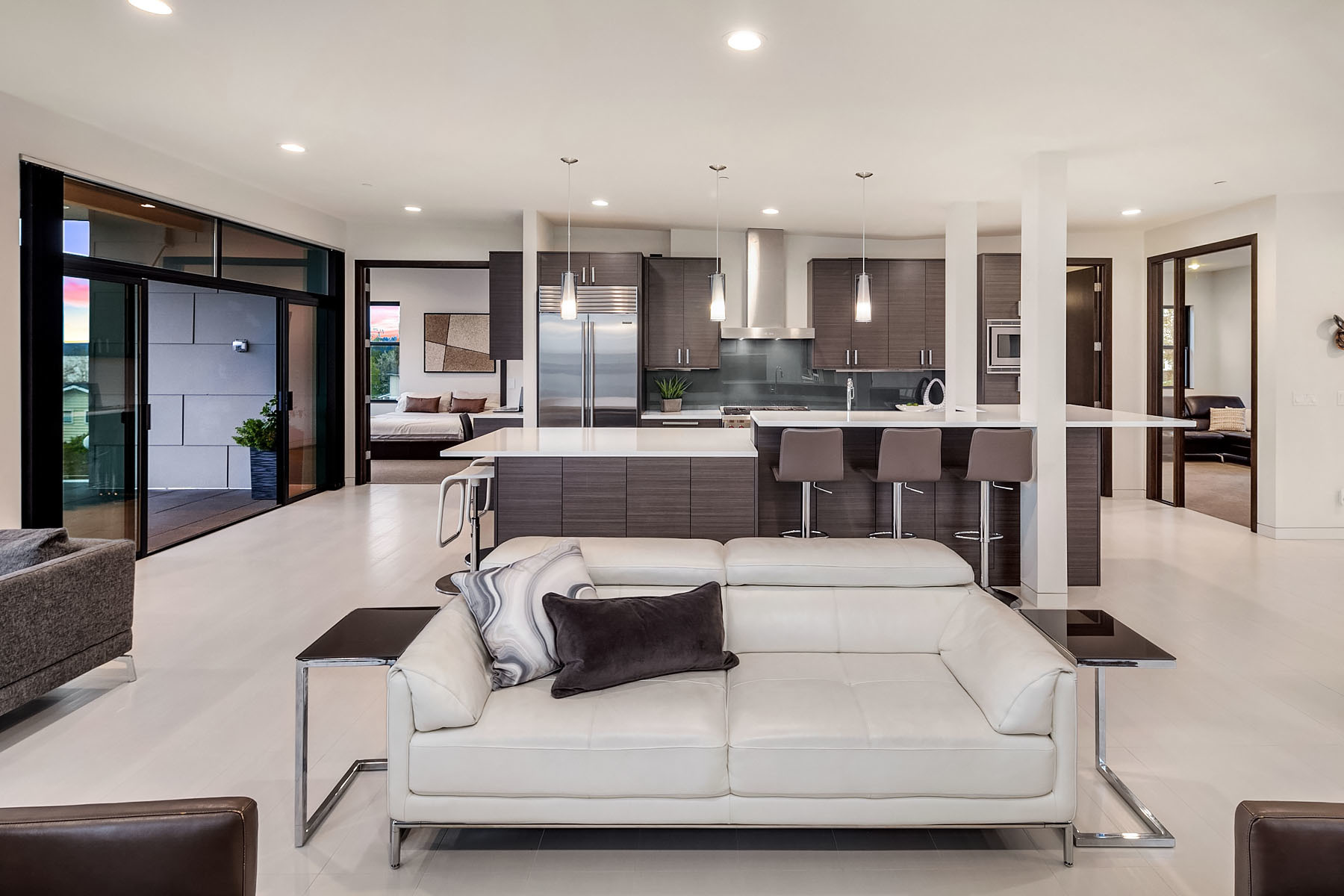 In a premier location, this Lakeview Modern is an easy walk to waterfront, Google and award winning Lakeview Elem. Steel pivot door opens to sleek, sophisticated interiors that have been expertly curated. Floating steel staircase w frameless glass railing leads to a sprawling upper floor. Walls of windows throughout frame sweeping views of Lake Washington, Seattle skyline, and Olympic Mountains. Ample outdoor spaces, 4 decks and fenced yard. Lower level, 1646sf ADU w 2 bed/1ba, full kitchen and w/d.
