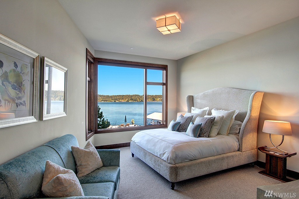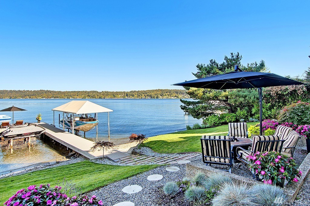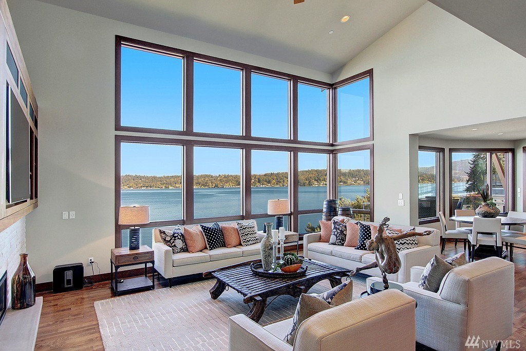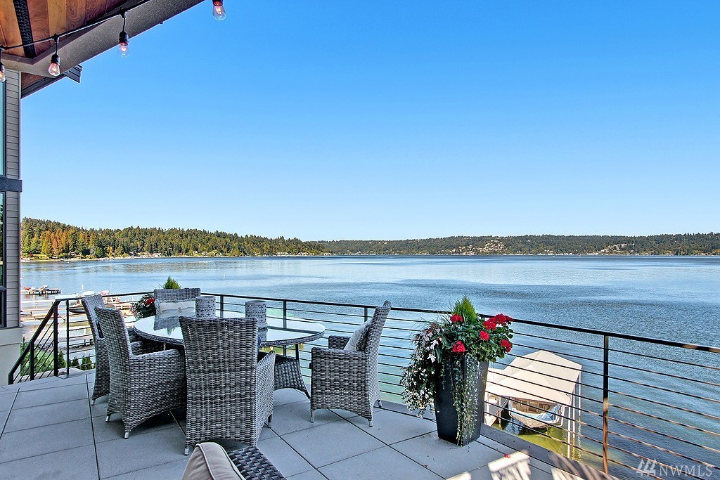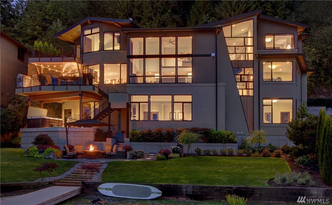 Welcome home to life on the lake! Drink in the beauty of Lake Sammamish with panoramic views from every living space. This immaculate residence has been expertly designed with dramatic indoor spaces and the finest craftsmanship. Crisp, bold modern lines and an open floor plan deliver a sophisticated yet ultimately welcoming and comfortable ambiance. Incredible outdoor living spaces; 3 lakefront decks, outdoor living room w/ gas f/p, lush lawn, hot tub and a stunning 100' of no bank waterfront.