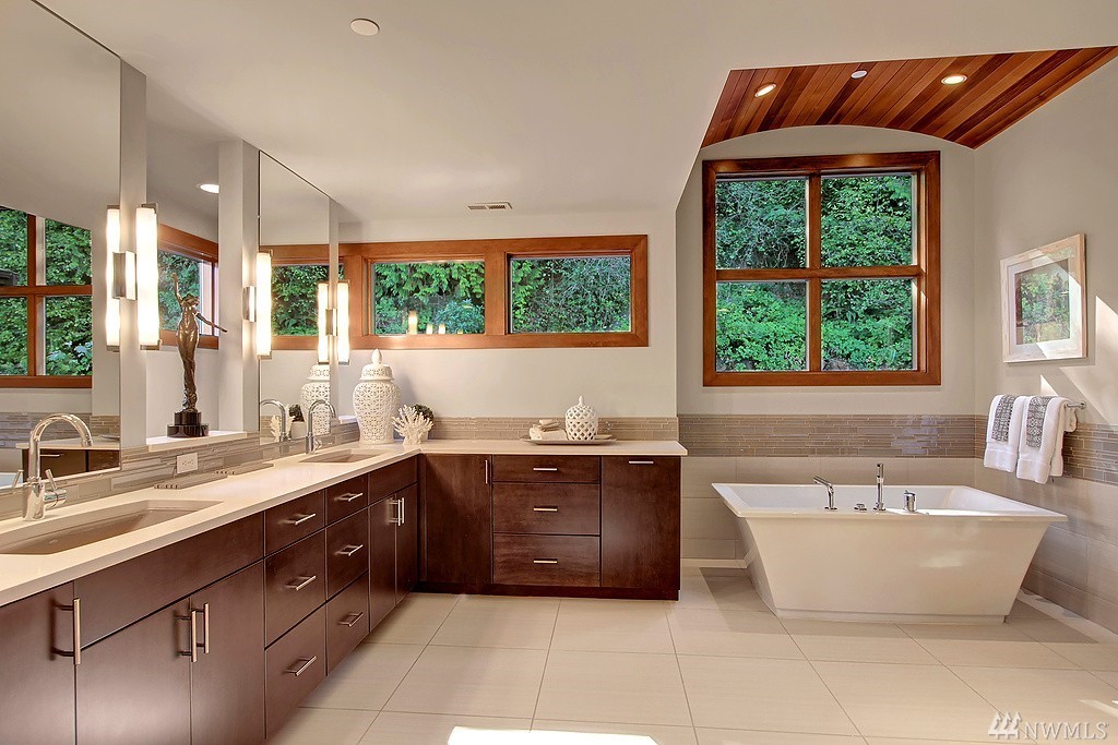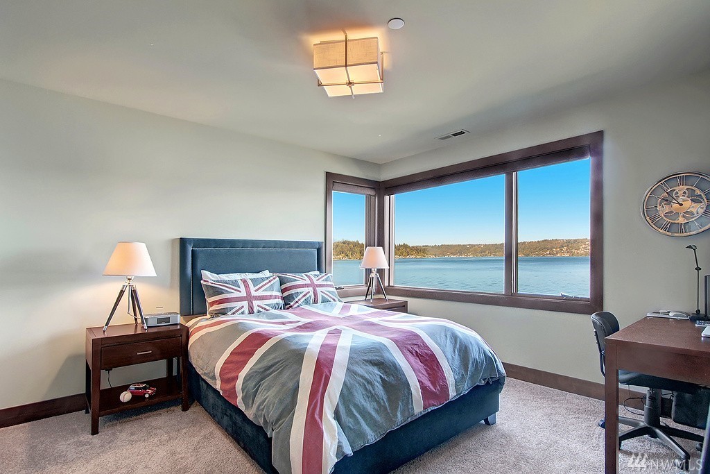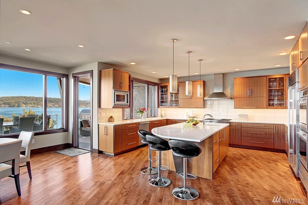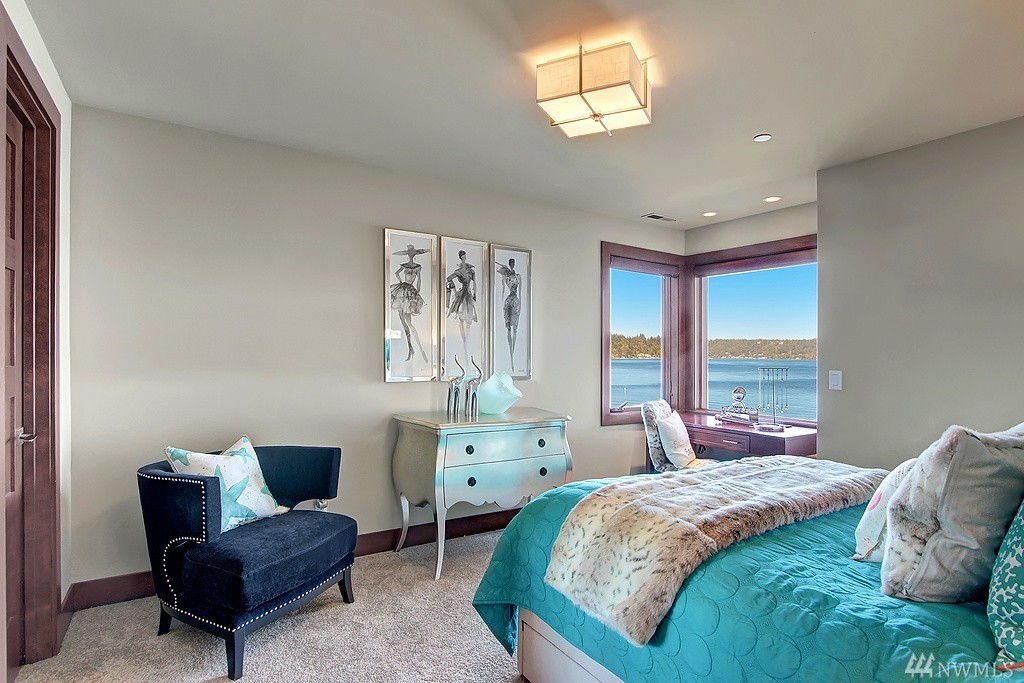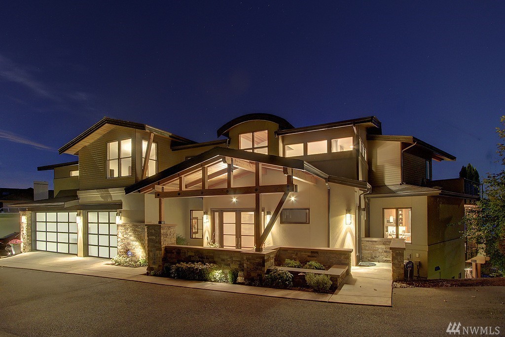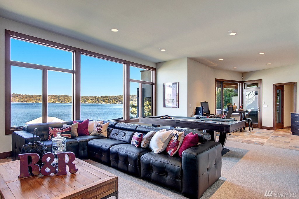 Welcome home to life on the lake! Drink in the beauty of Lake Sammamish with panoramic views from every living space. This immaculate residence has been expertly designed with dramatic indoor spaces and the finest craftsmanship. Crisp, bold modern lines and an open floor plan deliver a sophisticated yet ultimately welcoming and comfortable ambiance. Incredible outdoor living spaces; 3 lakefront decks, outdoor living room w/ gas f/p, lush lawn, hot tub and a stunning 100' of no bank waterfront.