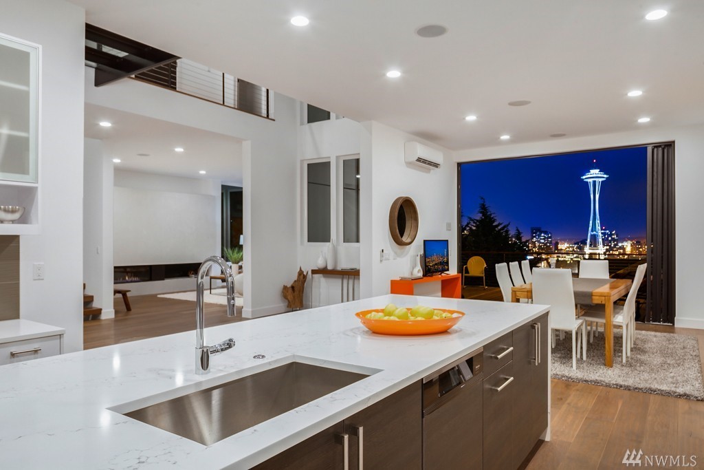 Barcelo Homes presents a new ultra-luxe high performance home atop the premier foothill of Queen Anne. Enjoy panoramic views of the Seattle city skyline, space needle, and Sound. A sophisticated and functional custom oasis with soaring ceilings, floor-to-ceiling windows, folding glass walls, architectural steel and glass suspended walkway, integrated surround sound system, wine cellar, multi-level decks, designer chefs kitchen, outdoor kitchen, and seamlessly connected indoor and outdoor living areas.
