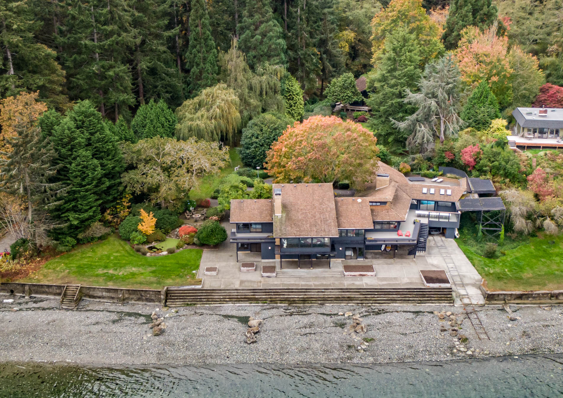 Only the second time on the market in 50 years, and recently featured on King 5's Evening Magazine, this mid-century masterpiece exemplifies Unreal Real Estate. Architecturally engineered and designed in 1971 for the founder of K2, this commanding waterfront compound exudes approachable luxury. 5500 sf main residence and 1700 sf guest home, expansive private grounds, boat launch and nearly 300 ft of low bank frontage masterfully capture dramatic views of Mt Rainer and the beauty of Puget Sound. Welcome home to Vashon.