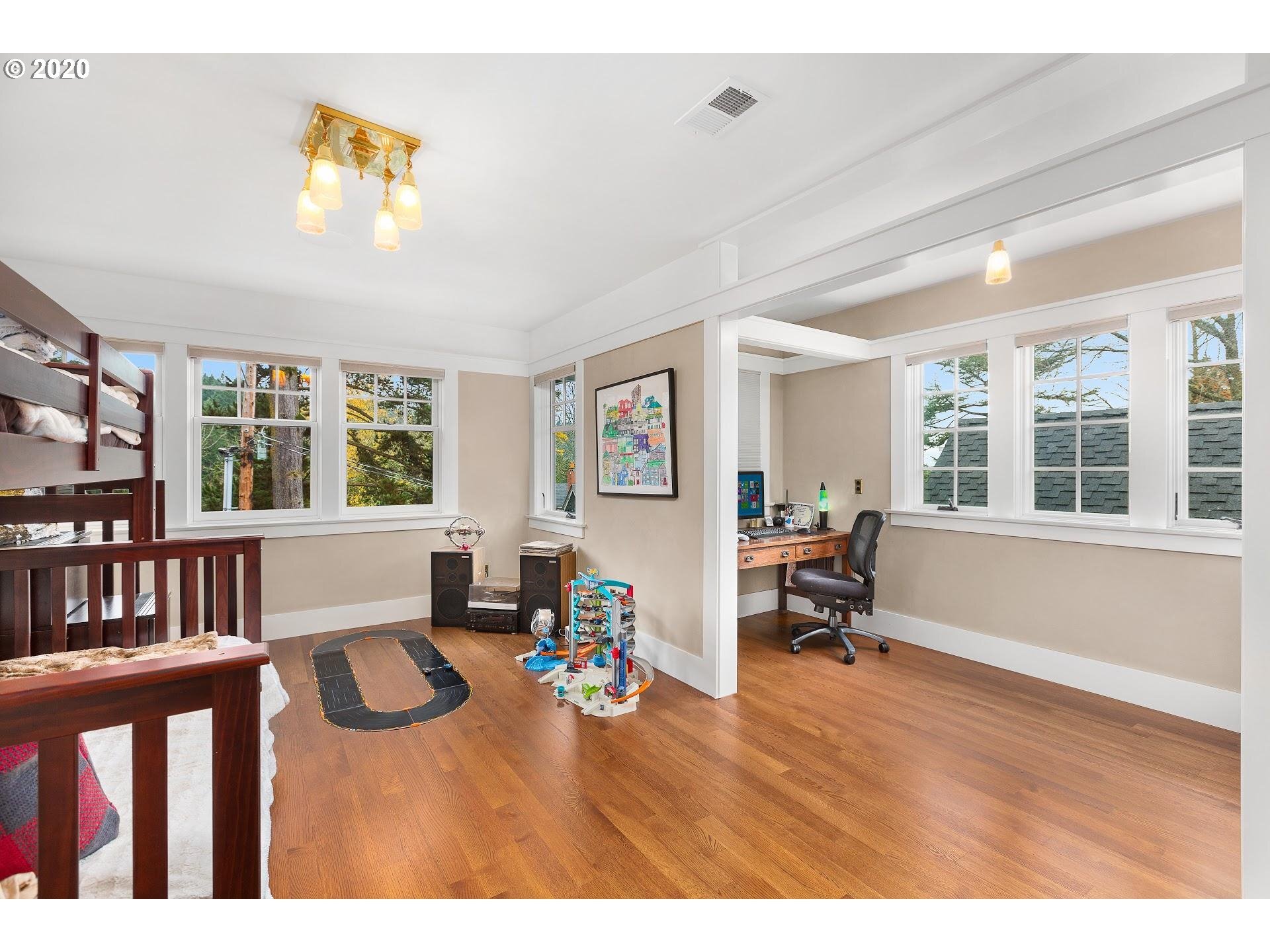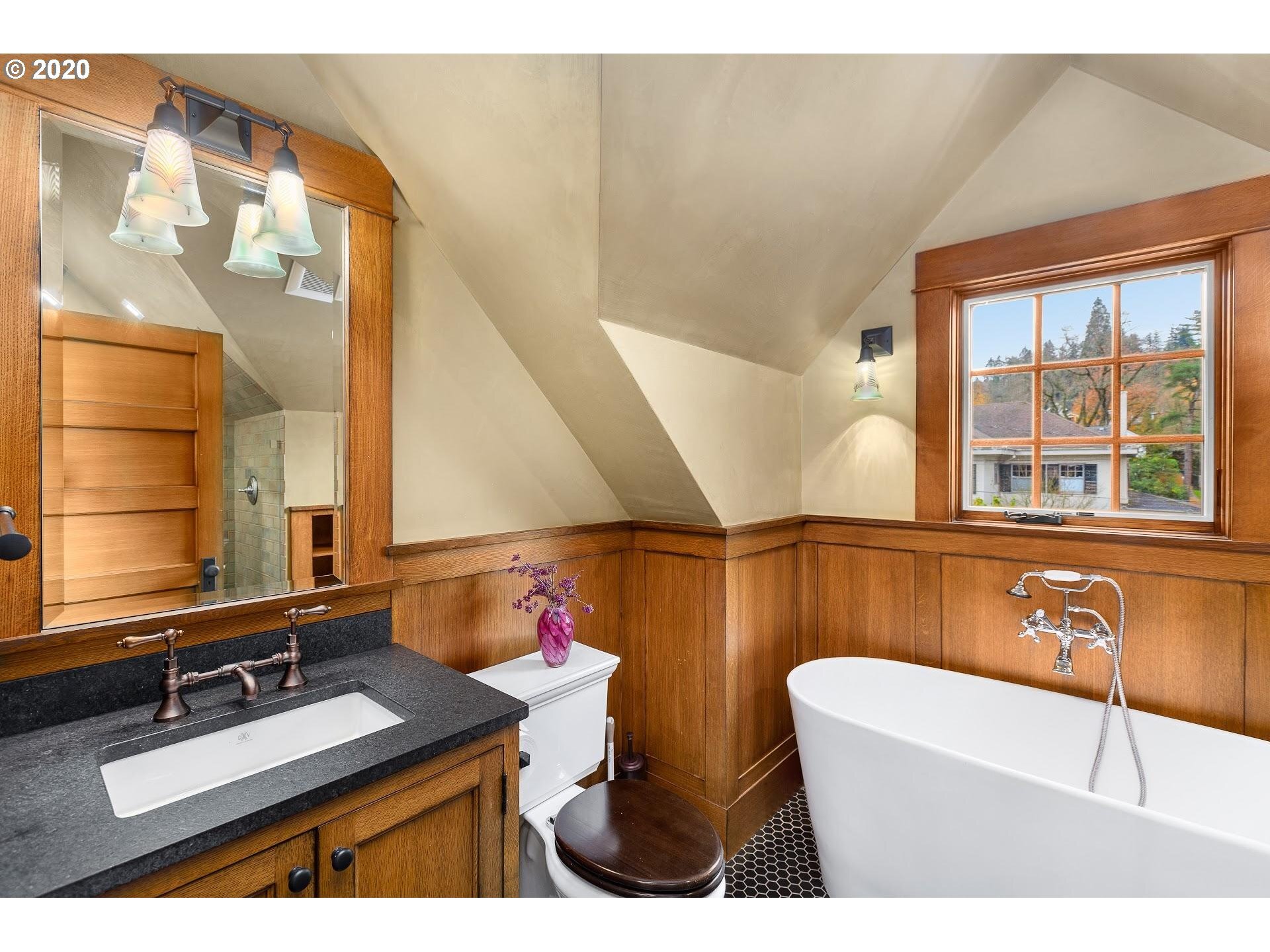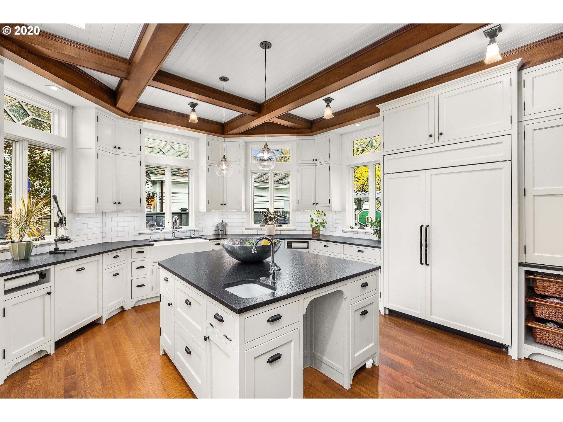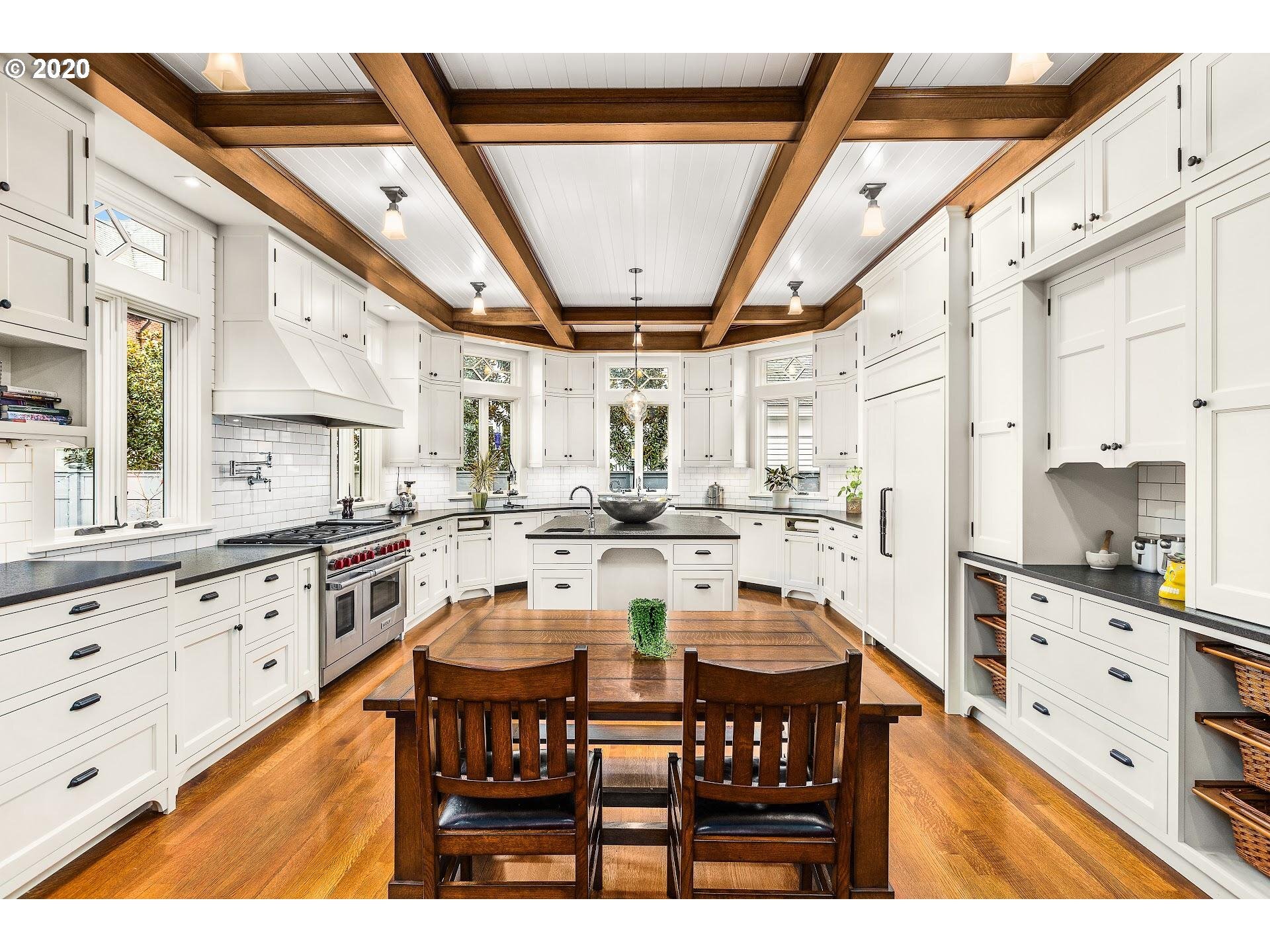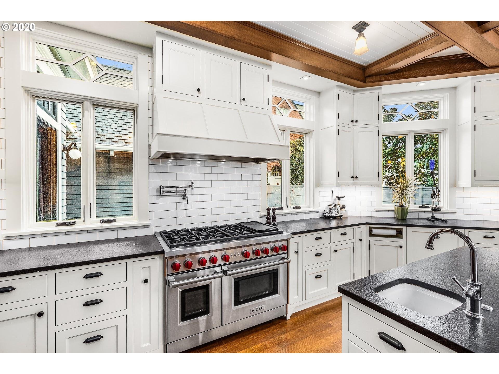 Craftsman masterpiece, situated in the "grid" of Portland Heights with 8000 square feet and 4 floors of luxury. The entire home was reconstructed (including foundation) in 2017. Gourmet kitchen with antique granite, commercial appliances and an expansive island with prep sink. The attic space boasts paneled walls and 14 foot ceilings, state of the art theater room on the lower level with wet bar, sauna, barrel vaulted dining room with custom built-ins. This unique home is truly a work of art!