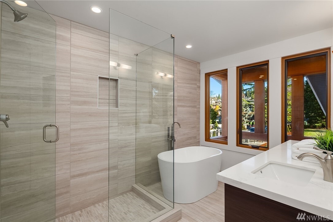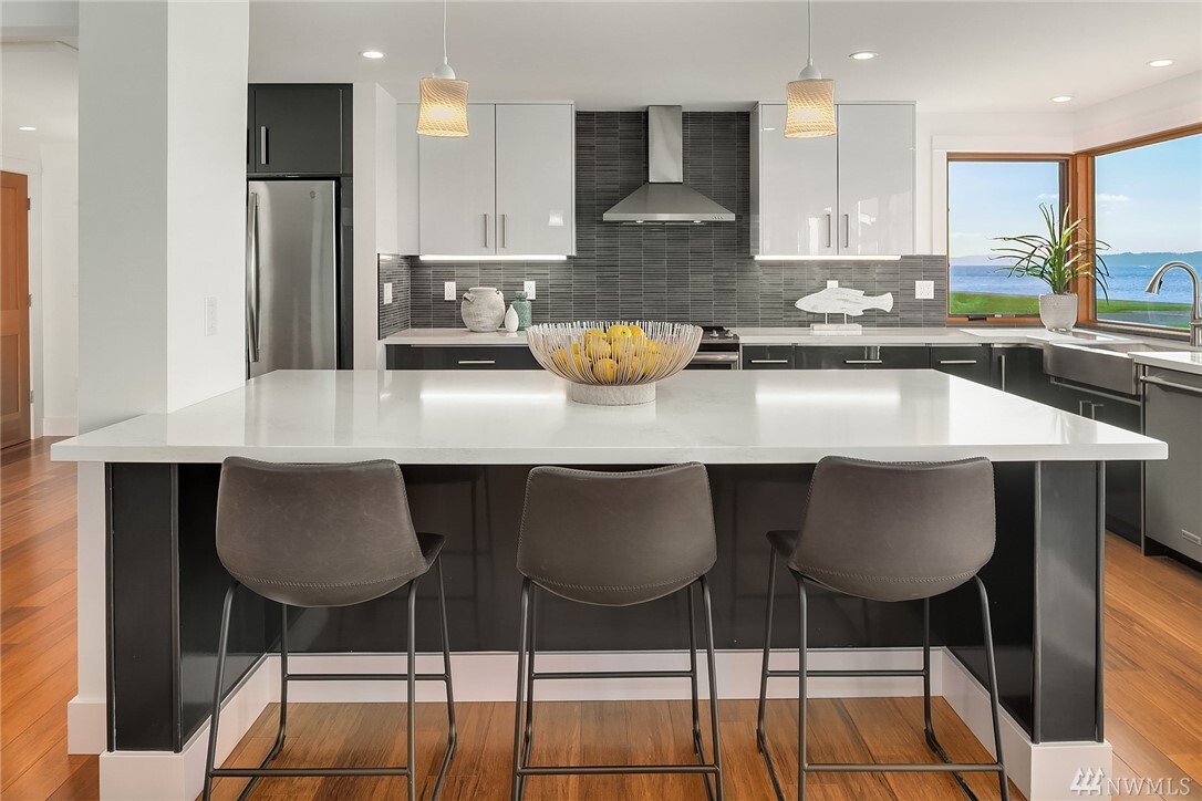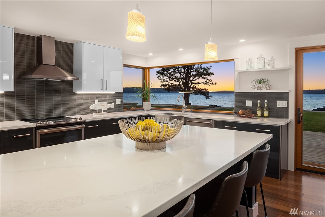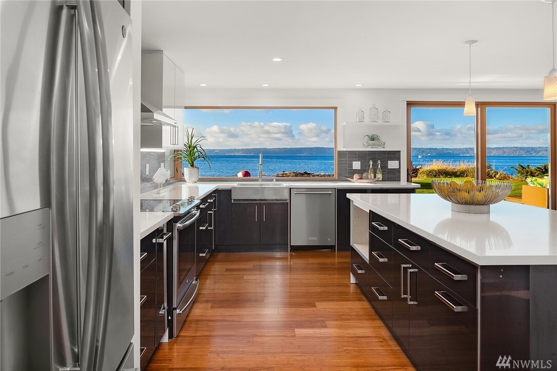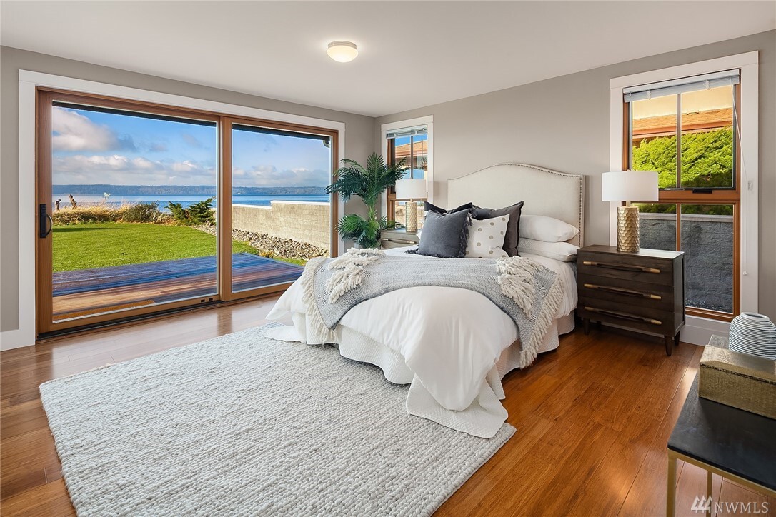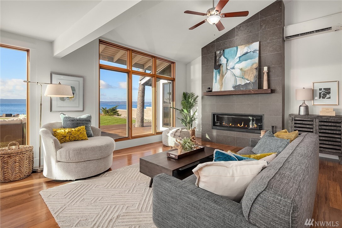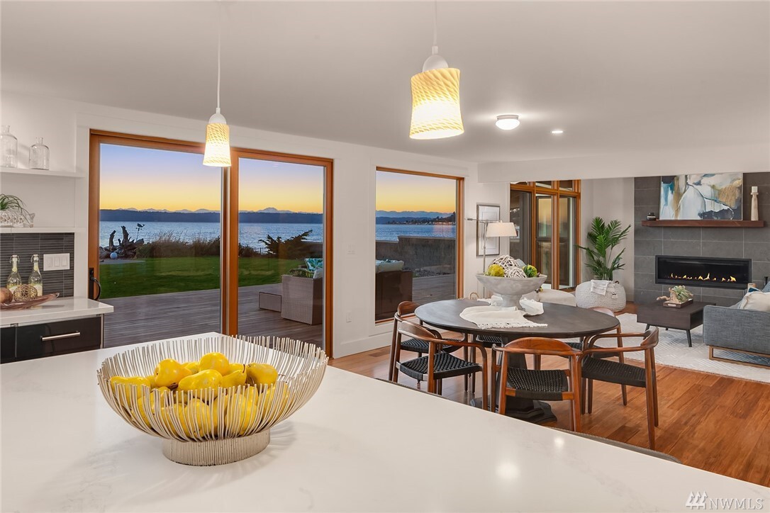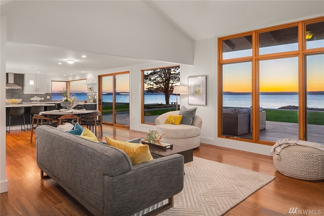 Transcending the Norm for the Exceptional. Along the golden shores of Normandy Park & on one of its most prized streets, rests this perfect waterfront oasis where ease of living & inspiring beauty are not just words. Peaceful on a level 0.64 acre bordering 100' of no bank Puget Sound, the freshly-rebuilt home overlooks a myriad of views from the snow-capped Olympics to the amber sunsets. Drive to the end of the road past the gated entry where the word estate comes to mind. Clean lines, earthy tones & layers of picture windows all lead to a feeling of light, openness & comfort. Interior & exterior spaces intertwine harmoniously: the perfect invitation to live, play & rest on one level. 4 car-garage, extreme parking & separate office/gym.