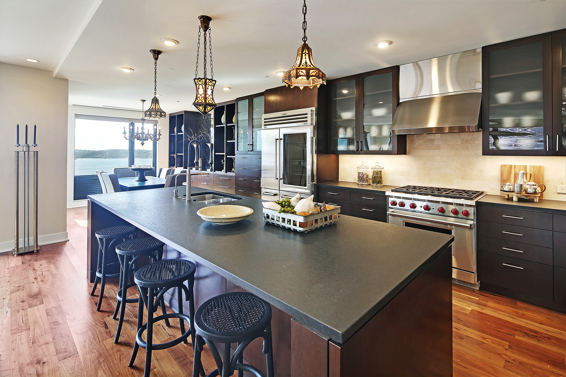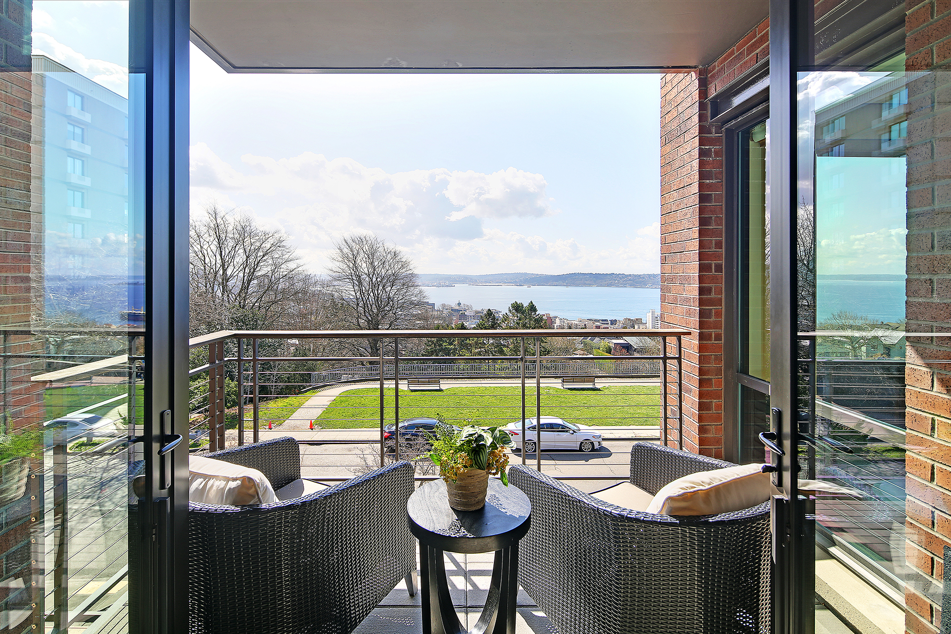 Extremely rare 3 bed, 3 bath condominium located in arguably the best, most private and prestigious bldg in Seattle. This luxurious concrete-and-steel building is the grande dame of in-city residences. With views overlooking historic Kerry Park, Puget Sound, Alki & the Olympics, the most photographed viewpoint of the Seattle skyline is front and center. This expansive home has been beautifully updated with Wolf, Miele and SubZero appliances, custom cabinetry & shutters, and desirable smart home features. Highly walkable, close to celebrated QA restaurants, shops, and cultural events at Seattle Center; all this vibrant city has to offer is minutes away. Pet friendly, A/C, 2 side-by-side pkg spots, XL storage space, gym, onsite concierge.