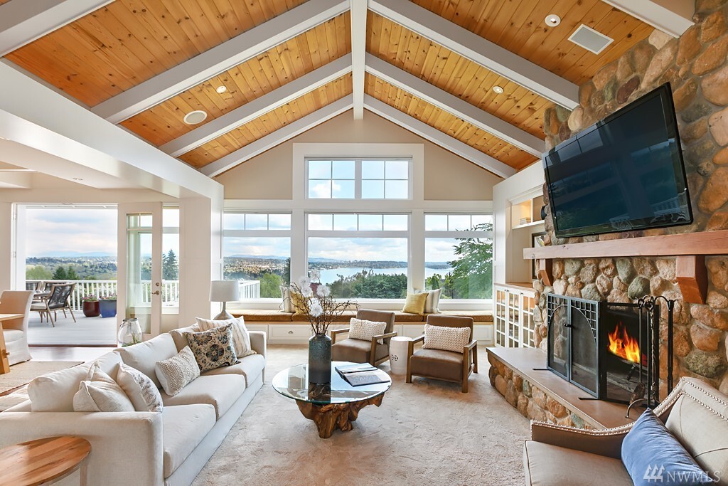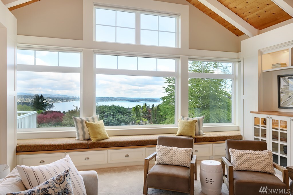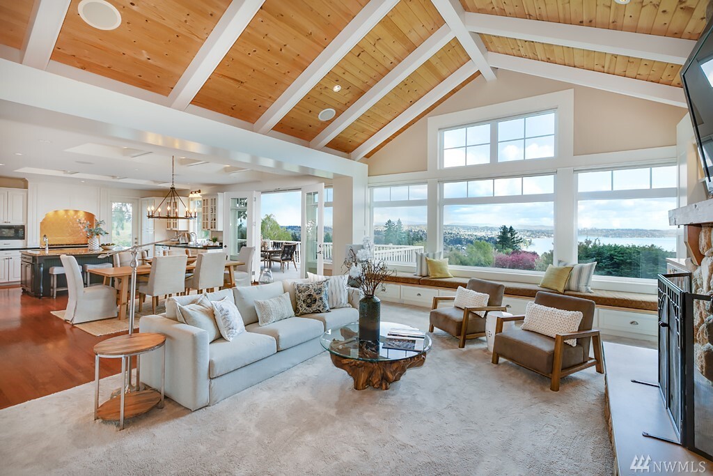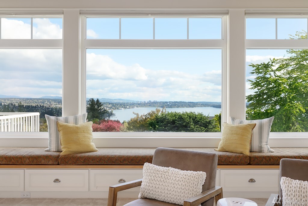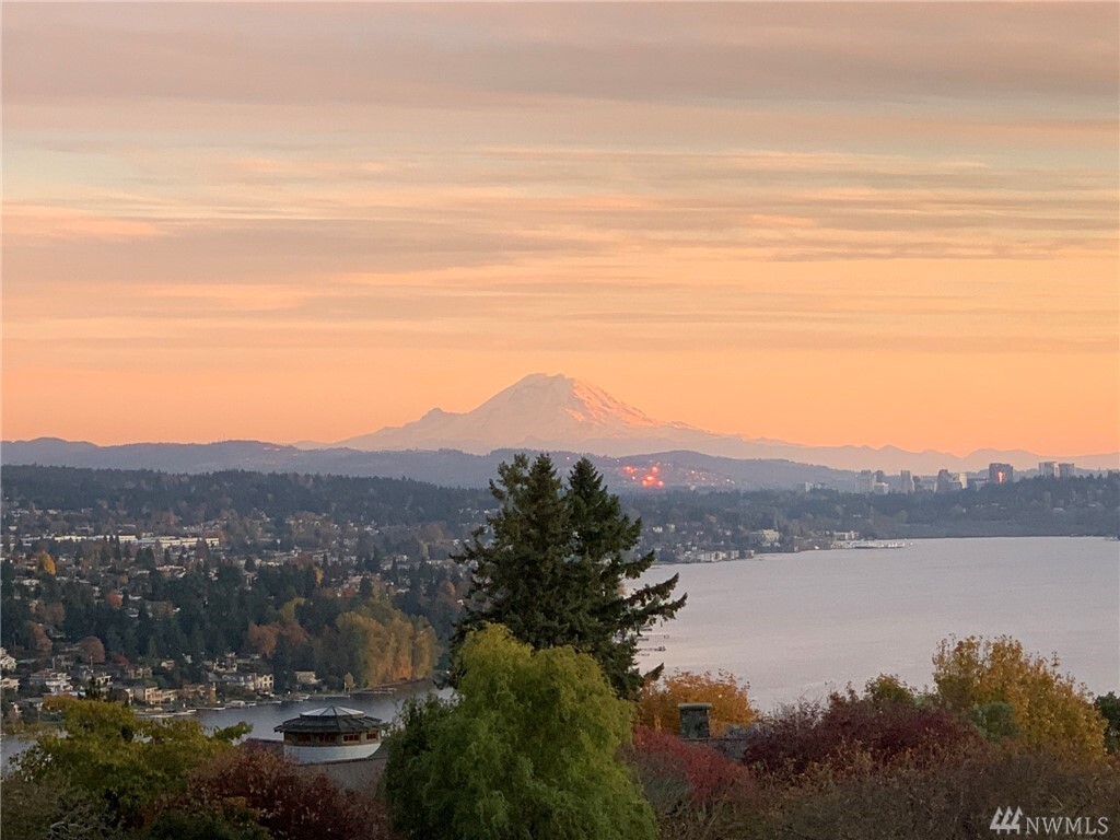 Spectacular lake, mountain and city views with a stunning custom designed home. Light filled rooms, sunrises and sunsets. The great room and kitchen appear to be straight out of a magazine, inviting and light filled. Kitchen that is beautiful and built for a chef, with wonderful areas for prep and pantry too. Expansive deck to watch fireworks and floatplanes and enjoy alfresco meals. Ideal for holidays and gatherings. Beautiful vaulted ceilings and hardwood floors. Exquisite master suite with fireplace, and a luxe steam shower. Office with gorgeous views might make it hard to get work done. Spacious bedrooms, media room, bonus room too. Sparkling clean. Almost every room has a view. It may just be love at first sight.
