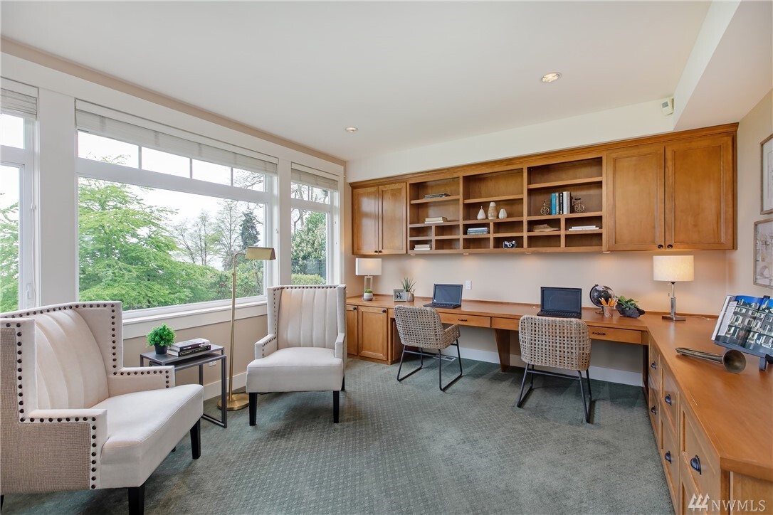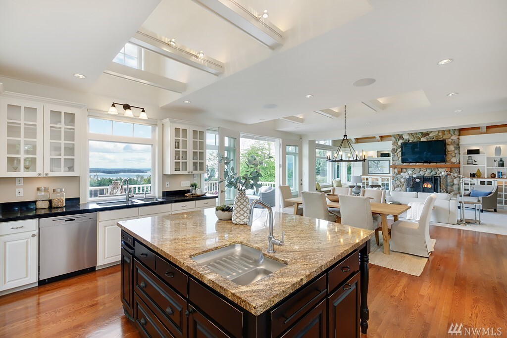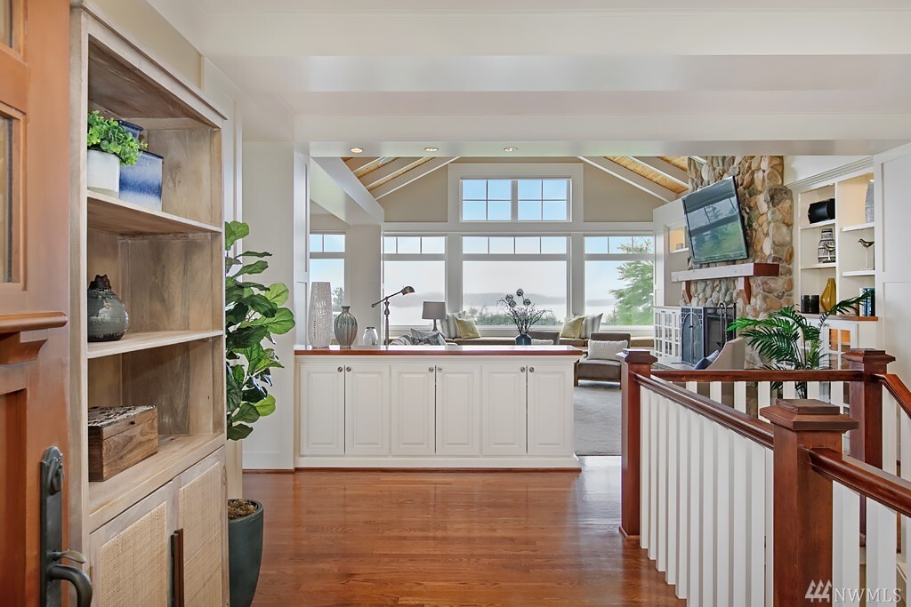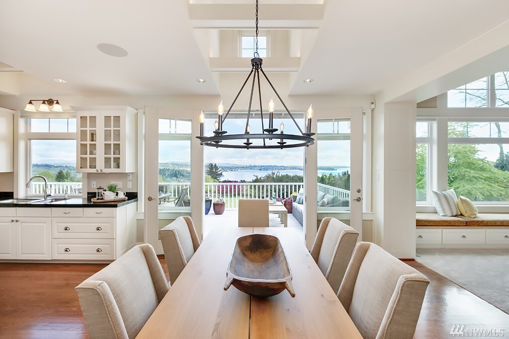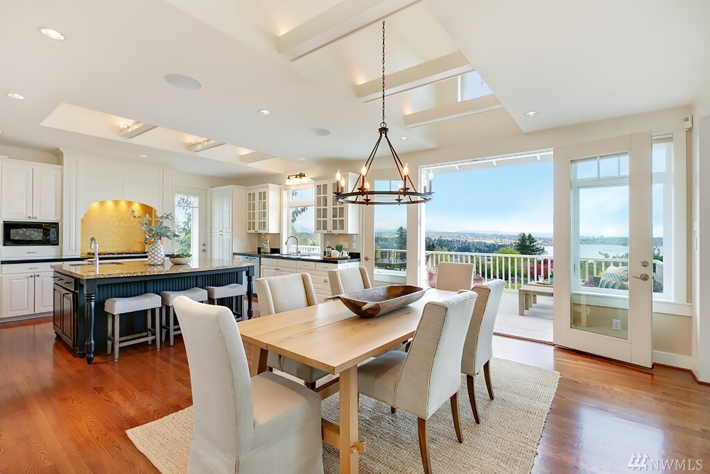 Spectacular lake, mountain and city views with a stunning custom designed home. Light filled rooms, sunrises and sunsets. The great room and kitchen appear to be straight out of a magazine, inviting and light filled. Kitchen that is beautiful and built for a chef, with wonderful areas for prep and pantry too. Expansive deck to watch fireworks and floatplanes and enjoy alfresco meals. Ideal for holidays and gatherings. Beautiful vaulted ceilings and hardwood floors. Exquisite master suite with fireplace, and a luxe steam shower. Office with gorgeous views might make it hard to get work done. Spacious bedrooms, media room, bonus room too. Sparkling clean. Almost every room has a view. It may just be love at first sight.