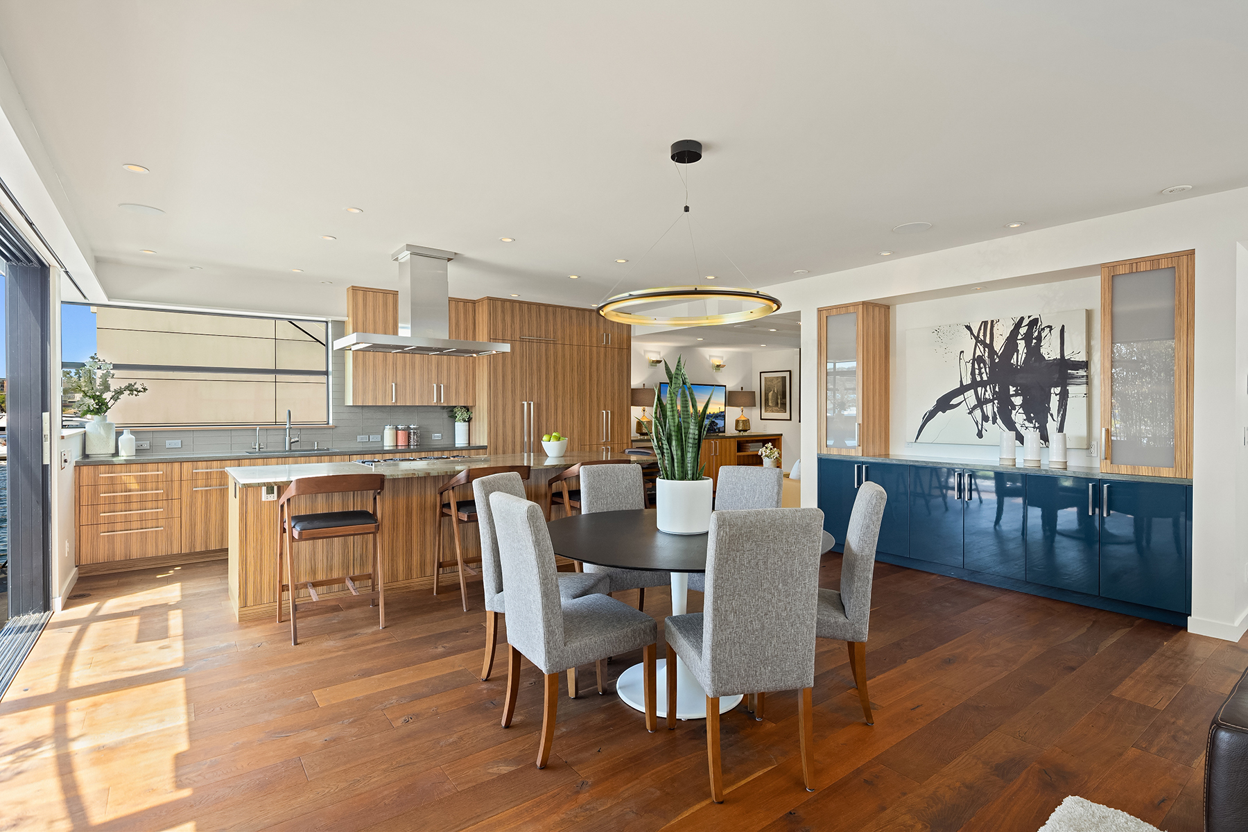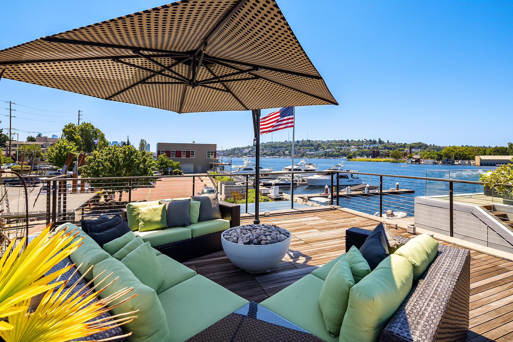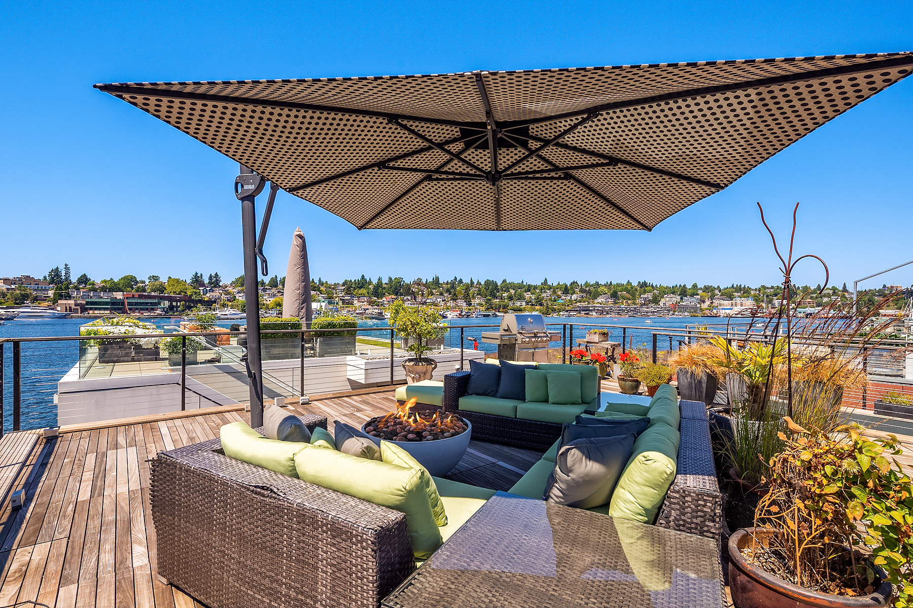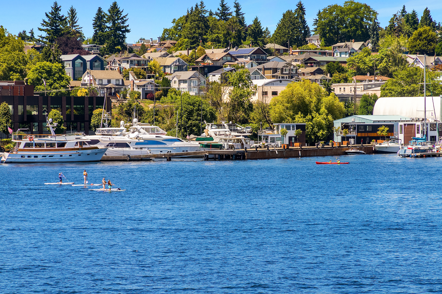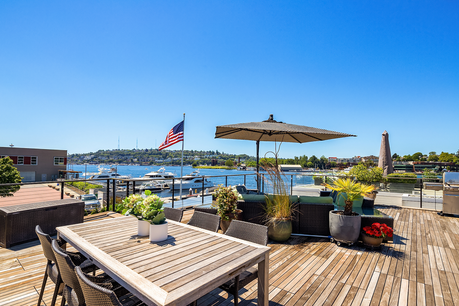 A rare opportunity to live at Seattle’s premier floating home community of Wards Cove on Lake Union. Meticulously maintained, this quality built floating home from Dyna Construction surpasses all expectations. Top floor features voluminous open floor plan w/chef's kitchen with custom cabinetry, eating bar, tv room off the kitchen, sliding doors open onto a covered heated patio. Main level features 3 beds, primary has walk in closet, en-suite bath w/radiant heat and a luxurious steam shower. Sliding doors open onto water level deck with outdoor shower and moorage of up to 32’ boat. Enormous rooftop deck with views of the lake, downtown, glorious sunsets and all the boating activity the lake offers. One gated off-street parking space.