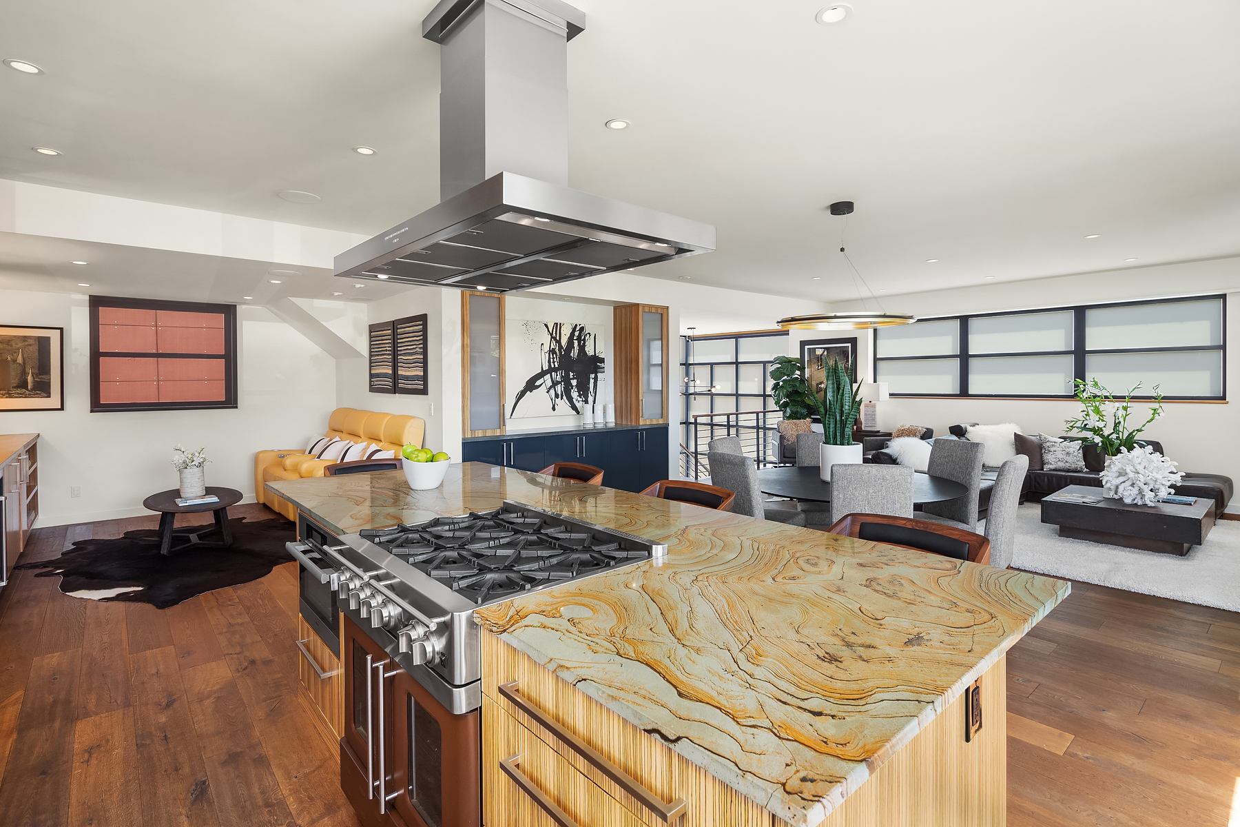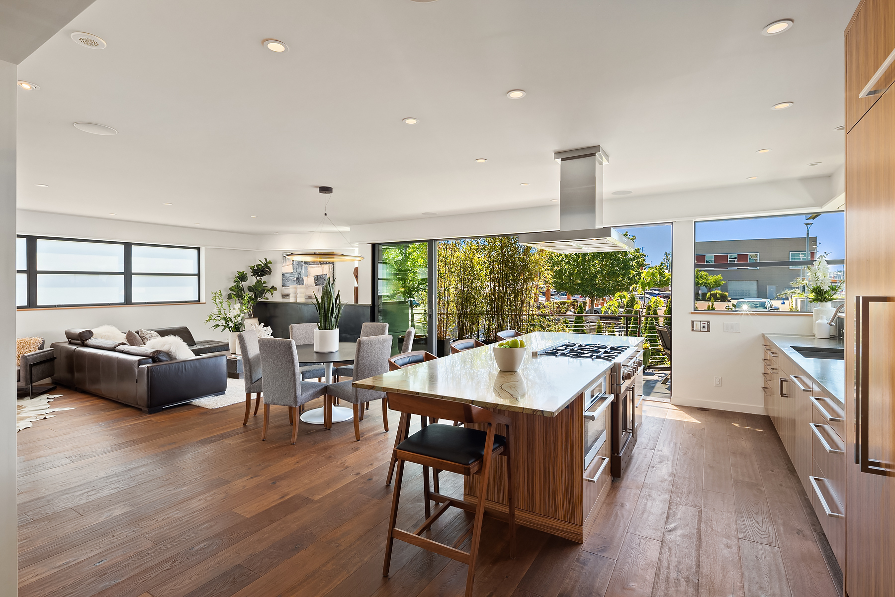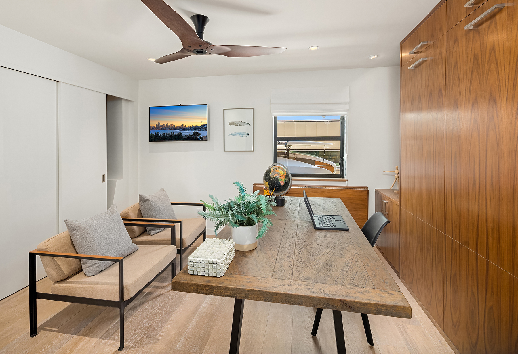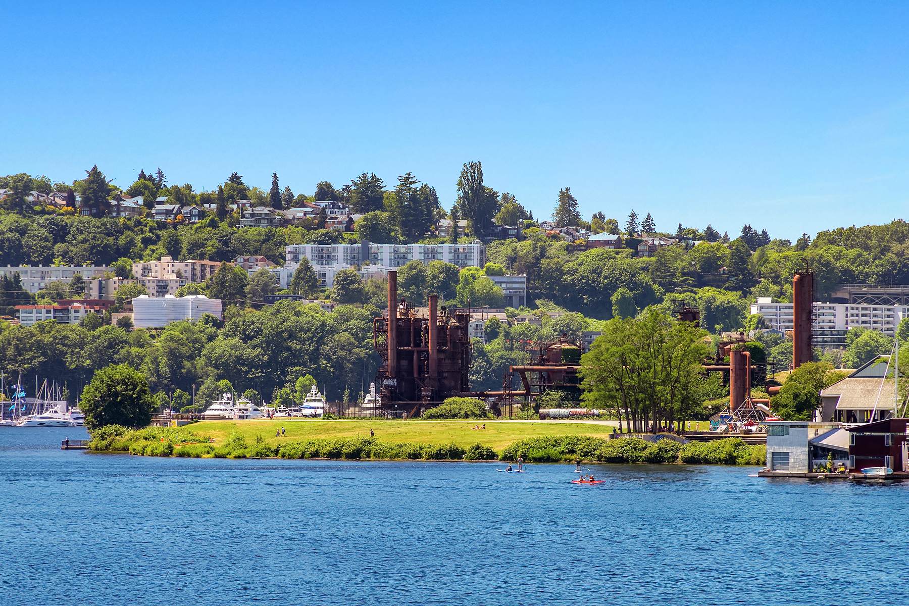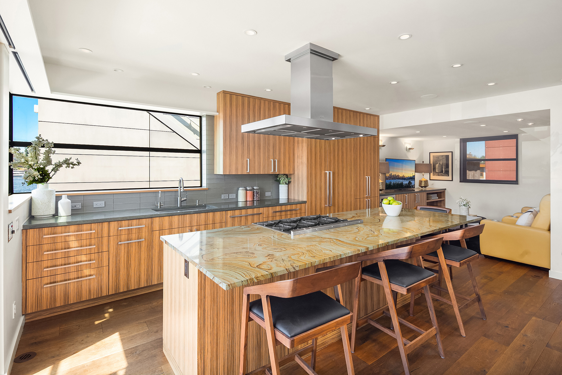 A rare opportunity to live at Seattle’s premier floating home community of Wards Cove on Lake Union. Meticulously maintained, this quality built floating home from Dyna Construction surpasses all expectations. Top floor features voluminous open floor plan w/chef's kitchen with custom cabinetry, eating bar, tv room off the kitchen, sliding doors open onto a covered heated patio. Main level features 3 beds, primary has walk in closet, en-suite bath w/radiant heat and a luxurious steam shower. Sliding doors open onto water level deck with outdoor shower and moorage of up to 32’ boat. Enormous rooftop deck with views of the lake, downtown, glorious sunsets and all the boating activity the lake offers. One gated off-street parking space.