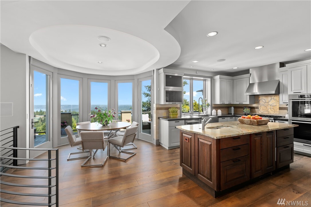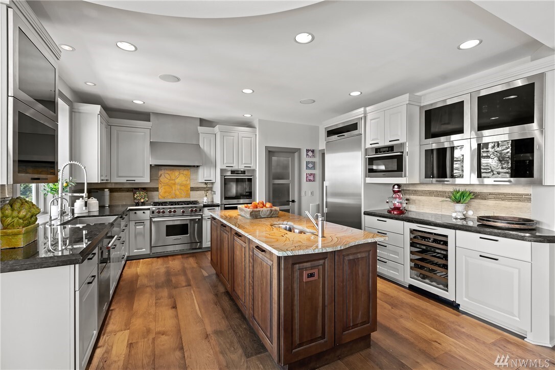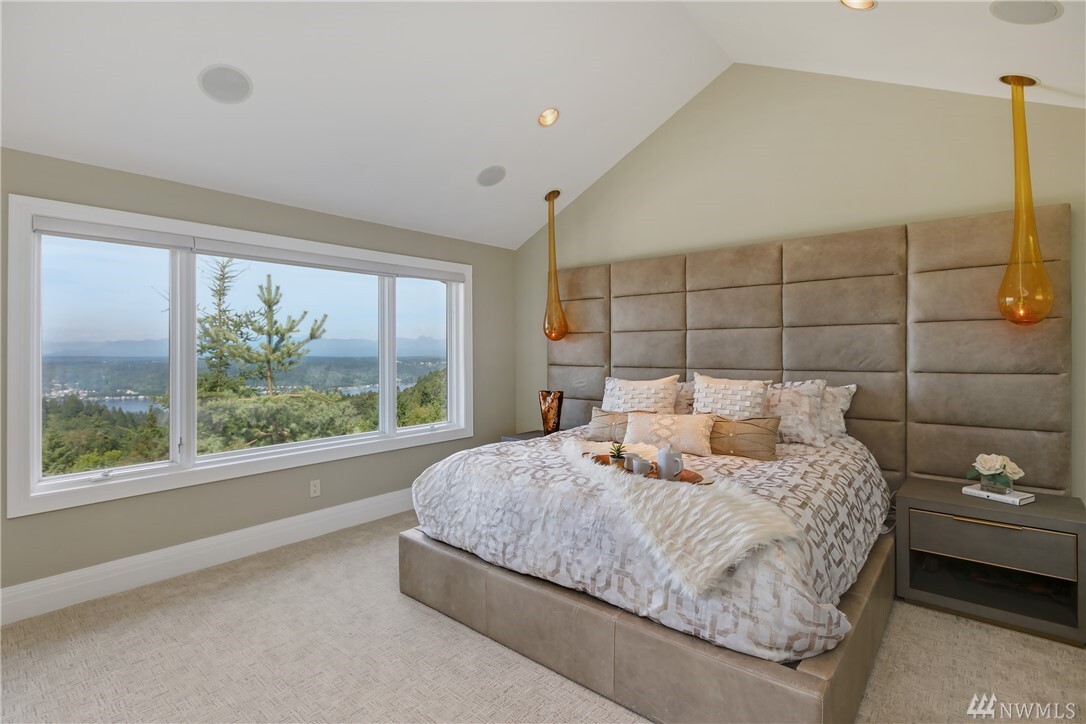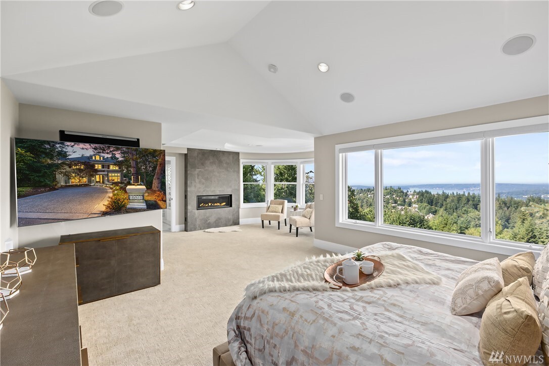A boldly curated technically innovative approach to modern living with commanding views of Lake Sammamish, the Cascades and Mt. Baker. A fusion of passion and perfection where clean lines are met with sinuous curves, cutting edge materials and rich textures. Voluminous living and entertaining with wide plank floors, sleek linear fireplaces and statement light fixtures. Savor sweeping panoramas from the private rear deck with BBQ kitchen and hot-tub opening to a fully decked out designer garage. Unparalleled home amenities including a home gym, 18-zone indoor/outdoor sound system and incomparable custom media room. A rare gem tucked into the hillside on a quiet cul-de-sac just minutes from I-90, downtown Bellevue and award-winning schools.