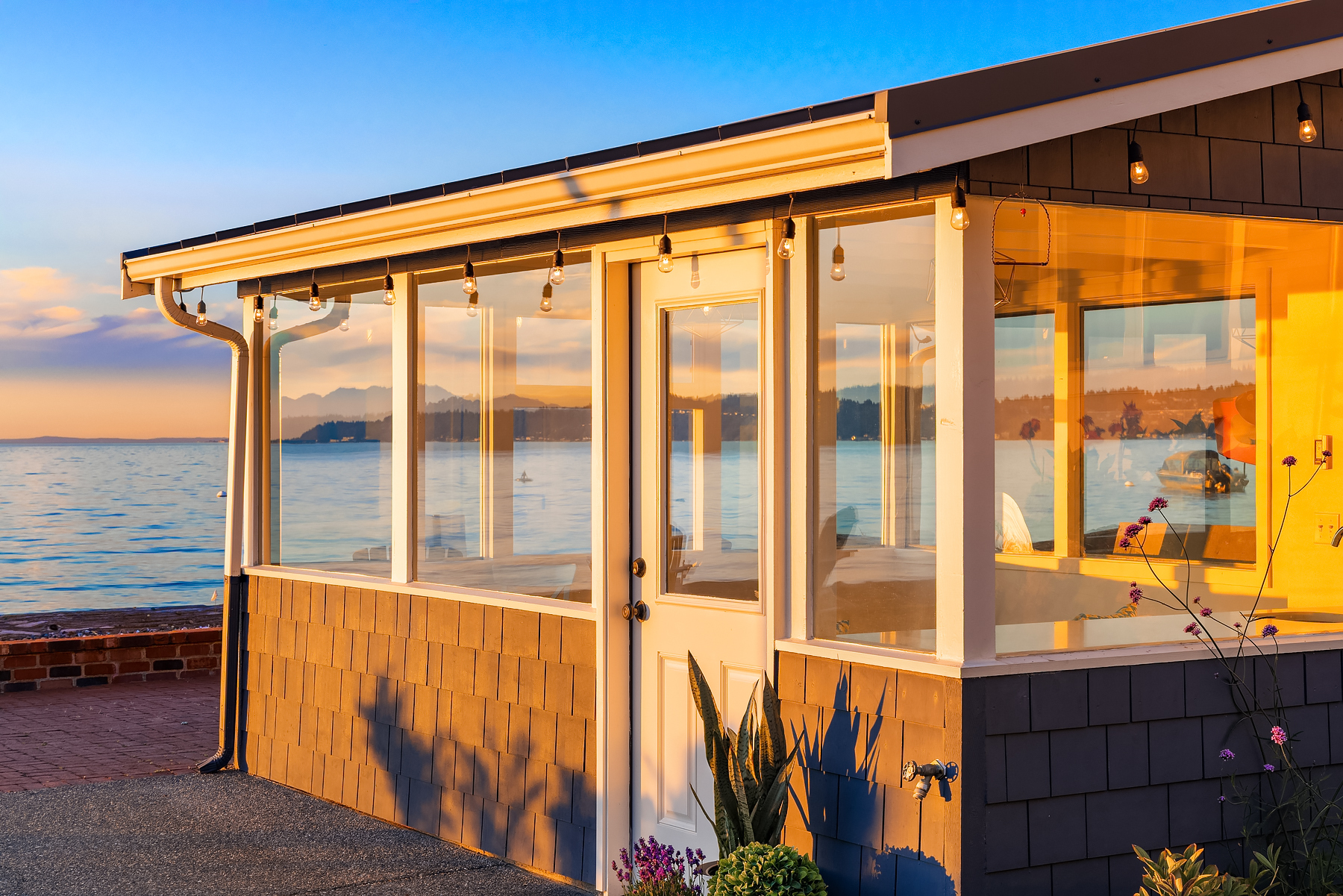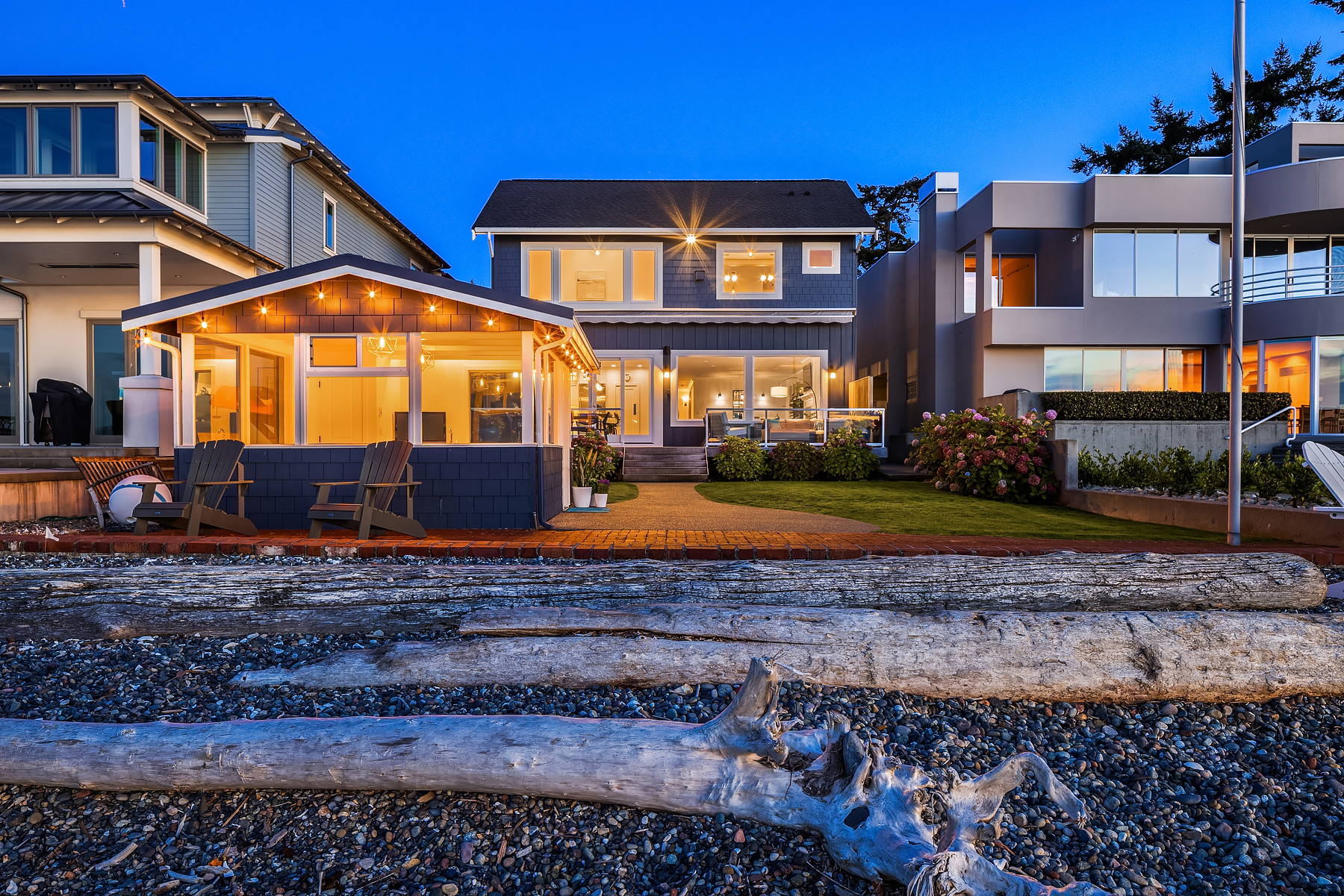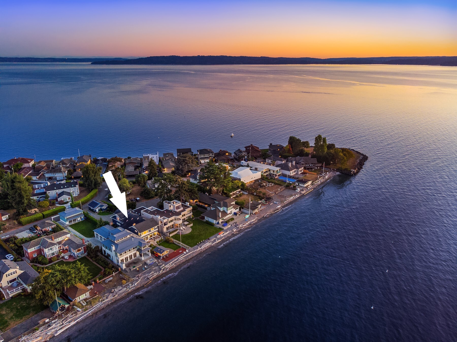 A gentle salty breeze floats in the air. Here, the horizon meets the dark blue water in endless captivating views. Welcome to 9 SW Three Tree Point Lane: a home where fresh sophistication & warm comforts blend in a beautiful cocktail. Resting on level grounds, the property offers total privacy from the street. Meticulous landscape greets guests along a paved walkway & lush vegetation. Open the front door to a refined & inviting interior flowing into the expanse of Puget Sound & the striking lines of the Olympics. Inside white tones, richly-colored hardwoods & plush carpets. The kitchen, w/its coastal vibrancy, acts as the true core of the house. Step onto the deck for morning coffee or retreat into the charming cabana along the sandy shore.