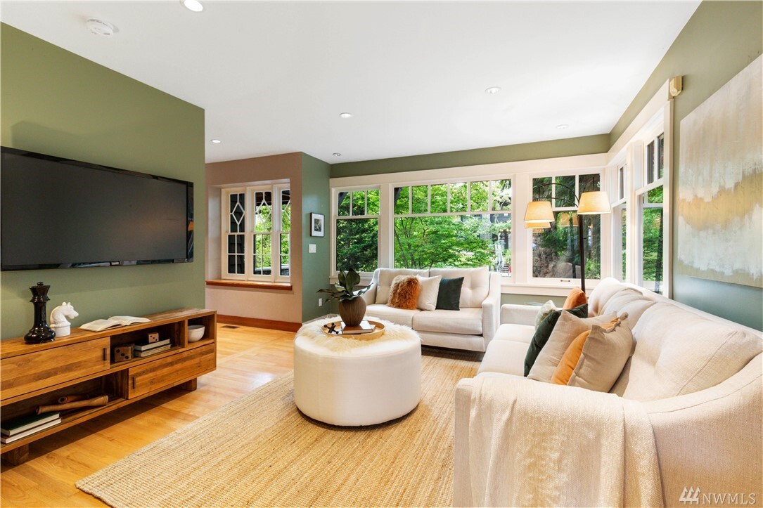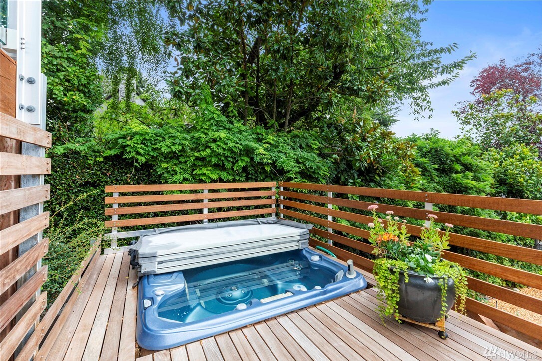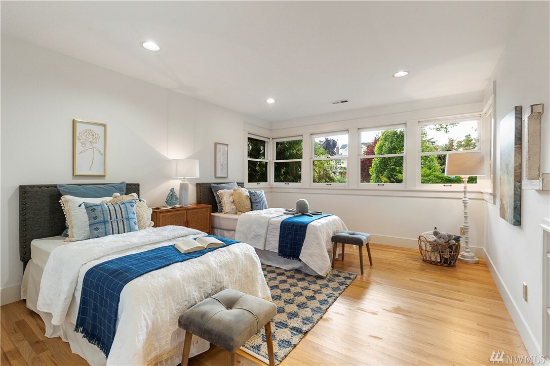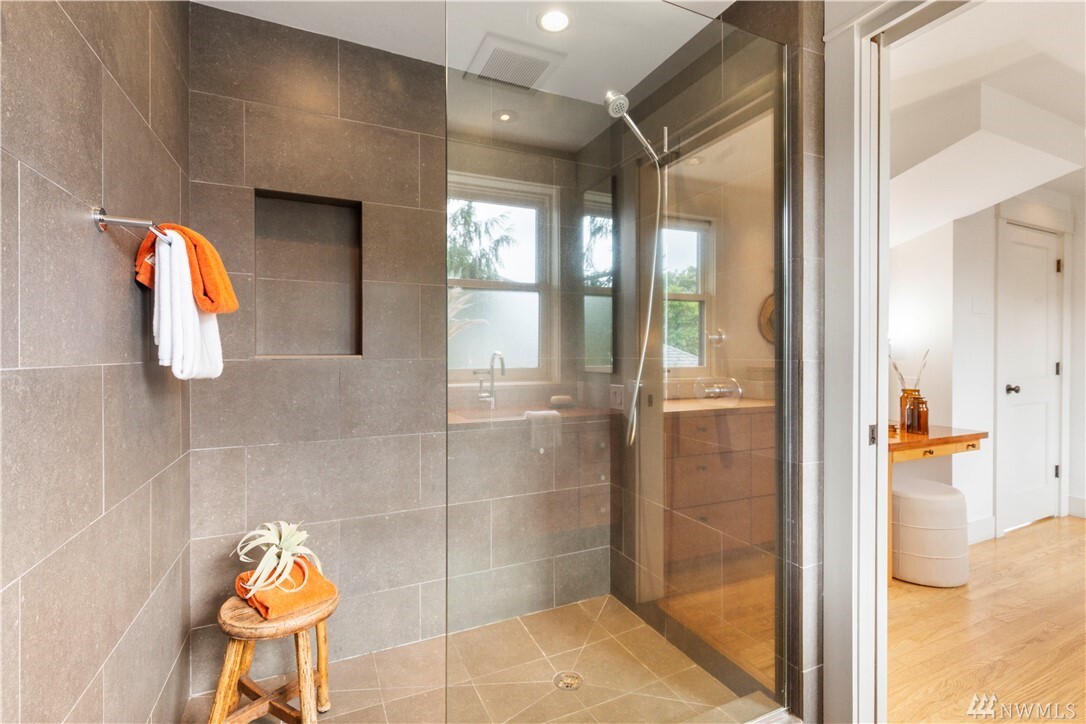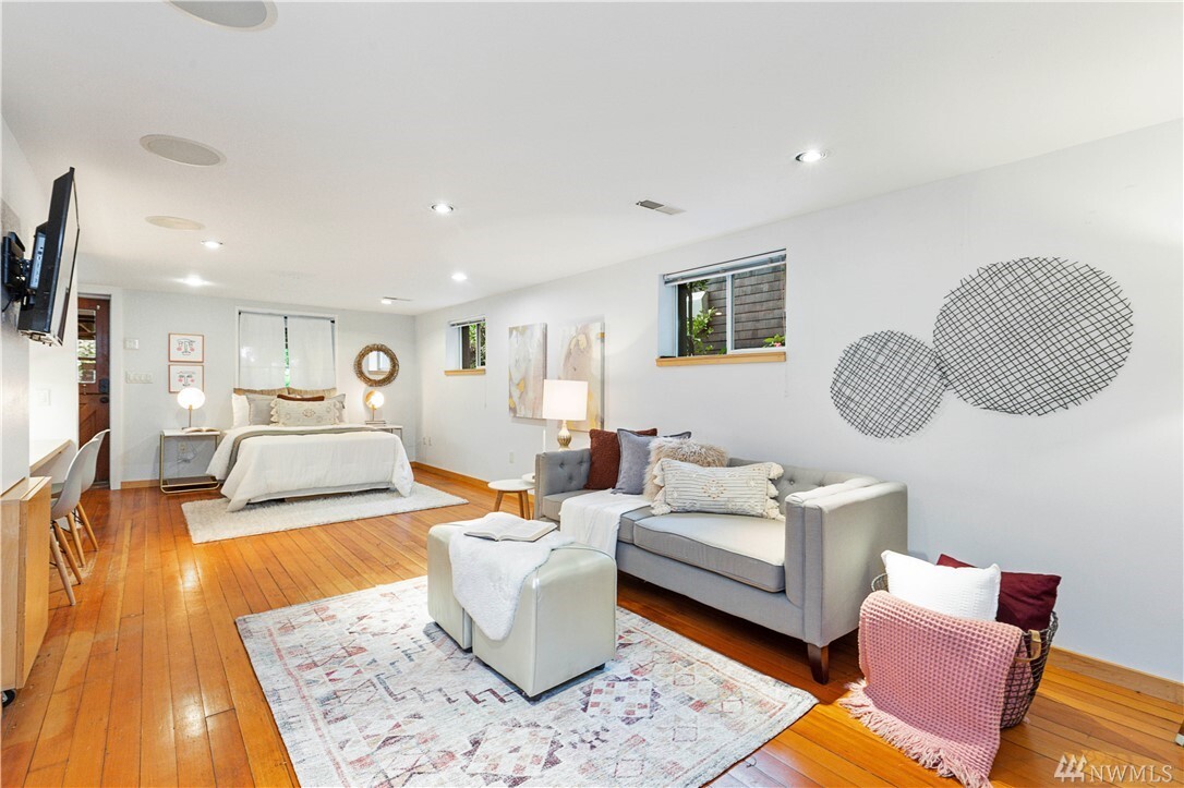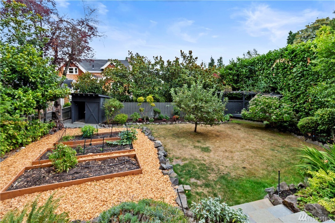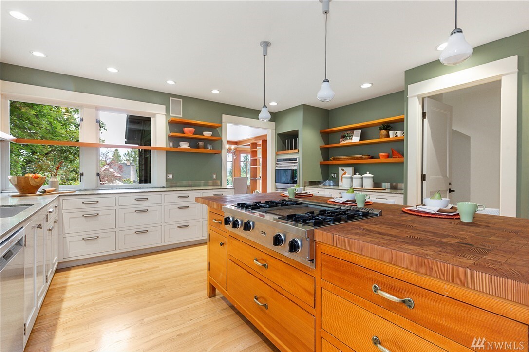 Only a short walk to Madrona, with popular spots such as Hi-Spot Cafe and Molly Moon's Ice Cream, your Pacific NW Denny Blaine home awaits! Perched prominently above the street and surrounded by lush landscaping and fruit trees, you’ll feel far away from the city, yet you're amidst greenbelt trails, less than half a mile from the lake, and about a dozen minutes to downtown. Remodeled in 1993 by Seattle builder Jerry Fulks, you’re welcomed with intricate woodwork throughout, beautiful hardwood floors and custom built-ins. Walls of windows and French doors that open to your expansive entertaining sized deck, with stunning views of Lake Washington and the Cascades, providing an ideal setting for indoor/outdoor entertaining. One-of-a-kind!