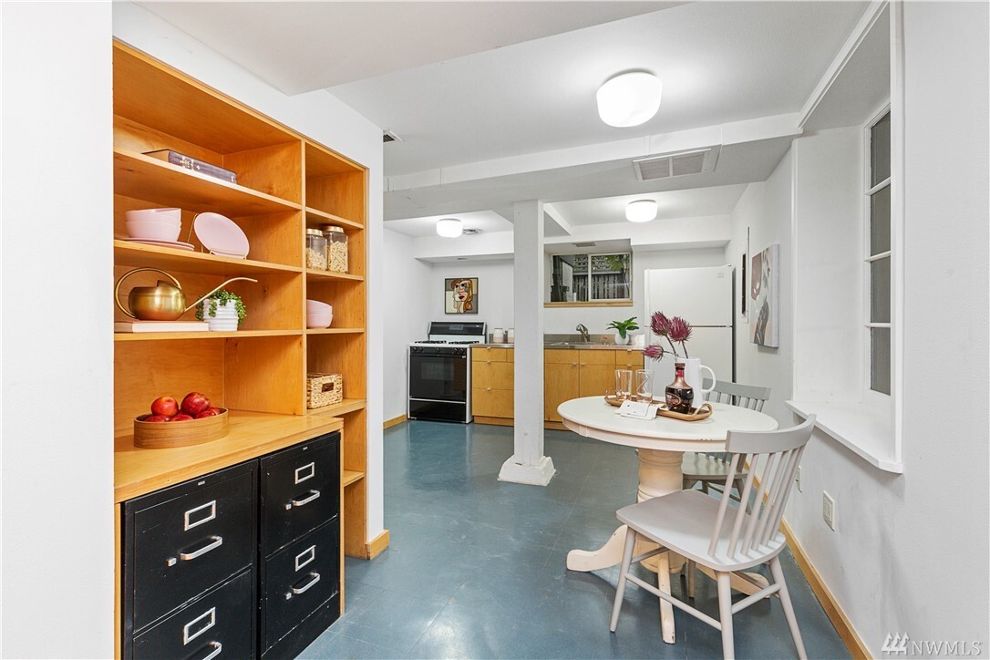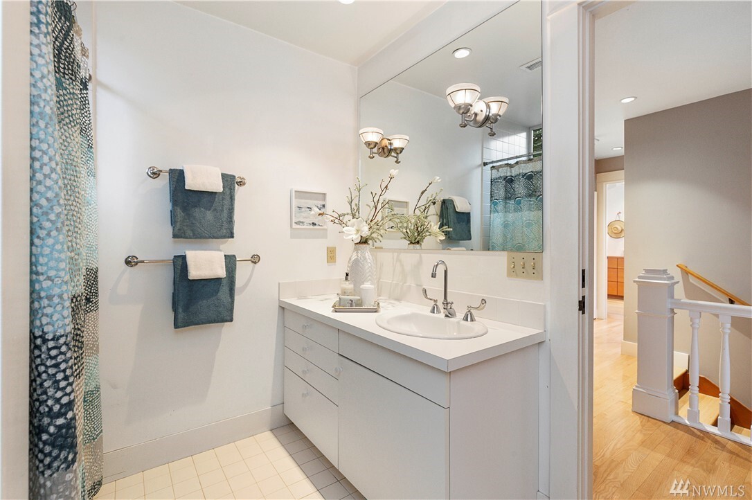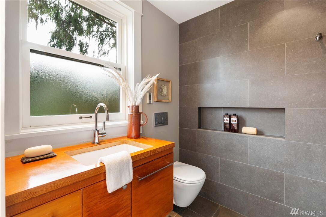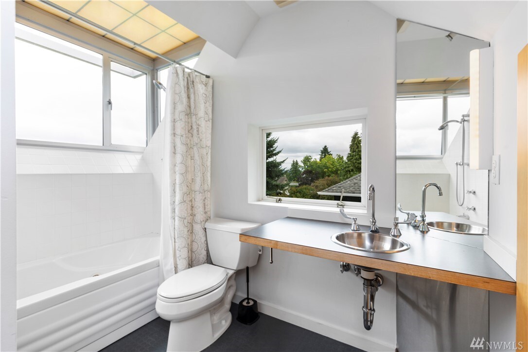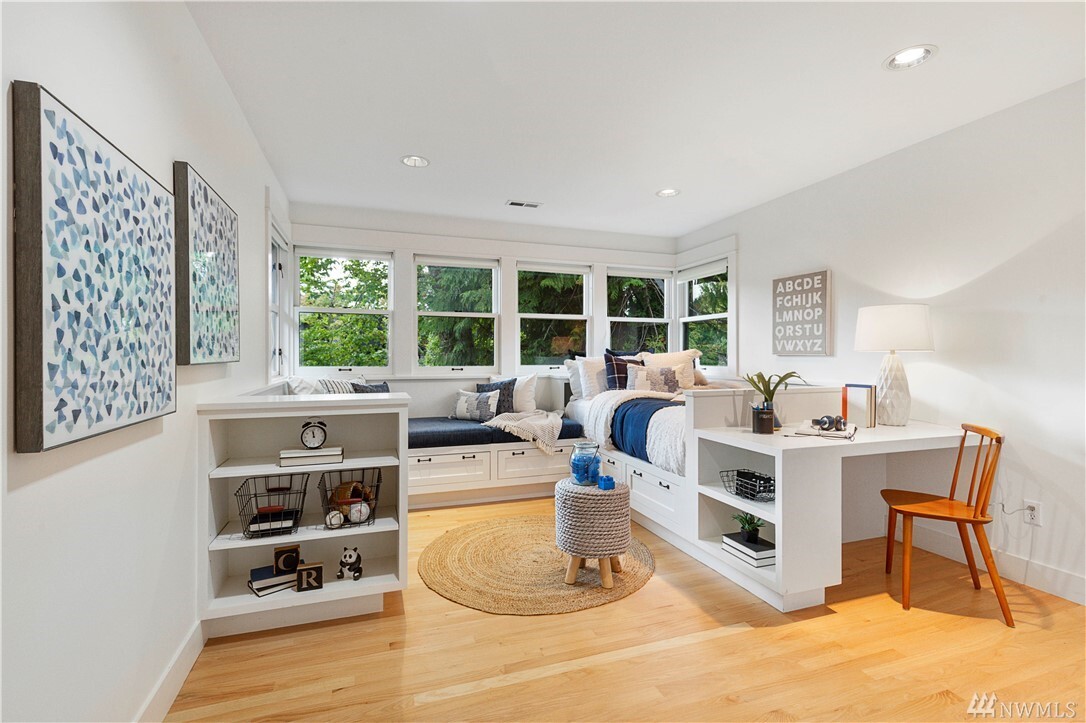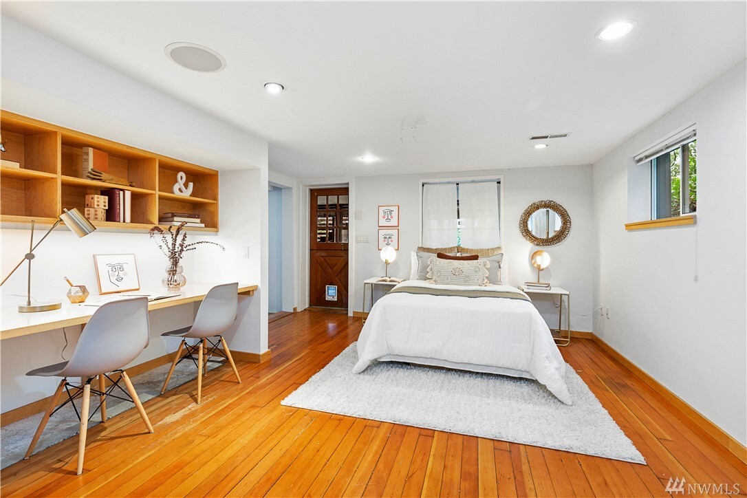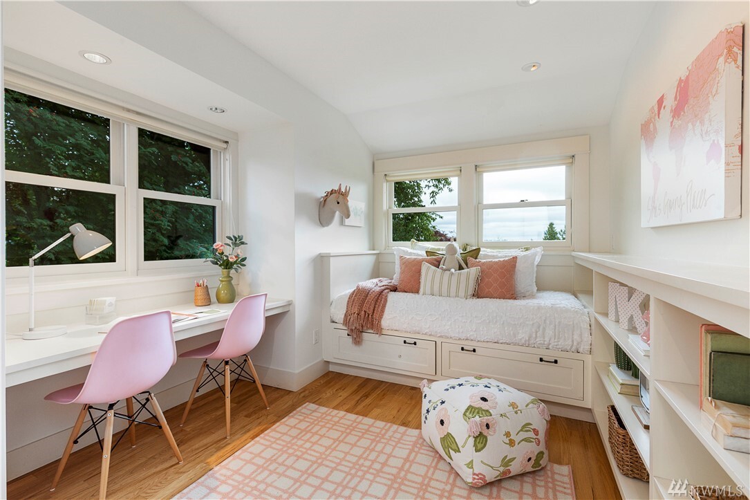 Only a short walk to Madrona, with popular spots such as Hi-Spot Cafe and Molly Moon's Ice Cream, your Pacific NW Denny Blaine home awaits! Perched prominently above the street and surrounded by lush landscaping and fruit trees, you’ll feel far away from the city, yet you're amidst greenbelt trails, less than half a mile from the lake, and about a dozen minutes to downtown. Remodeled in 1993 by Seattle builder Jerry Fulks, you’re welcomed with intricate woodwork throughout, beautiful hardwood floors and custom built-ins. Walls of windows and French doors that open to your expansive entertaining sized deck, with stunning views of Lake Washington and the Cascades, providing an ideal setting for indoor/outdoor entertaining. One-of-a-kind!