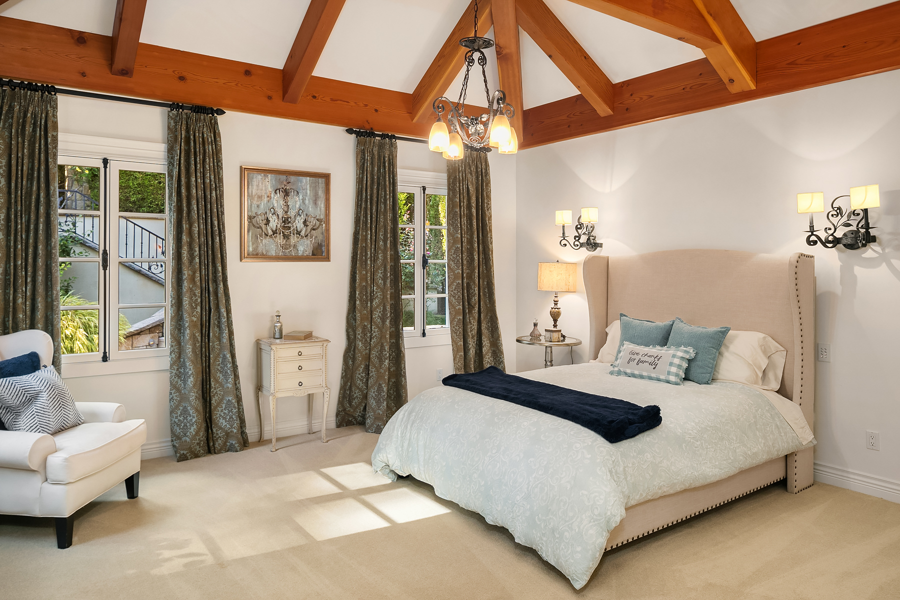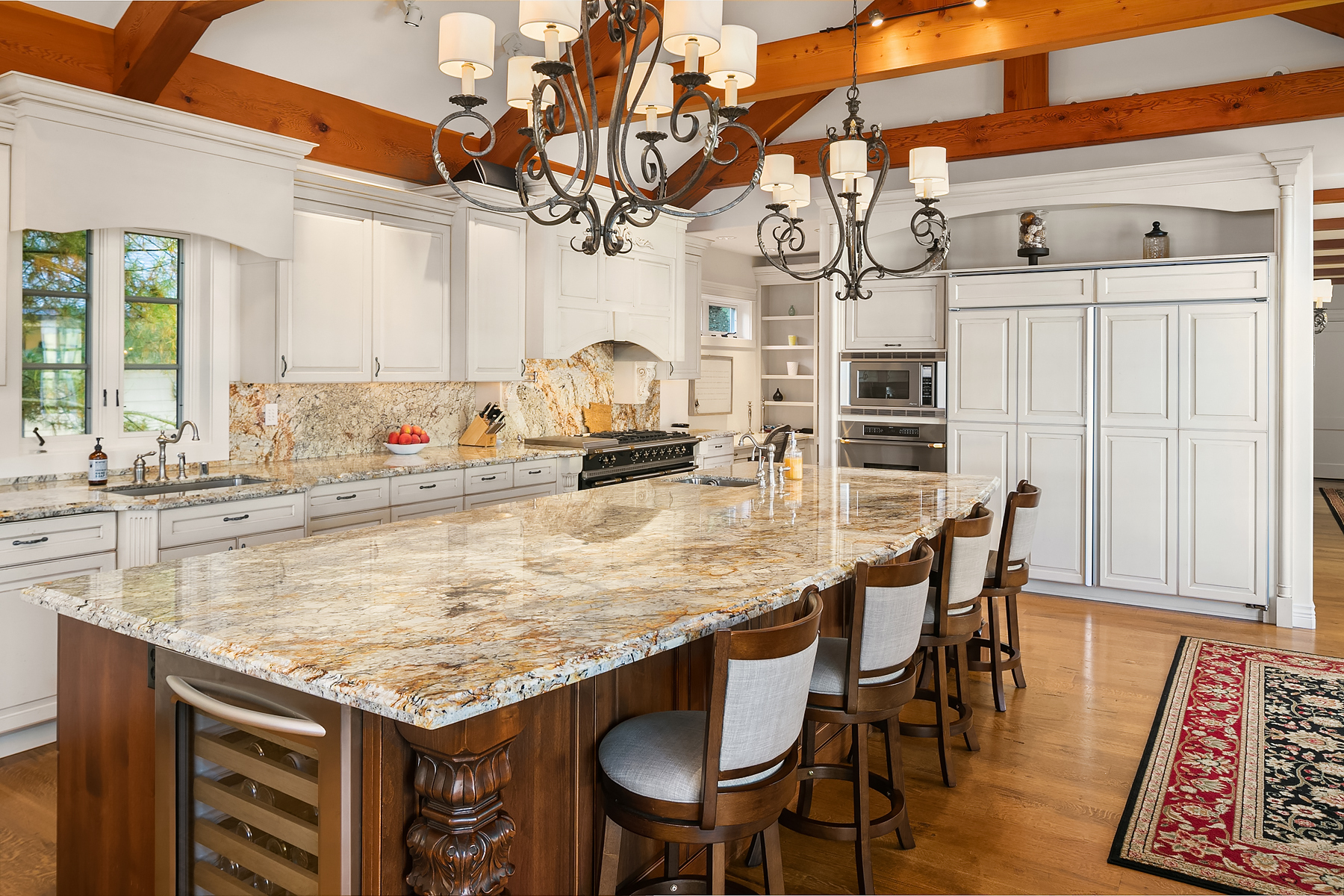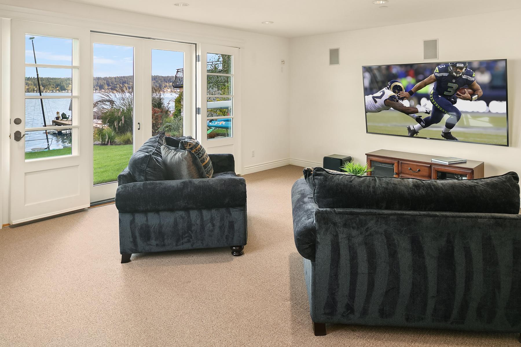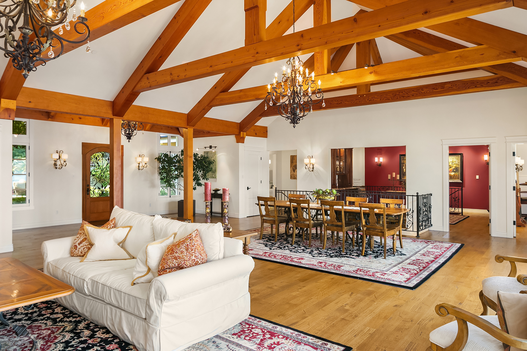 Elevated Contemporary Mediterranean design imbues this bespoke Lake Sammamish Waterfront home with distinctive character, melding gracious architectural proportions, curated finishes and state-of-the-art systems. Shy 1/2 acre, level, street-to-shore lot offers 97' of waterfront, expansive dock, boat lift, extensive beach, two tier bulkhead, meticulous lawn. Lake views from almost every room! U-shaped floor plan, voluminous great room, 19' beamed ceilings, triple set of NanaWall doors open to terraces sheltered from neighbors, wind and sound. Impeccably chosen finishes include wrought iron railings, cased windows, furniture grade built-ins and quarter sawn wide plank French oak hardwoods. Smart Control4 security, climate, media and lighting.