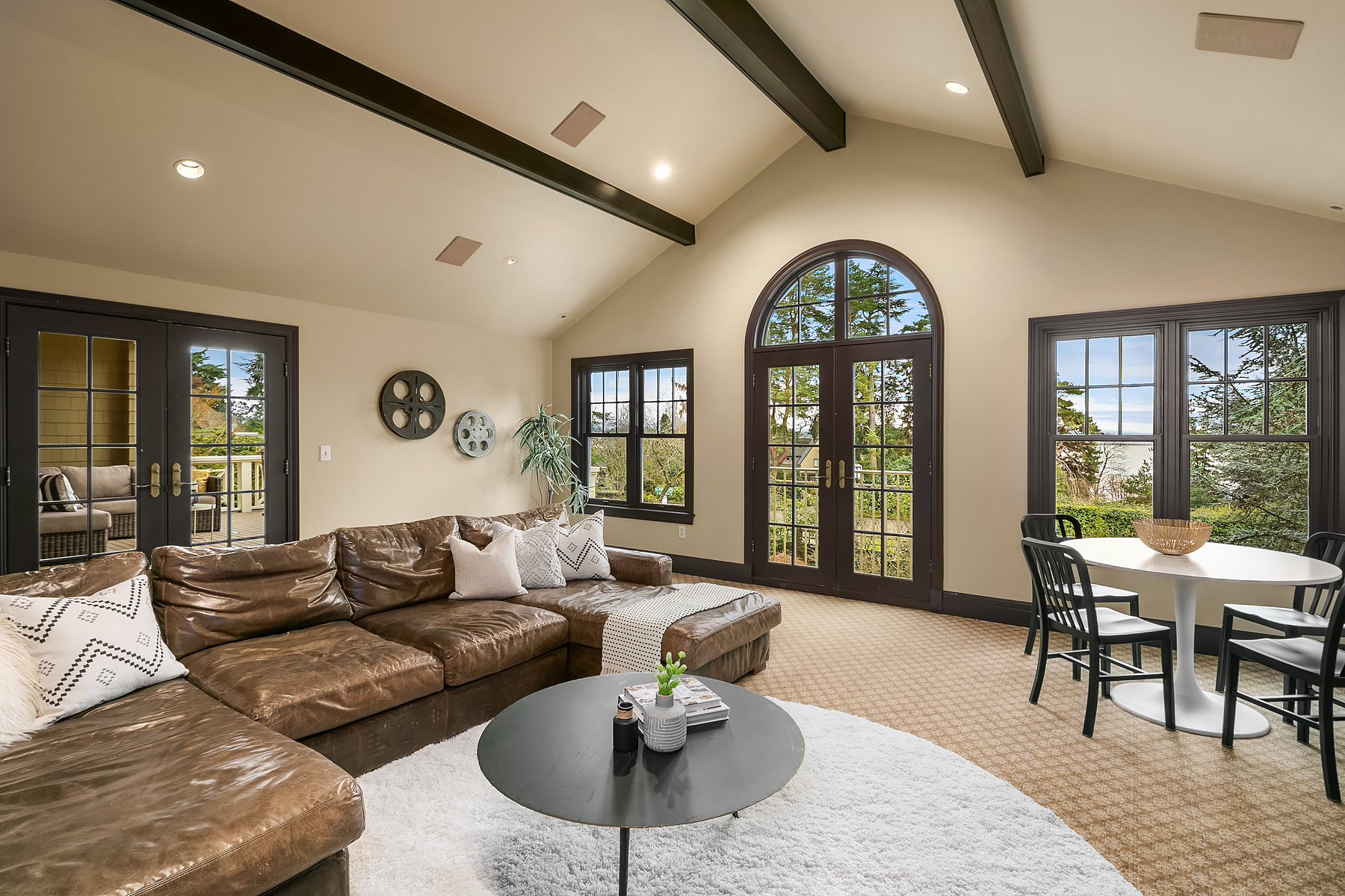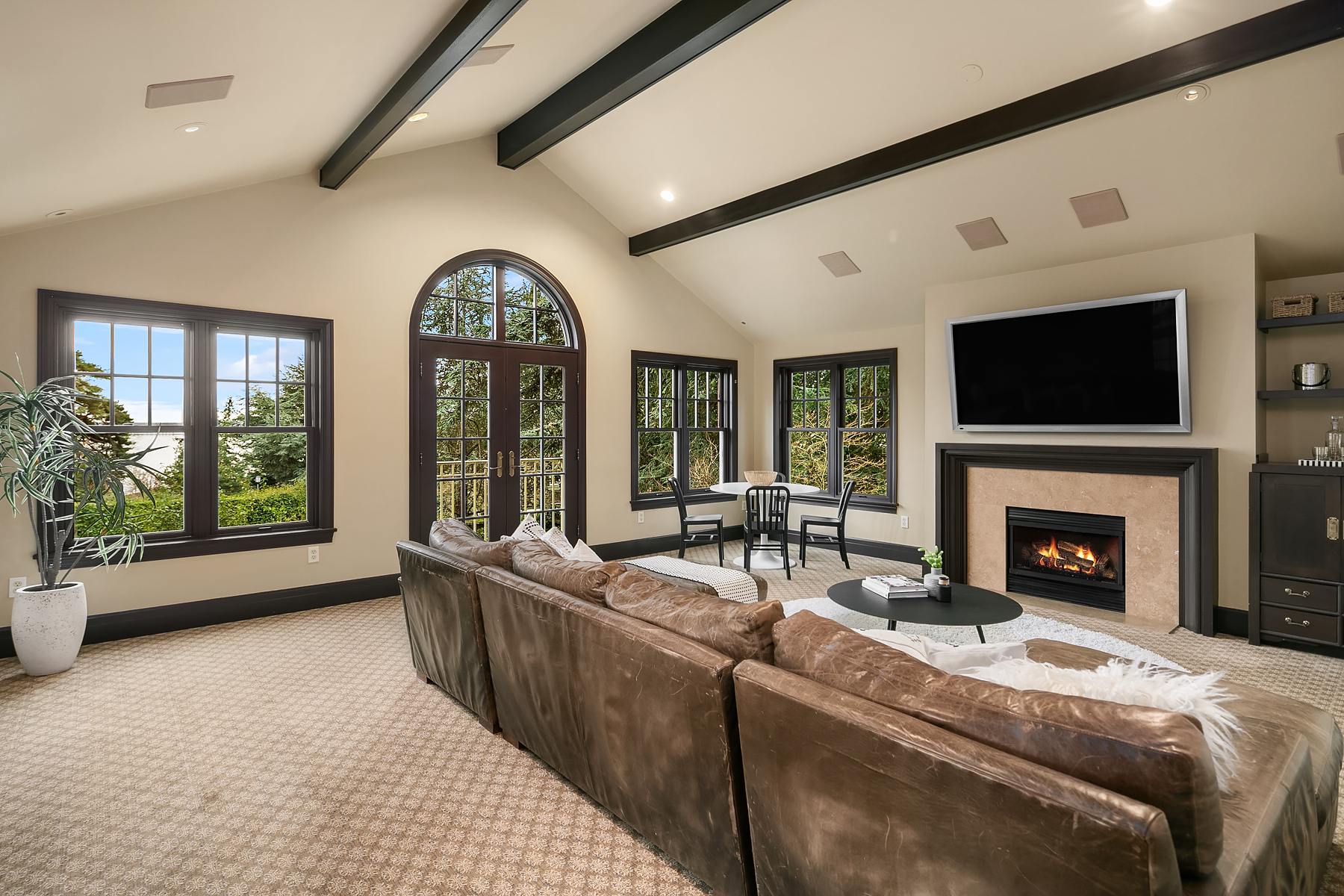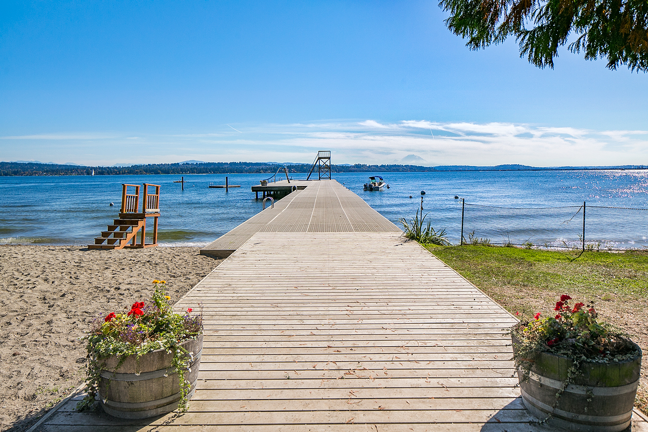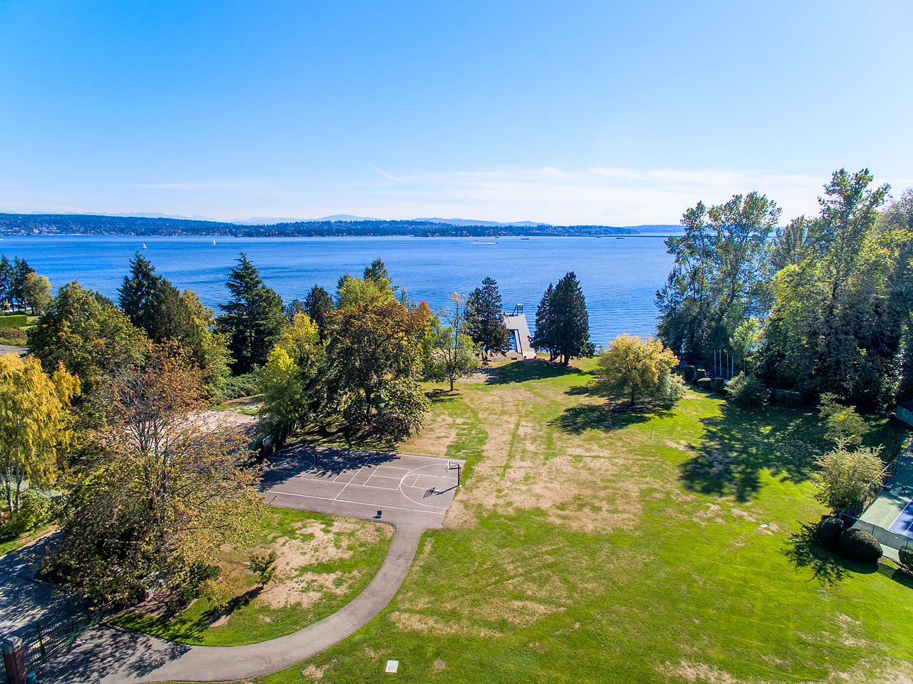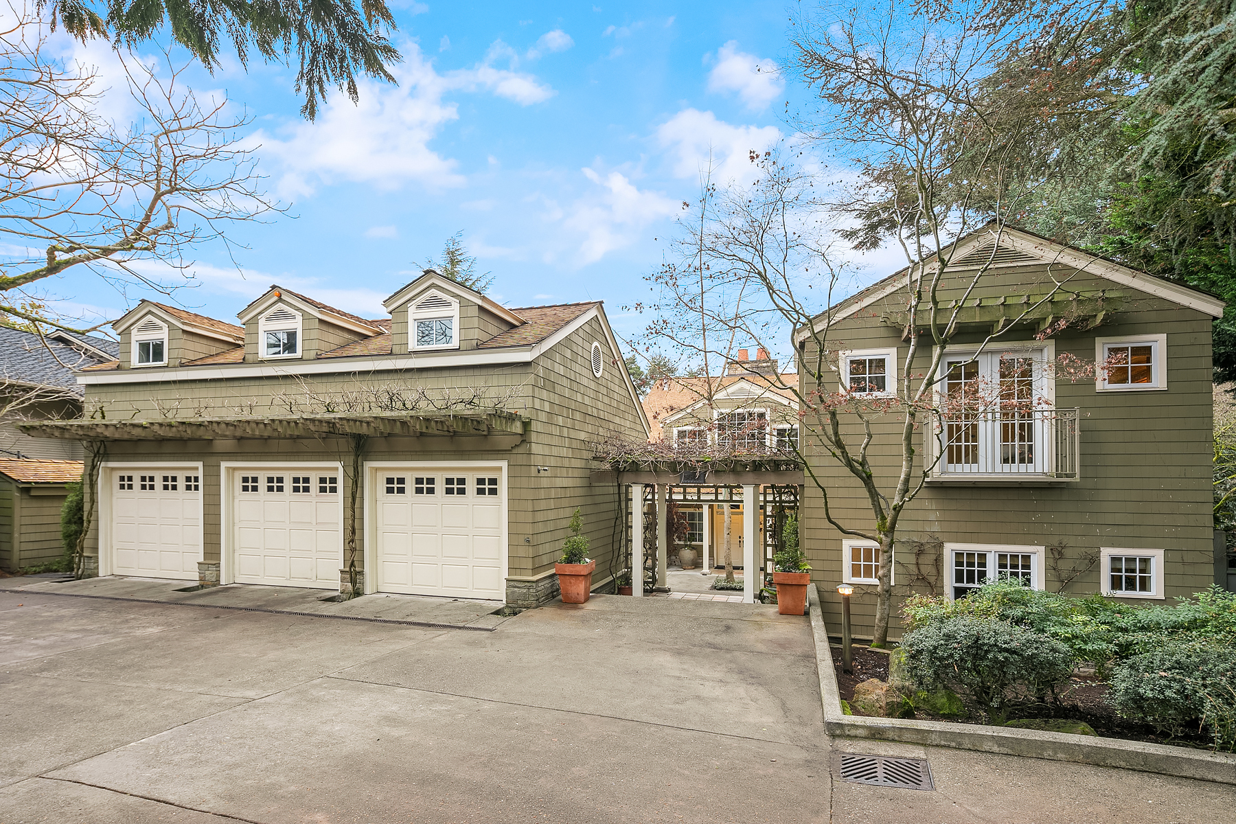 Majestic street to street Windermere home with restful views of Lake Washington. Stepping into the stone courtyard, you are encompassed by peaceful grandeur. The spacious formal living room and dining room blend seamlessly with the entertainment-sized kitchen and family room with a wall of french doors that leads to the lush fully fenced backyard and in-ground pool. The updated, bright kitchen features gorgeous granite counters, massive island, high end appliances, dual dishwashers and a butler's pantry. Main floor primary suite with exquisite bath, fireplace and french doors to the backyard patio. Upstairs, a dedicated media room and loft-style game room with pool table open to a covered view deck. Windermere Beach Club eligible!