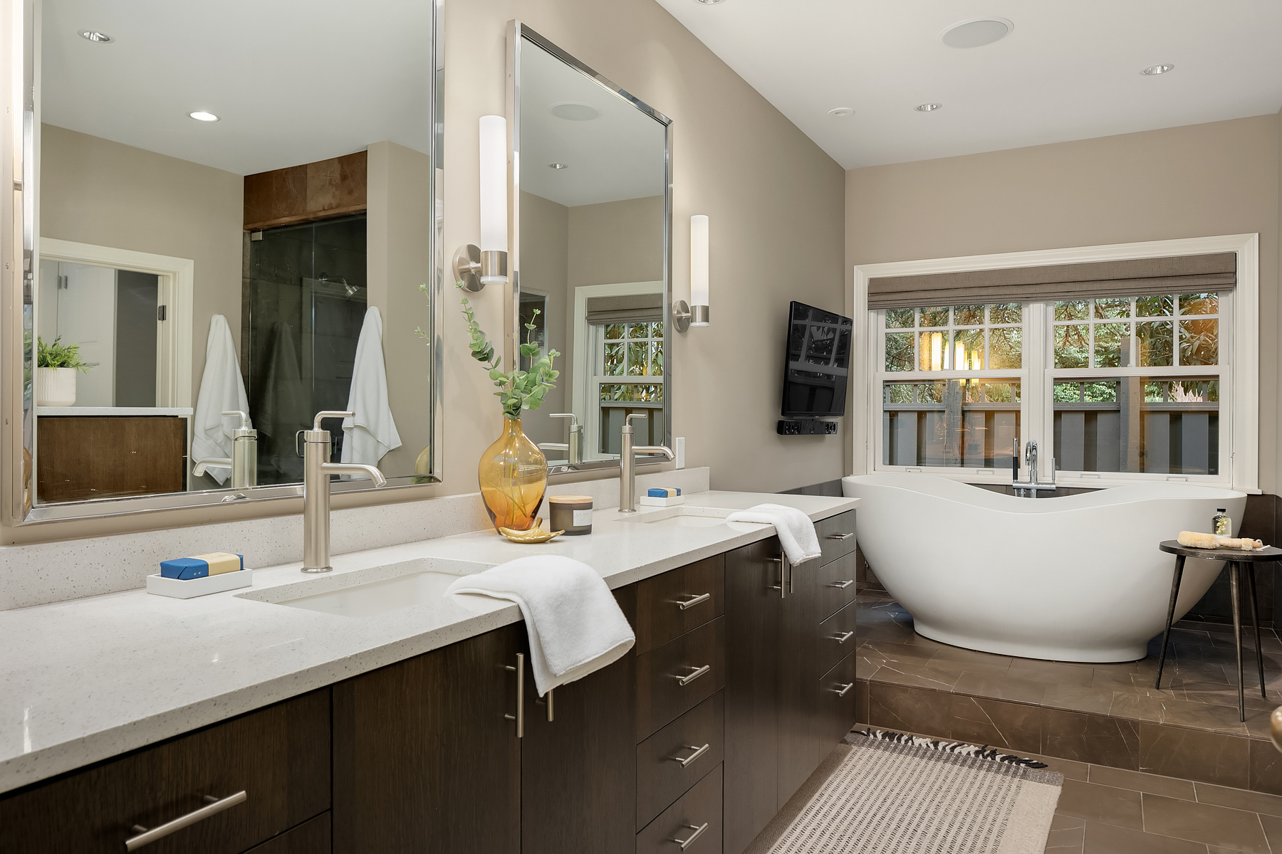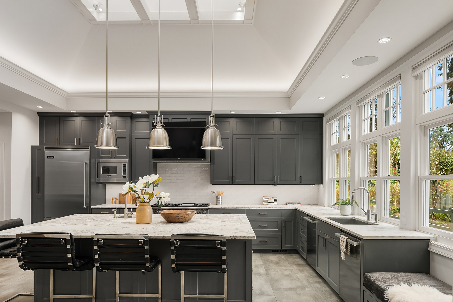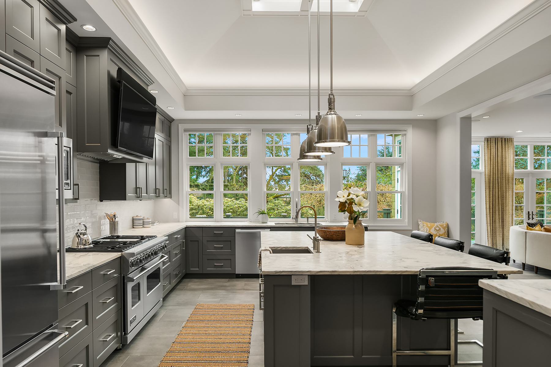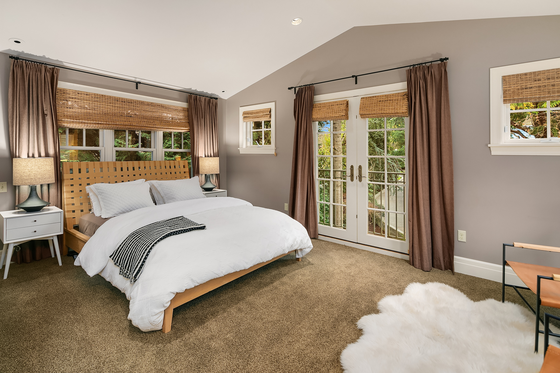 Majestic street to street Windermere home with restful views of Lake Washington. Stepping into the stone courtyard, you are encompassed by peaceful grandeur. The spacious formal living room and dining room blend seamlessly with the entertainment-sized kitchen and family room with a wall of french doors that leads to the lush fully fenced backyard and in-ground pool. The updated, bright kitchen features gorgeous granite counters, massive island, high end appliances, dual dishwashers and a butler's pantry. Main floor primary suite with exquisite bath, fireplace and french doors to the backyard patio. Upstairs, a dedicated media room and loft-style game room with pool table open to a covered view deck. Windermere Beach Club eligible!