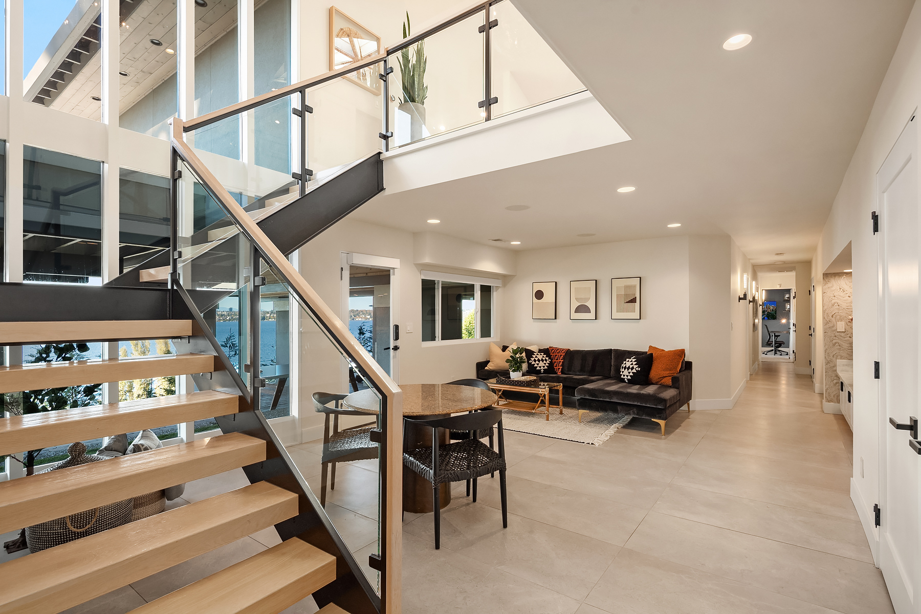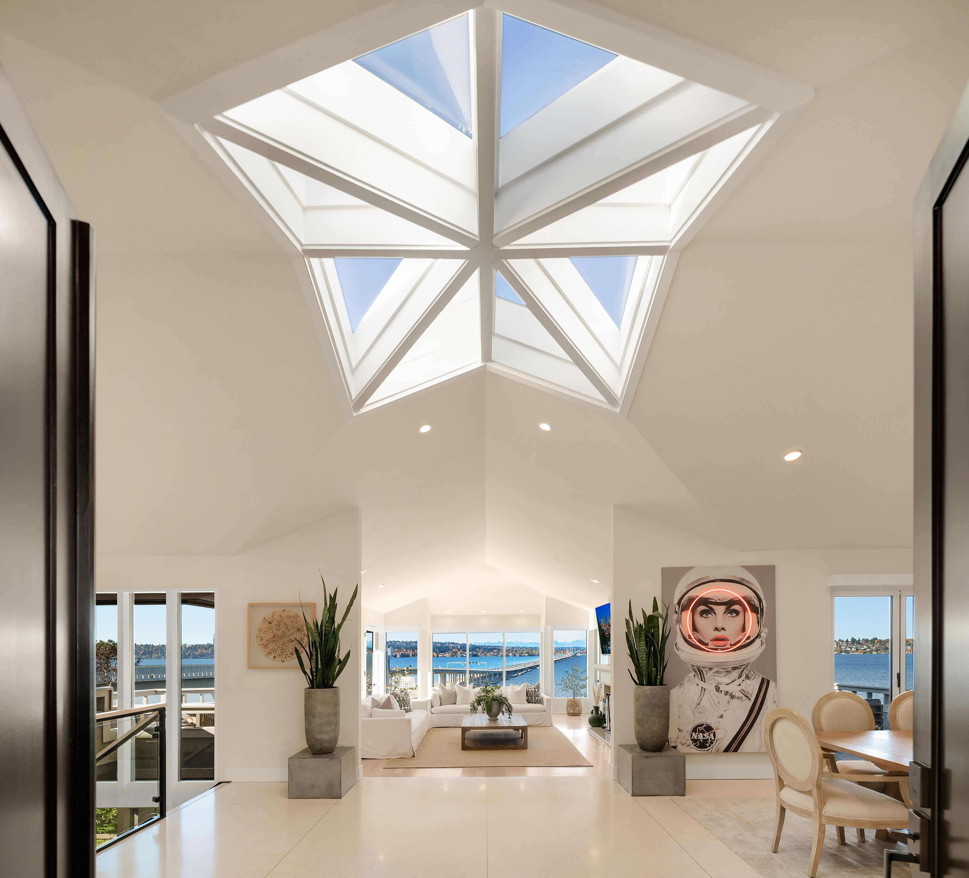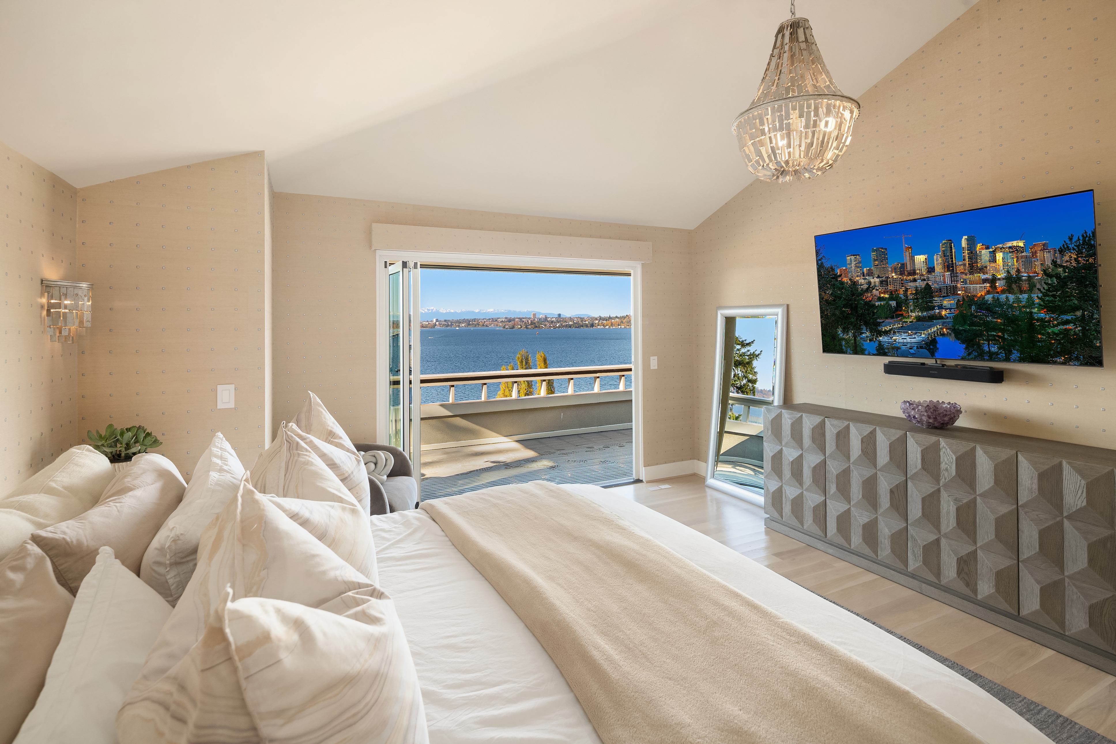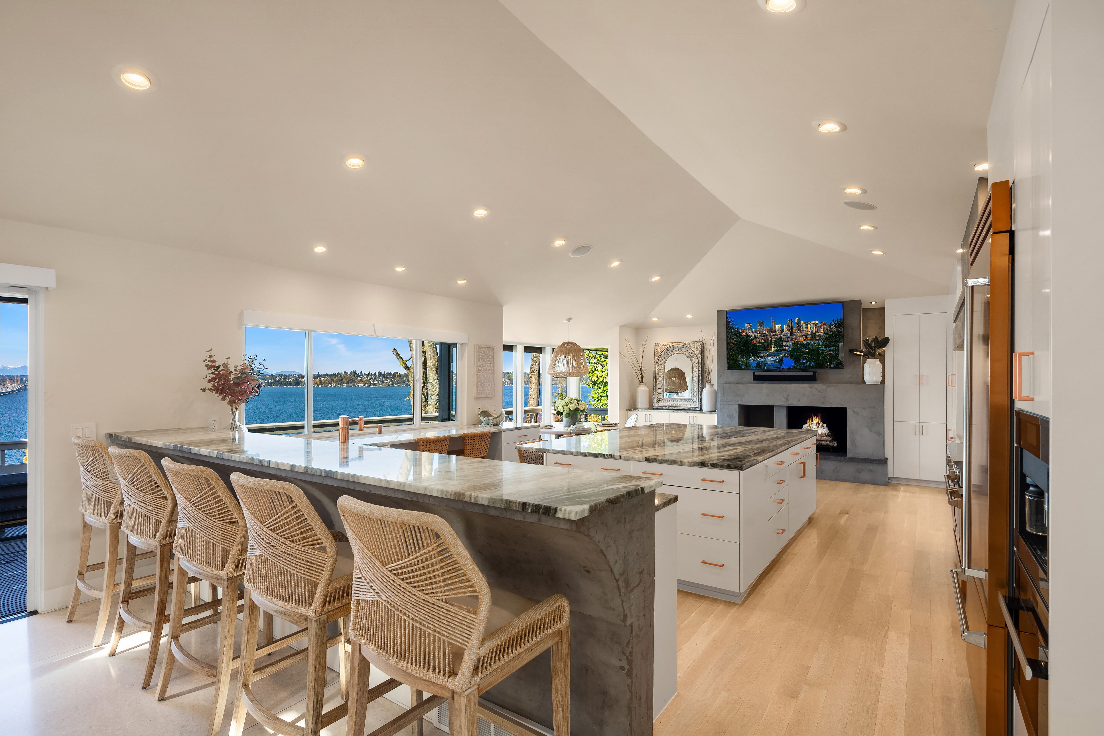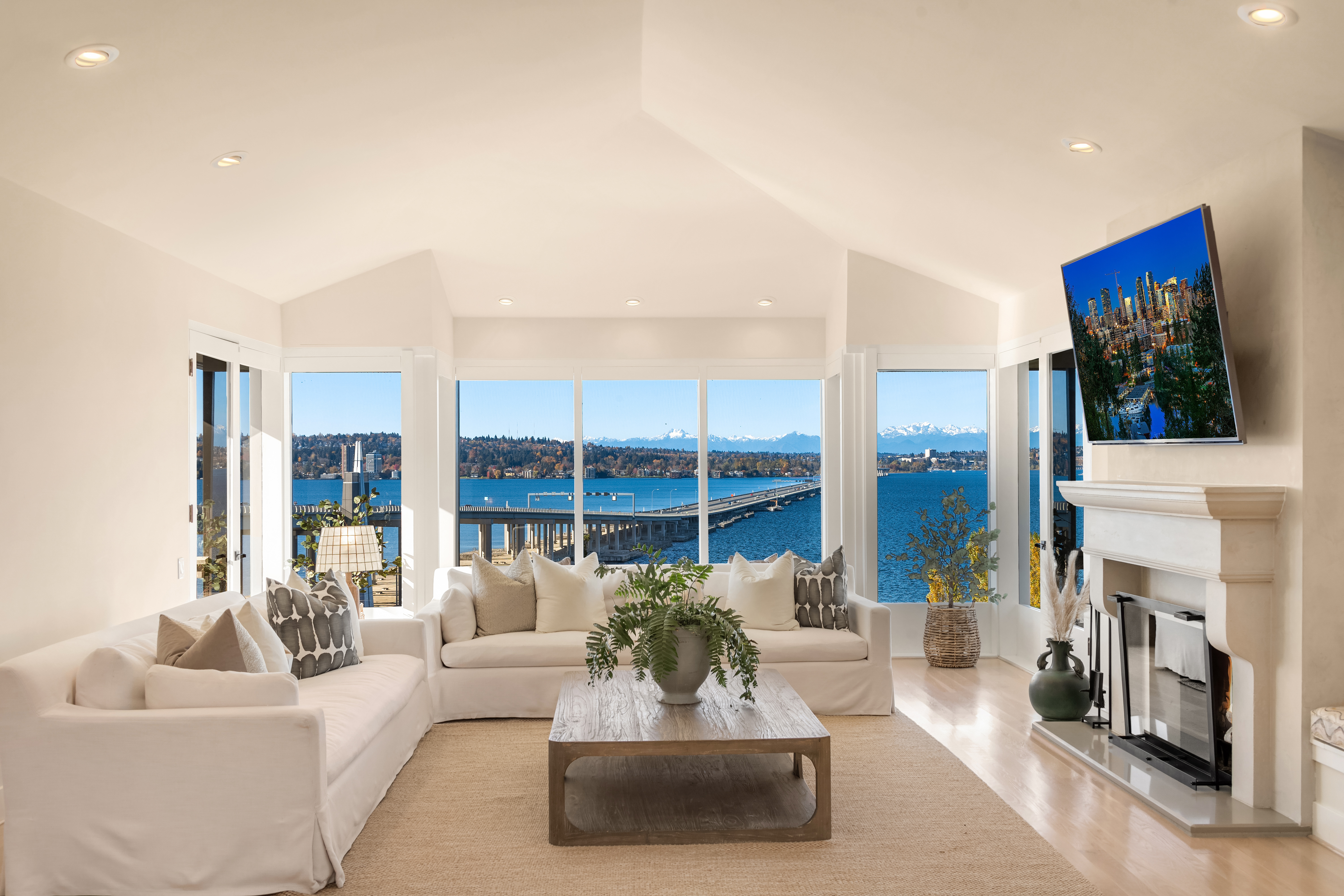 Unrivaled 180 degree views of Lk WA, Seattle skyline & Olympic Mnts, this house is perfect for those who value style, entertaining & quality. This 1964 Ralph Anderson original has been completely renovated all while keeping true to it’s original architecture. From the handpicked statement wallpaper to the unique light fixtures, no detail was spared. A seamless floor plan balances grand living spaces w/ an intimate setting, perfect for dinner parties of 8 and expansion of larger gatherings anytime of year. Main floor primary with spa-like bath featuring soaking tub, steam shower & custom closet creates an owner’s retreat. Space outdoors for all of your activities, easement to use shared waterfront and dock - it doesn’t get better than this.
