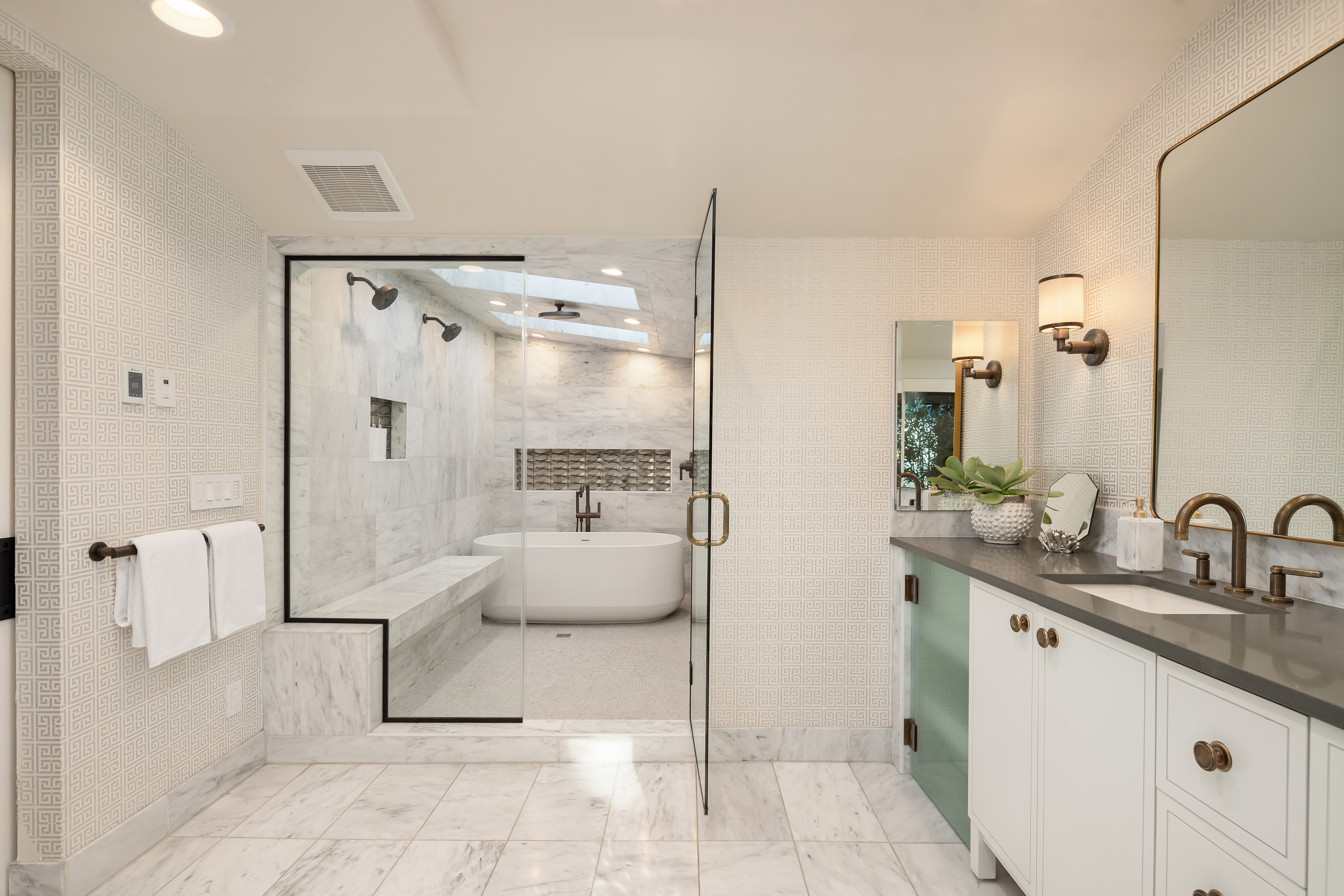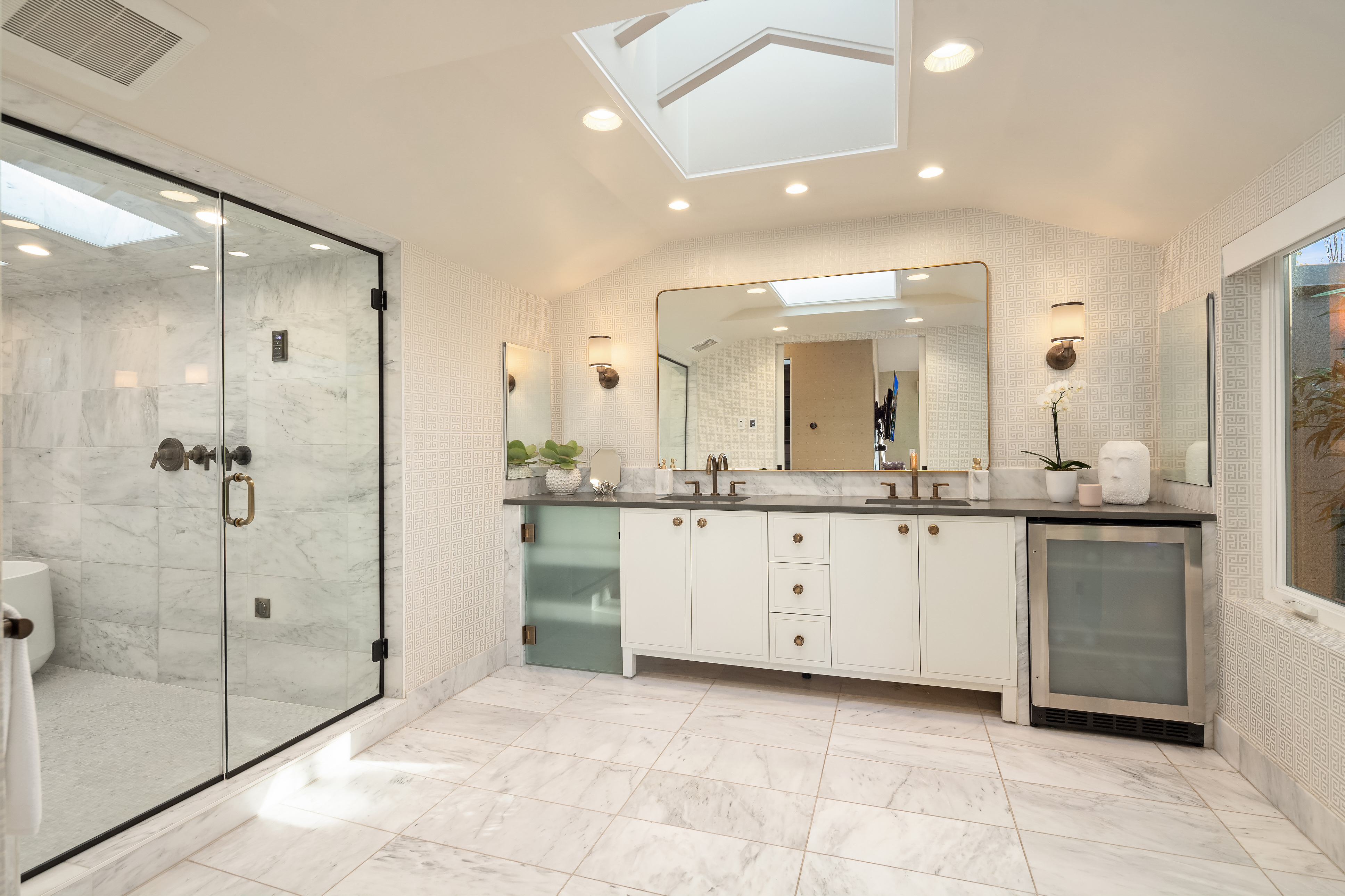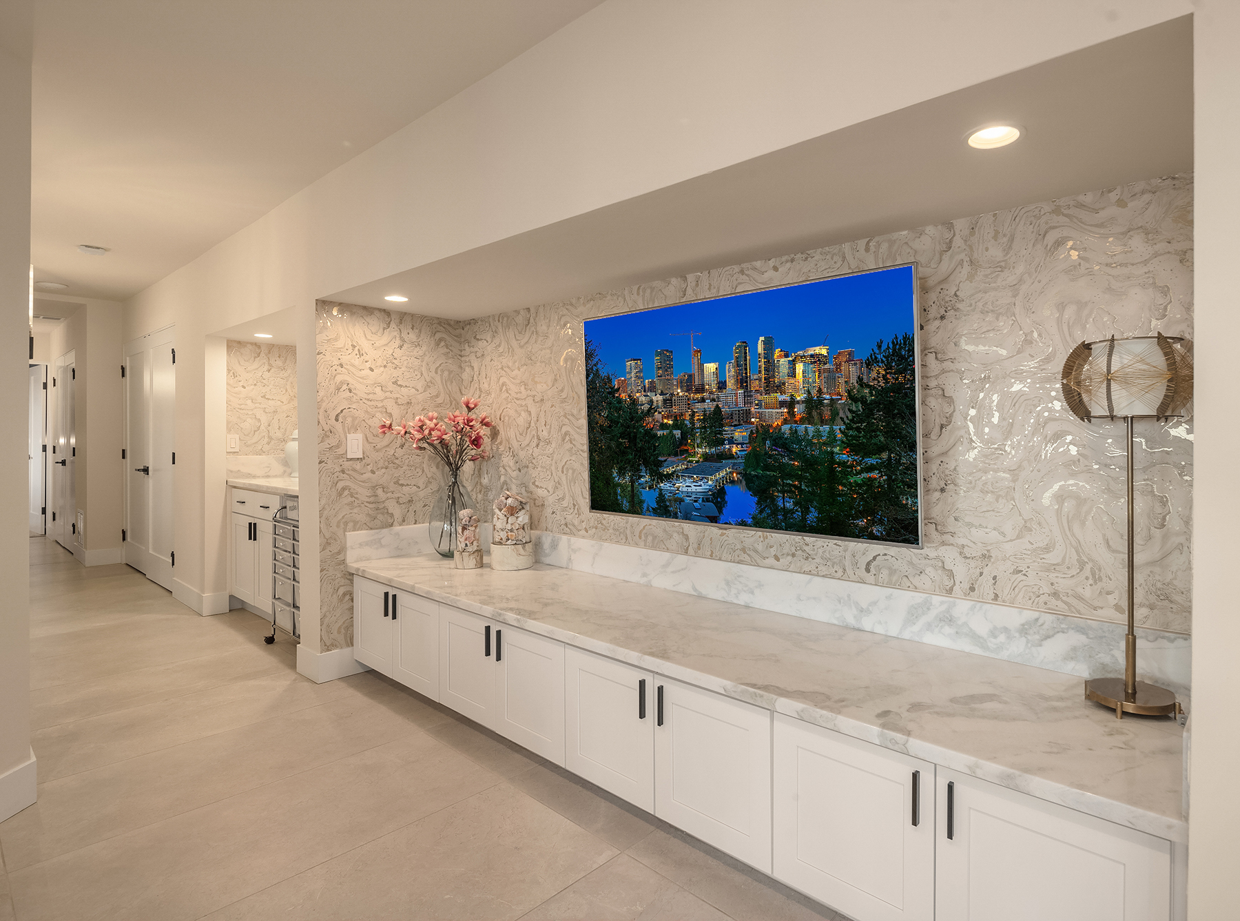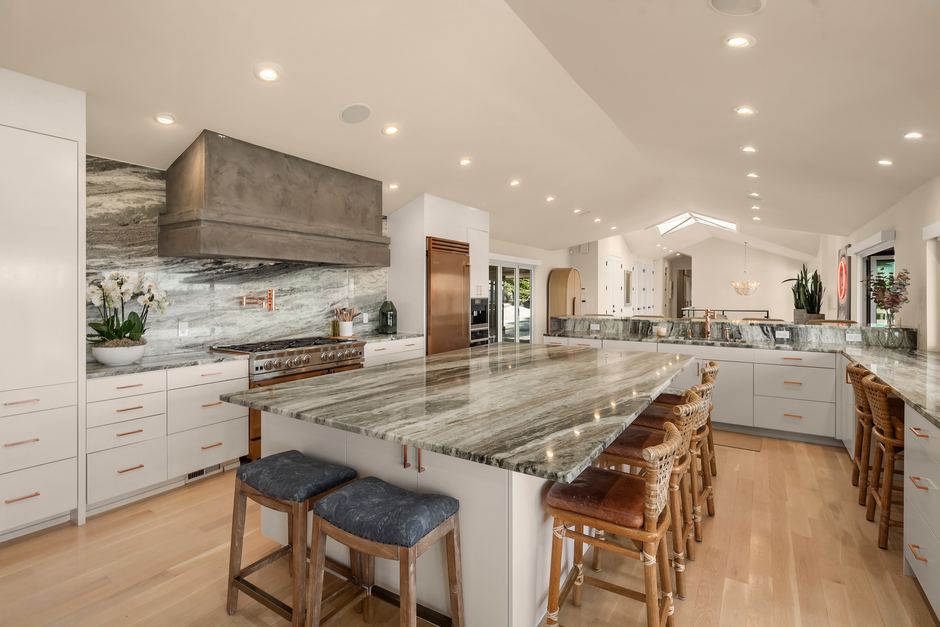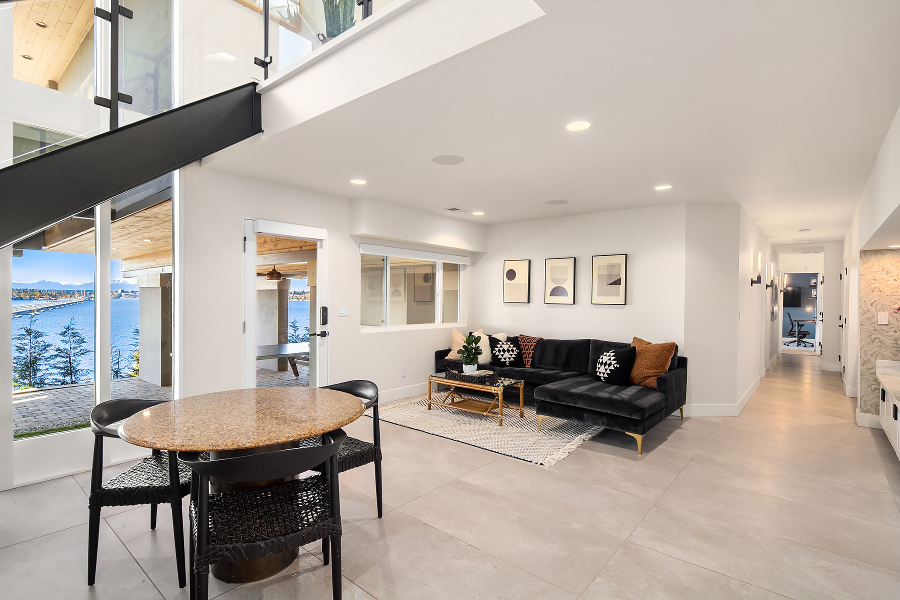 Unrivaled 180 degree views of Lk WA, Seattle skyline & Olympic Mnts, this house is perfect for those who value style, entertaining & quality. This 1964 Ralph Anderson original has been completely renovated all while keeping true to it’s original architecture. From the handpicked statement wallpaper to the unique light fixtures, no detail was spared. A seamless floor plan balances grand living spaces w/ an intimate setting, perfect for dinner parties of 8 and expansion of larger gatherings anytime of year. Main floor primary with spa-like bath featuring soaking tub, steam shower & custom closet creates an owner’s retreat. Space outdoors for all of your activities, easement to use shared waterfront and dock - it doesn’t get better than this.