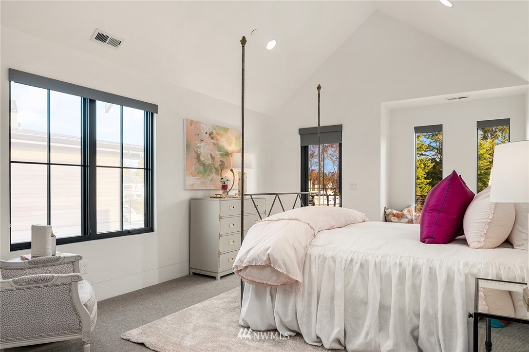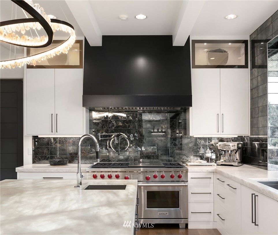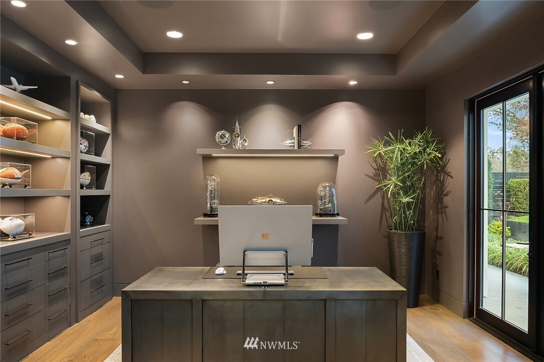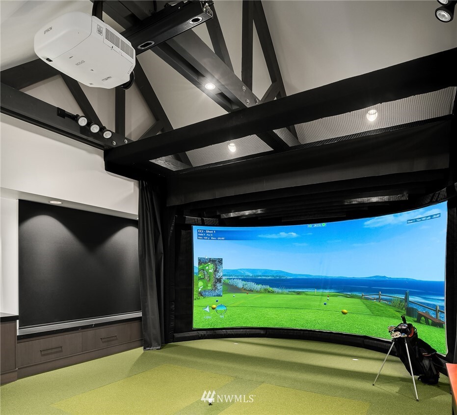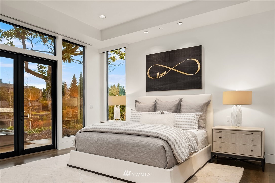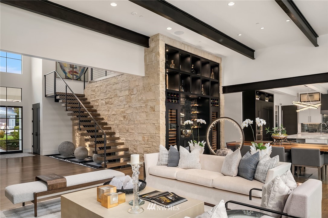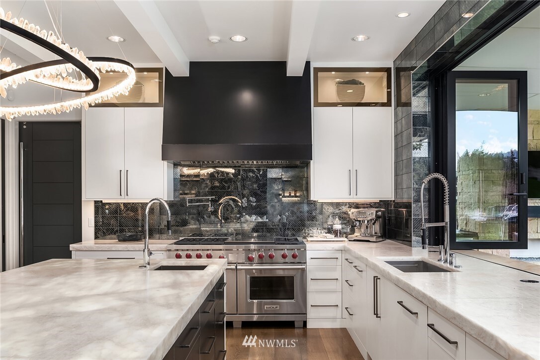 Spectacular custom-built waterfront home featuring incredible architectural details and elevated finishes. Grand pivot door entry opens to panoramic views of the water with great room and soaring ceilings. Luxury appointed chef’s kitchen featuring illuminated crystal island and hand-made tile backsplash. Elegant dining area accented with display and storage for wine collectors.Entire living space opens for indoor-outdoor entertaining on the water. Serene main-floor primary suite with fireplace, full spa bath, and dual-level dressing rooms. Upper decks facing the water. Media Room, state-of-the-art golf/game bonus room, exercise room and pet shower.Covered patio with fireplace and TV.Bulkhead finished in bamboo decking, rare on-lake moorage.