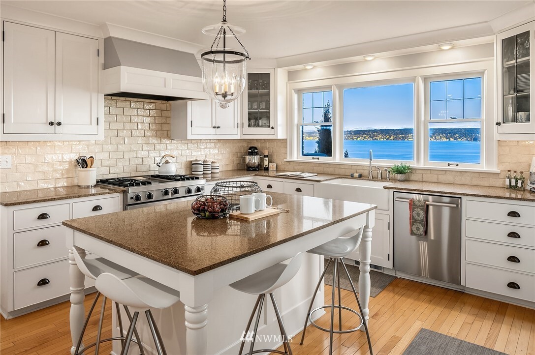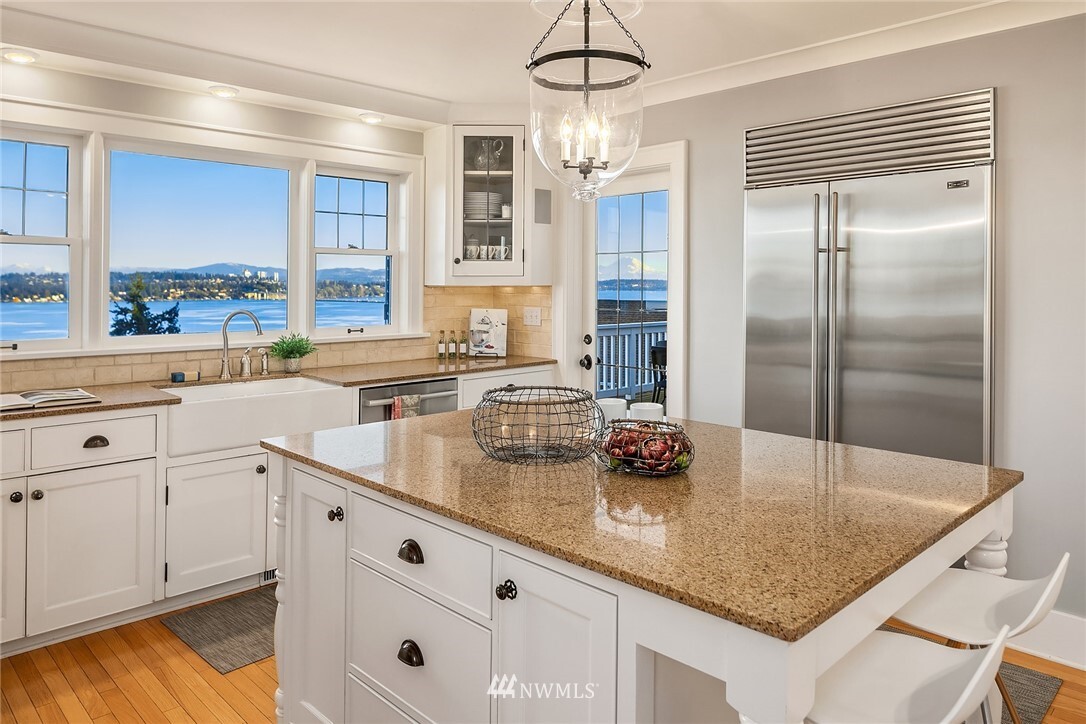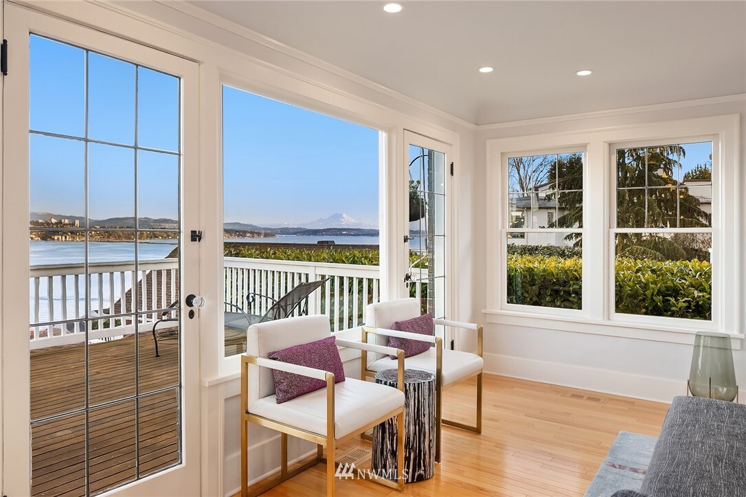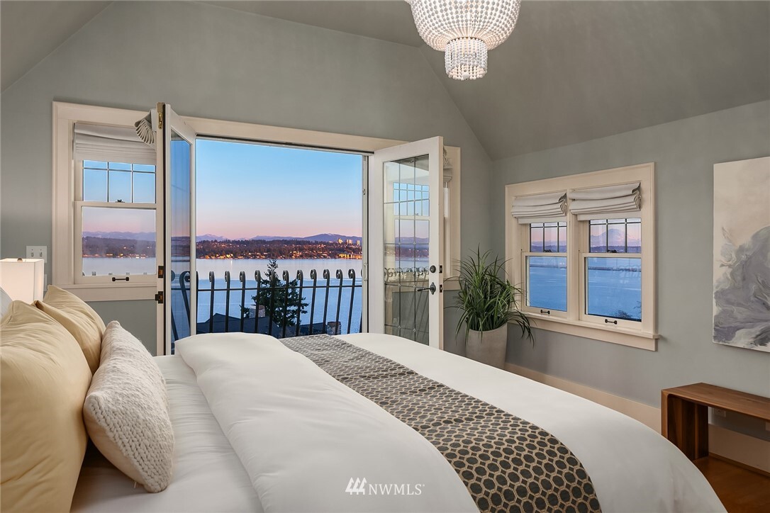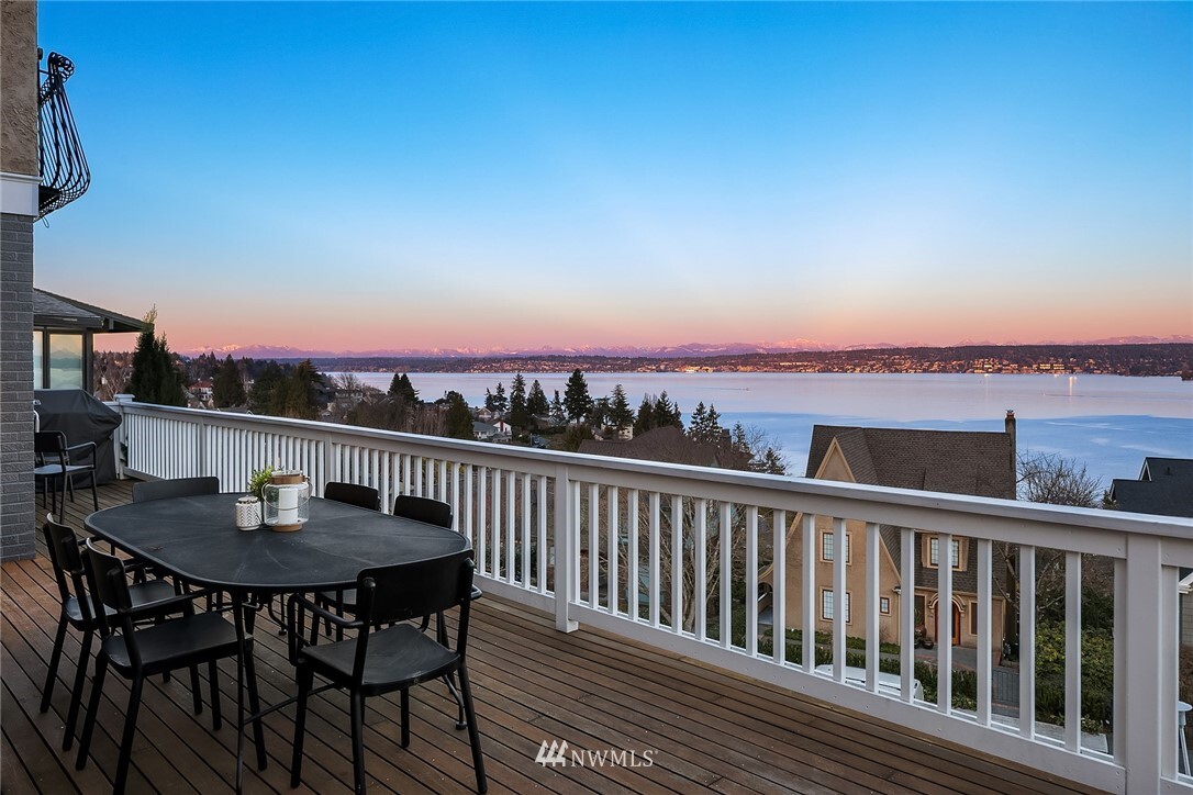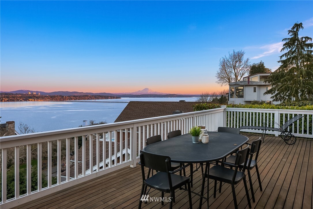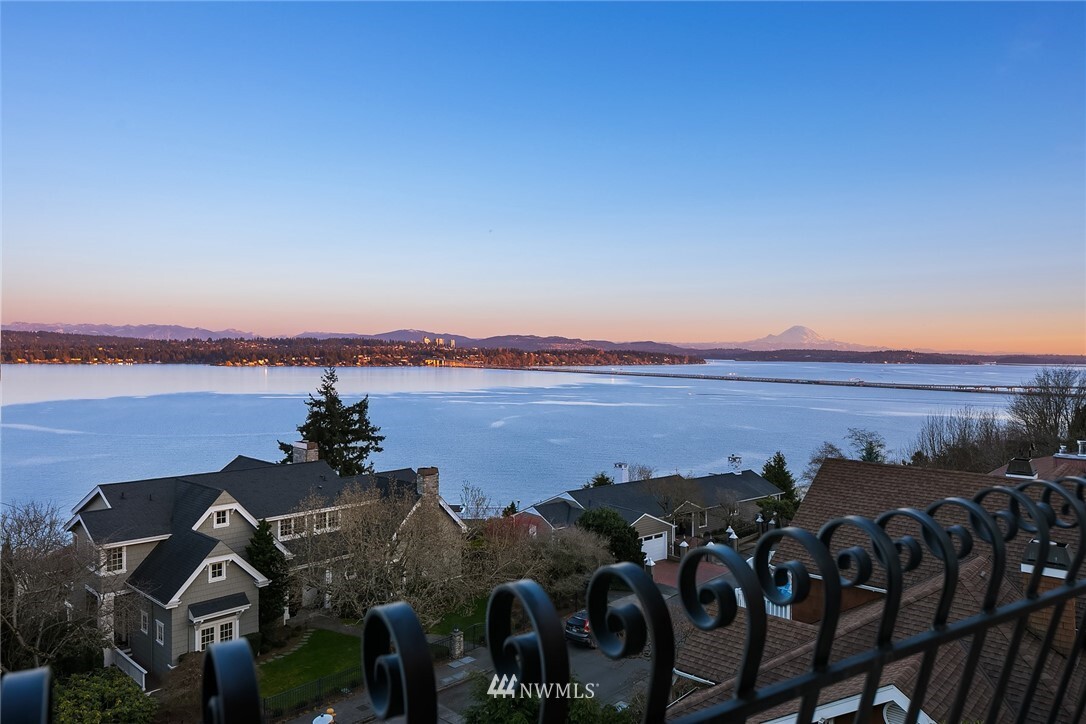 Show-stopping panoramic views of Lake Washington, the Cascades and Mt. Rainier envelop you the moment you step into this majestic home. Wonderfully updated for today's lifestyle while maintaining period details such as coved ceilings, leaded windows and built-ins. The spacious, modern kitchen with granite counters and high-end appliances is the command center of the home. Formal LR and DR lead out to the generous entertainment-sized deck -- the perfect place to enjoy glorious sunrises and peaceful purple sunsets. Primary suite with walk-in closets, vaulted ceiling, Juliet balcony and bathtub with quite a view! Lower level media room, add'l bedroom, office and well-appointed exercise room. Beach Club eligible & VRSTC membership available.