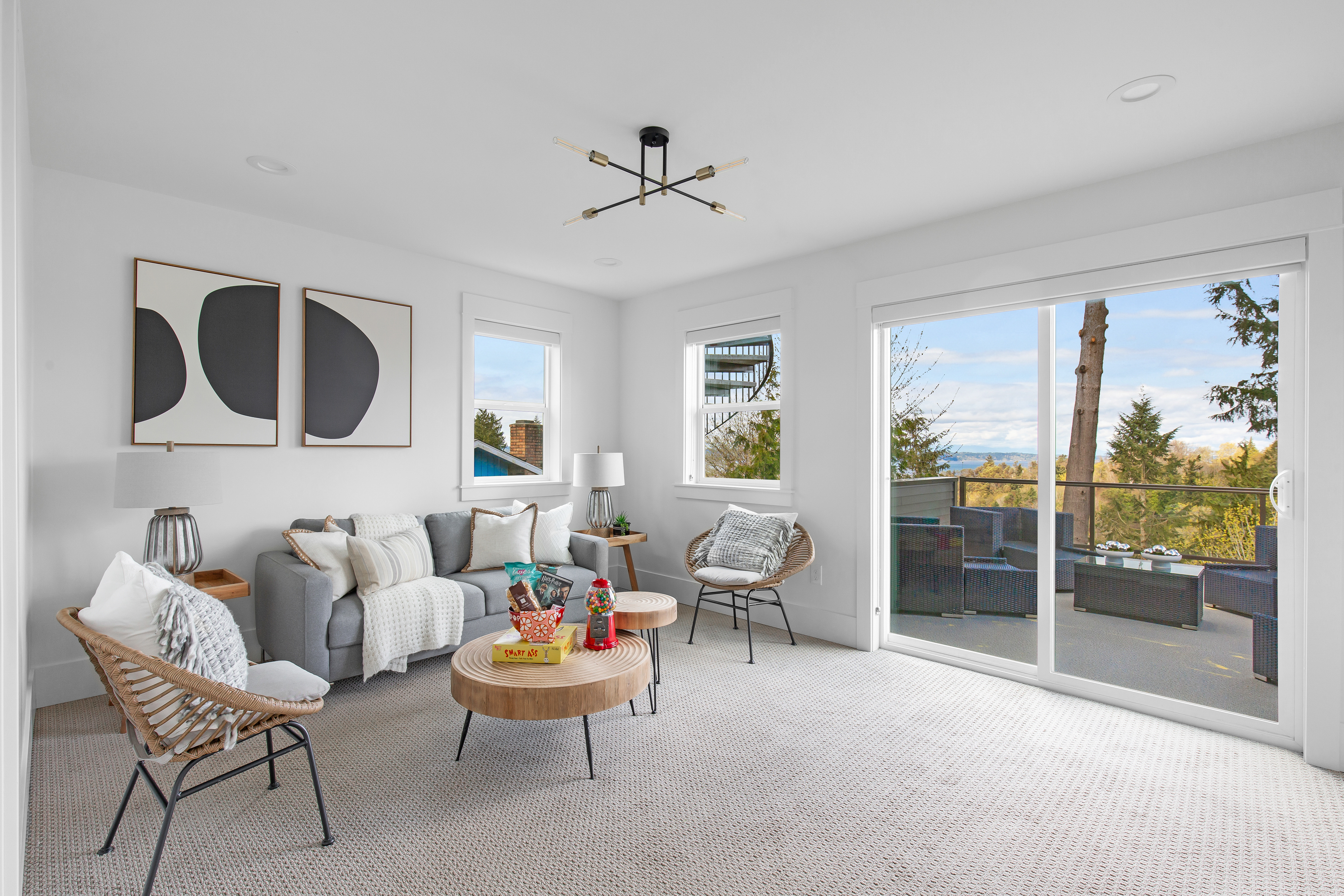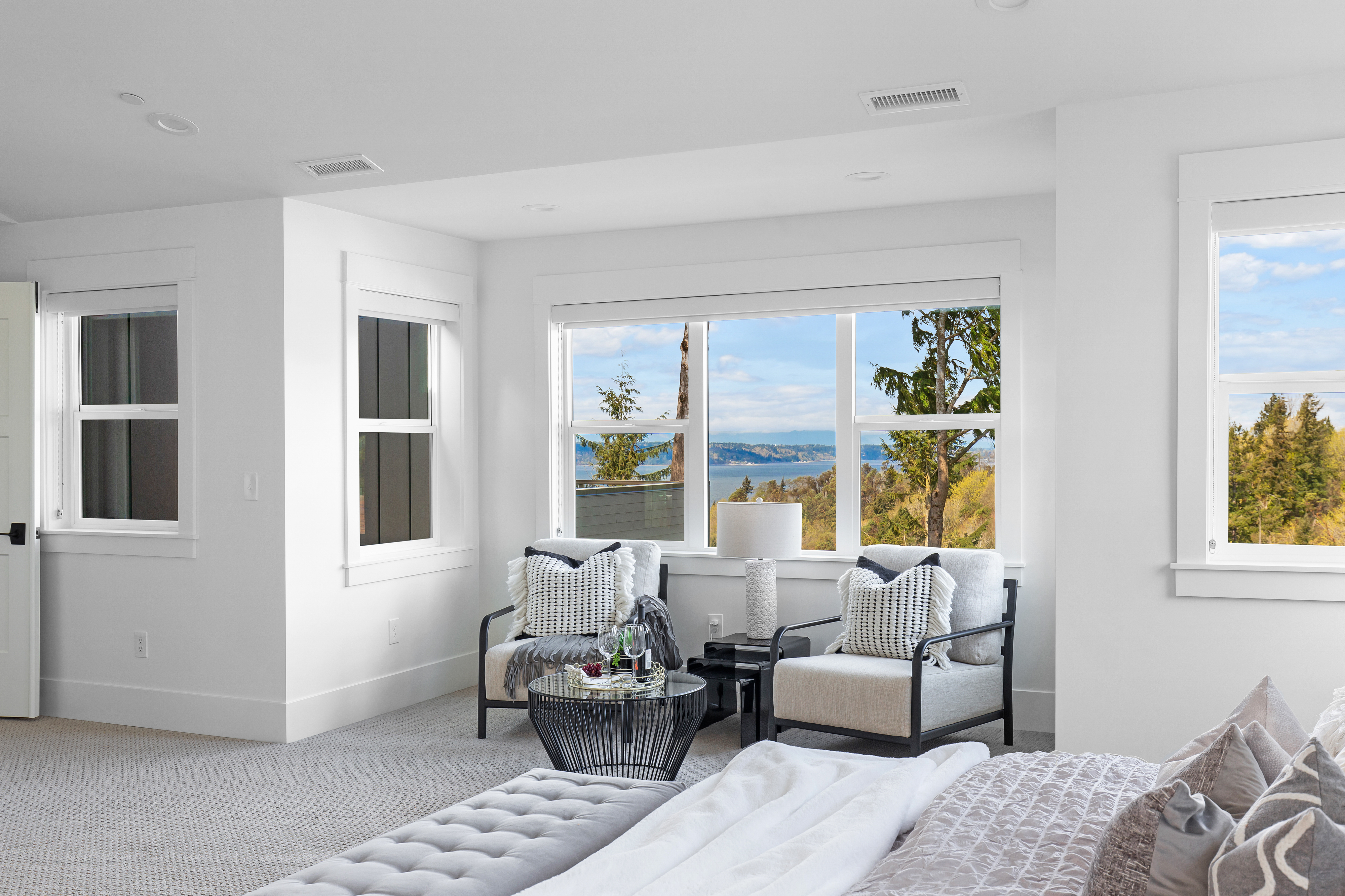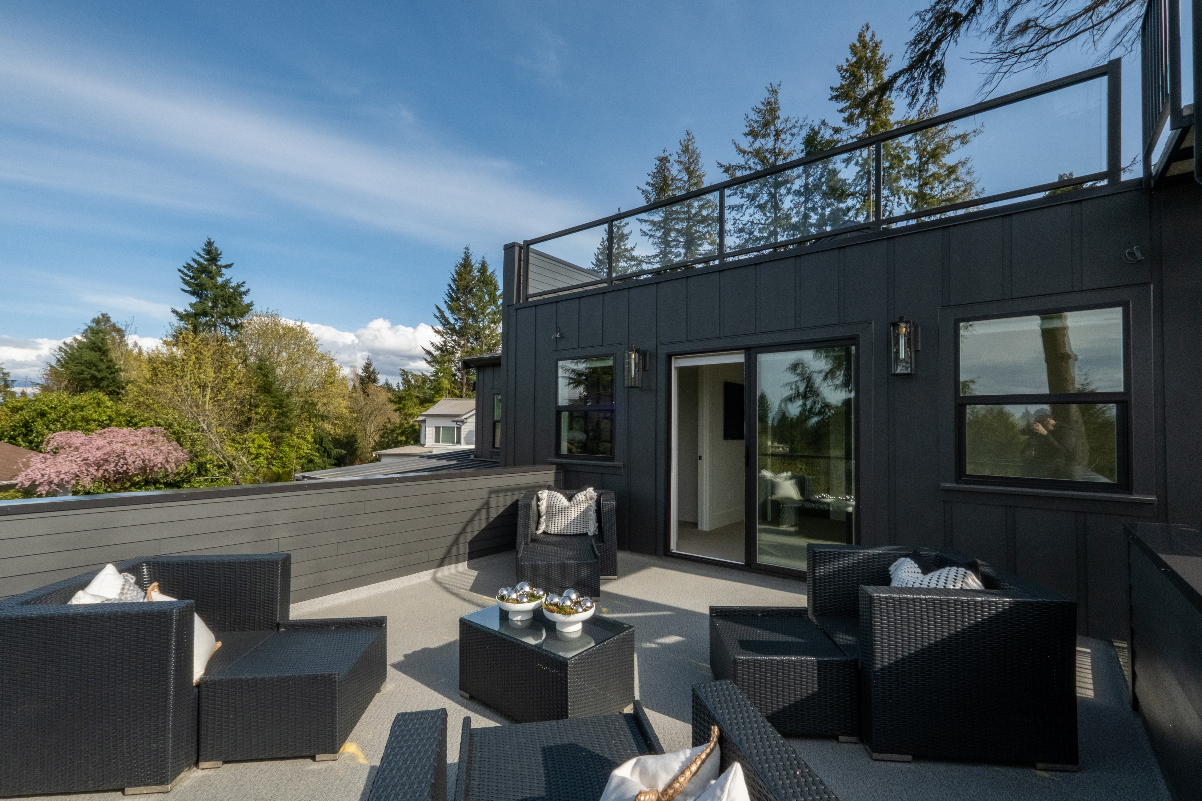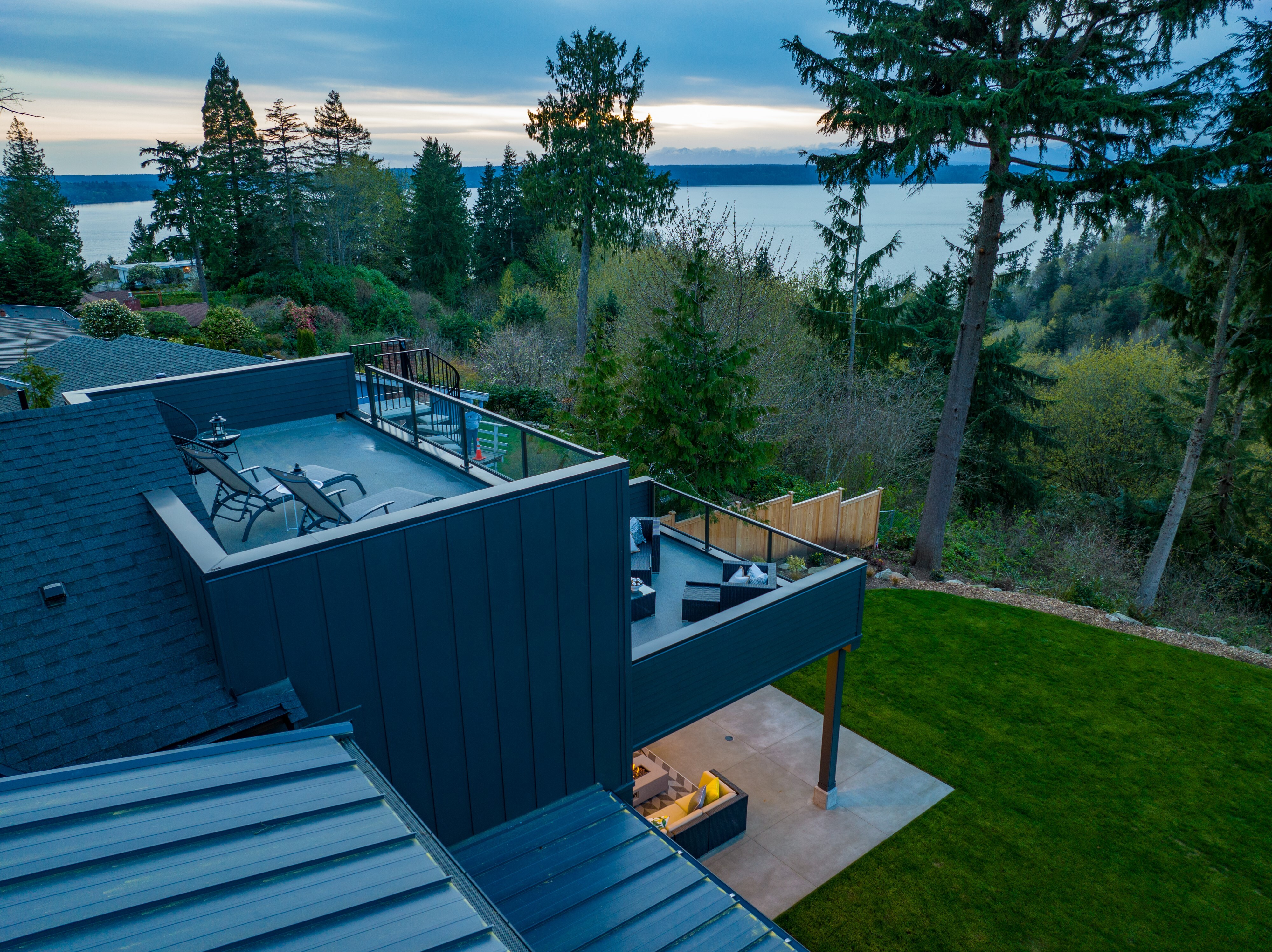 Rare, bluff Normandy Park new construction. Anchored on the local highest point & overlooking wide views, this boutique masterpiece blends clean aesthetics & modern functionality. 4636 square feet designed for comfort & beauty. 2 levels of luminous & open rooms naturally flowing into striking outdoor living areas: patio, sun deck, rooftop deck & beautiful-textured grounds. The striking chef’s kitchen, true heart of the home, offers the ideal “eat, mingle & work” area w/ its abundant counterspace & cabinetry, double dishwashers, recycle centers & ovens and separate walk-in pantry. Enjoy easy living with aging-in-place function: elevator-ready, main level ensuite & 880sqft ADU. Smart Home design. Waterfront qualities with Lot A beach rights.