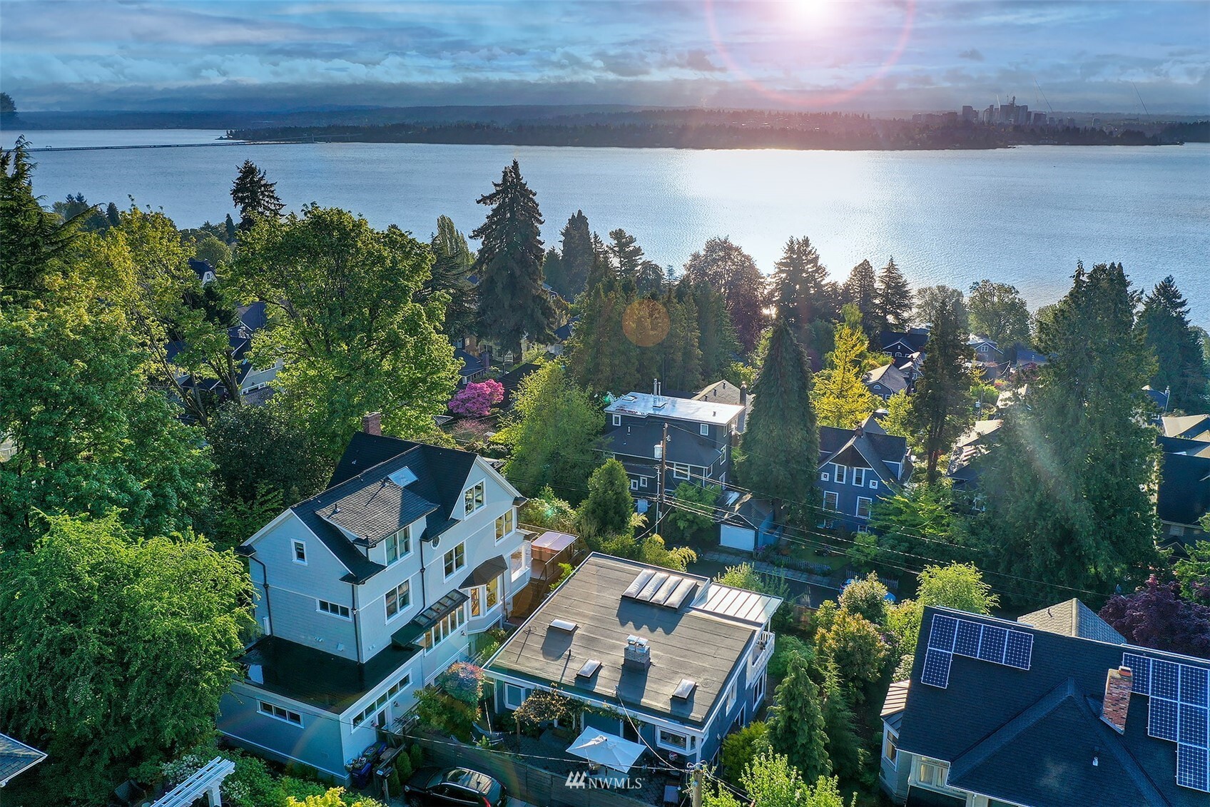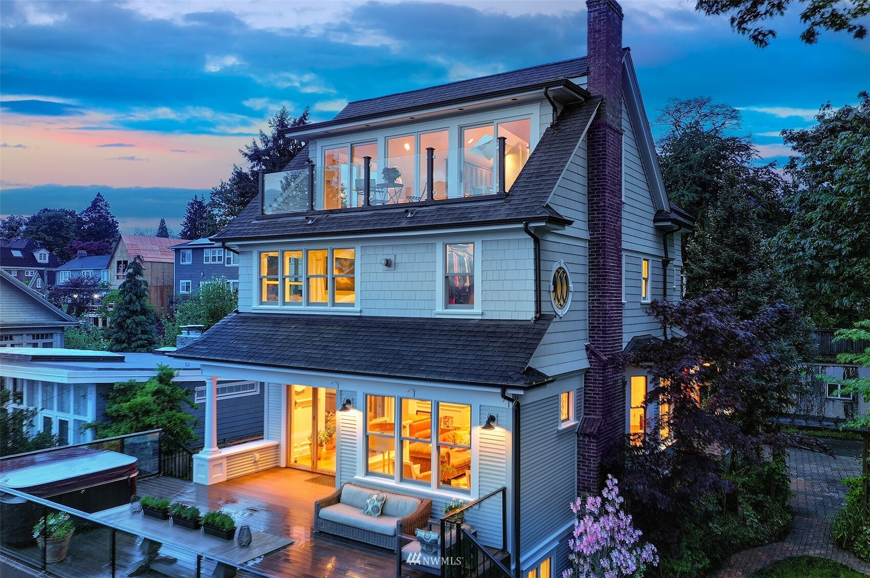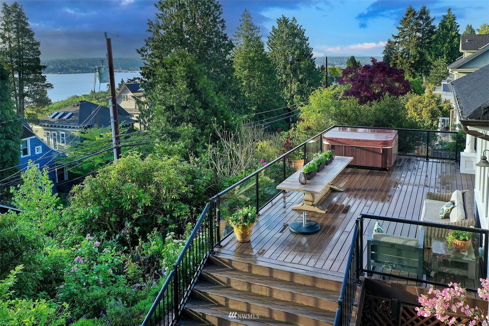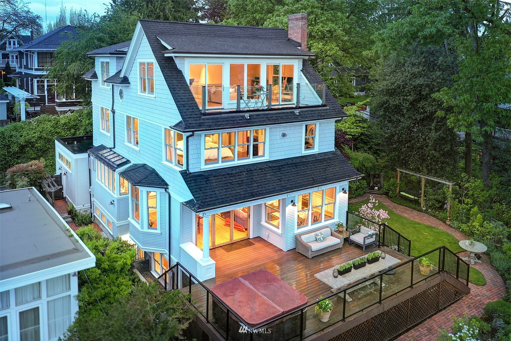 Feel the hush as you approach this stately Madrona Craftsman perfectly set on a private, corner lot embracing expansive lake and mountain vistas. In 2009 the home was re-envisioned and restored to impeccable standards with a quiet color palette, luxe finishes and modern floorplan allowing the views and your company to be center stage. Spread across 4 floors there is space for all to enjoy Mt. Rainier views and tranquility from every level. Top floor family room with balcony, kitchenette, bedroom & bath. The lower level with separate entrance is the perfect space to WFH, nanny or guest quarters. Madrona village has it all ~ stop at the winery or any of the superb restaurants and dine alfresco in your English garden. Relax, you’re Home!