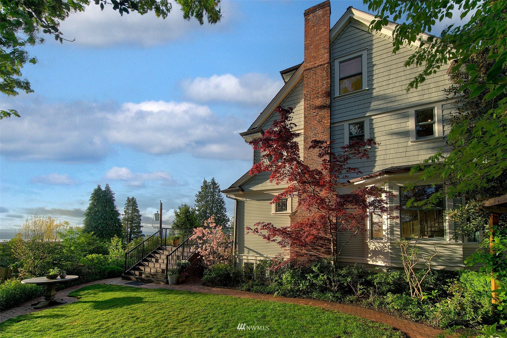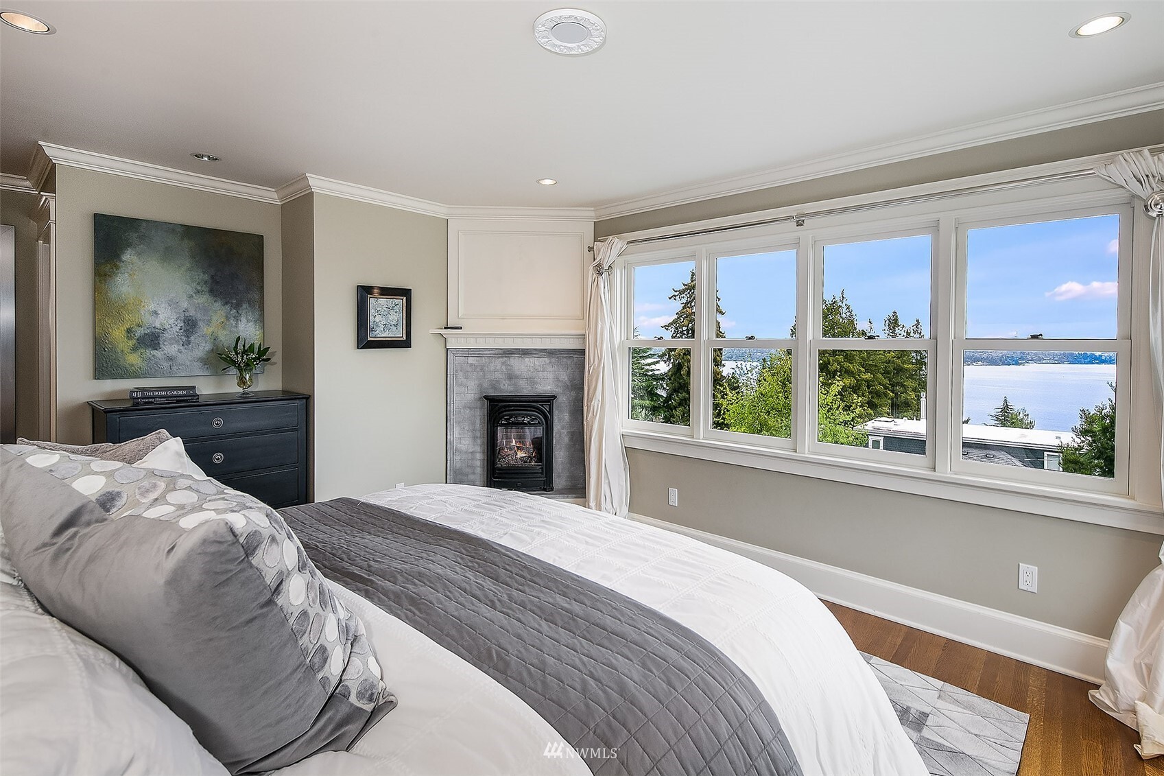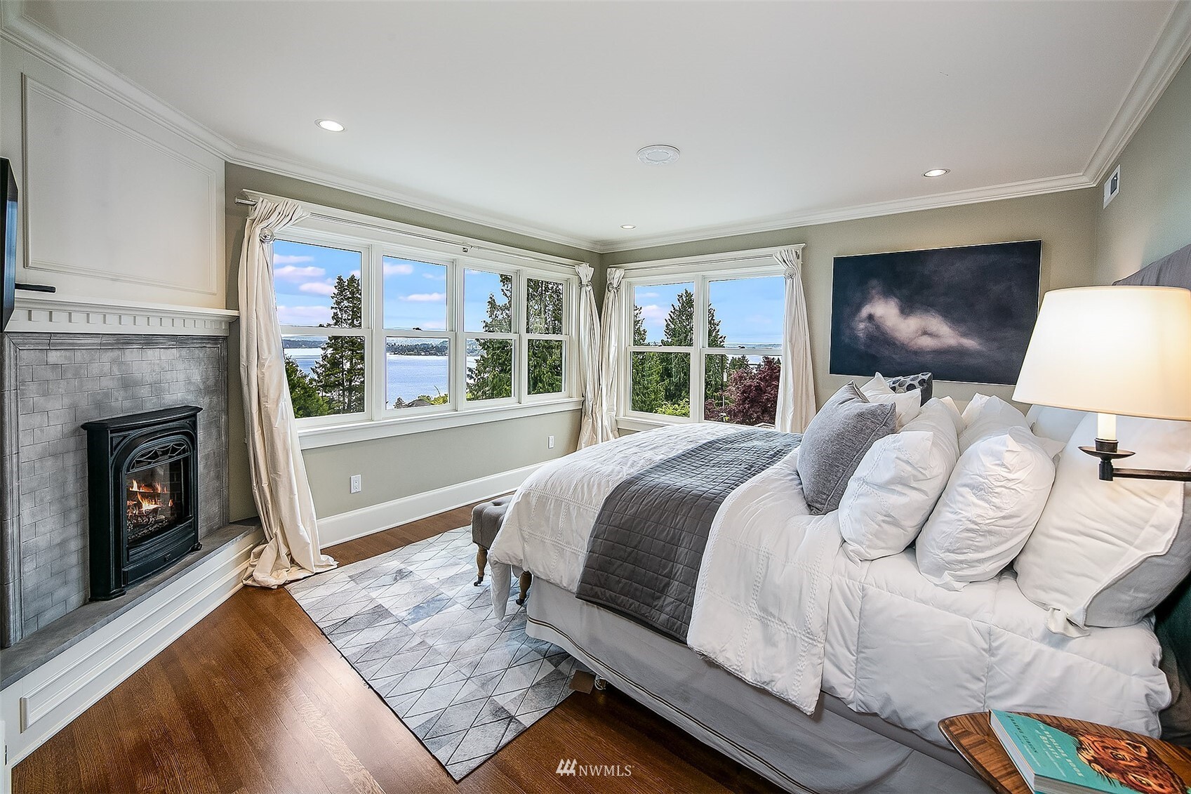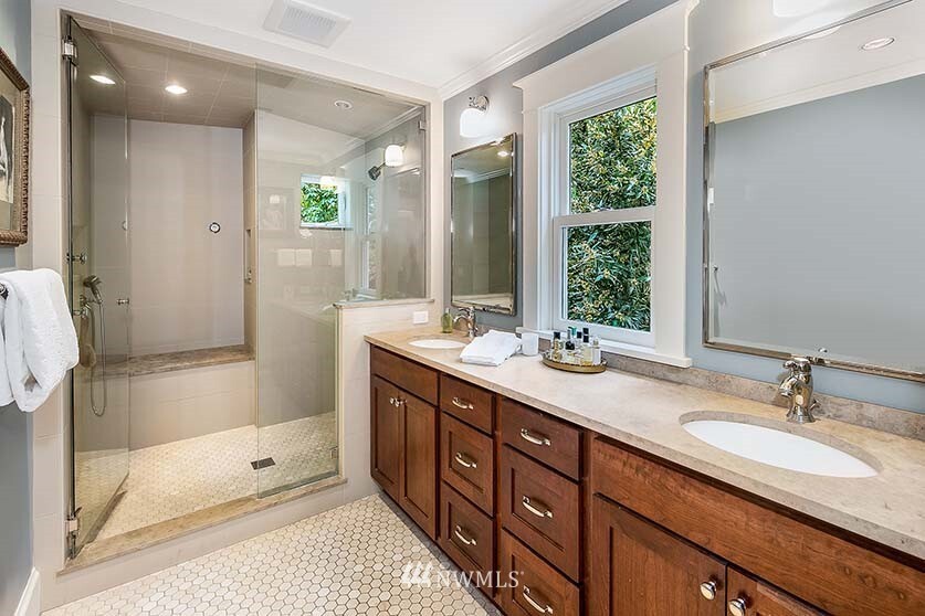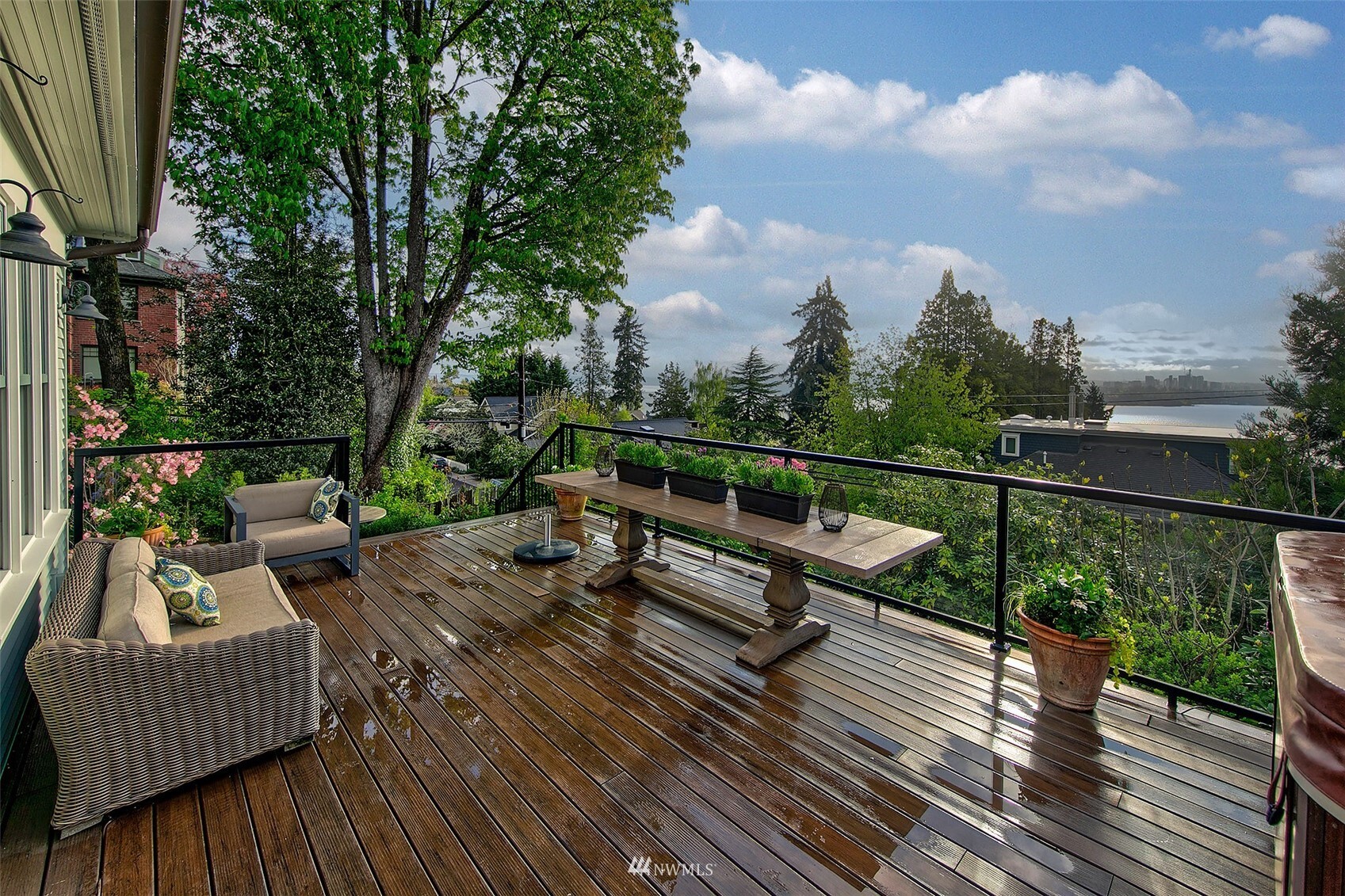 Feel the hush as you approach this stately Madrona Craftsman perfectly set on a private, corner lot embracing expansive lake and mountain vistas. In 2009 the home was re-envisioned and restored to impeccable standards with a quiet color palette, luxe finishes and modern floorplan allowing the views and your company to be center stage. Spread across 4 floors there is space for all to enjoy Mt. Rainier views and tranquility from every level. Top floor family room with balcony, kitchenette, bedroom & bath. The lower level with separate entrance is the perfect space to WFH, nanny or guest quarters. Madrona village has it all ~ stop at the winery or any of the superb restaurants and dine alfresco in your English garden. Relax, you’re Home!