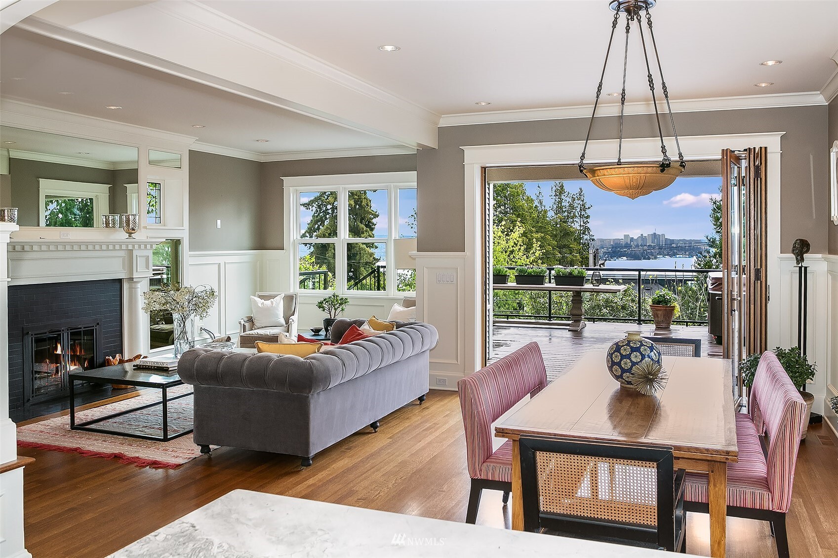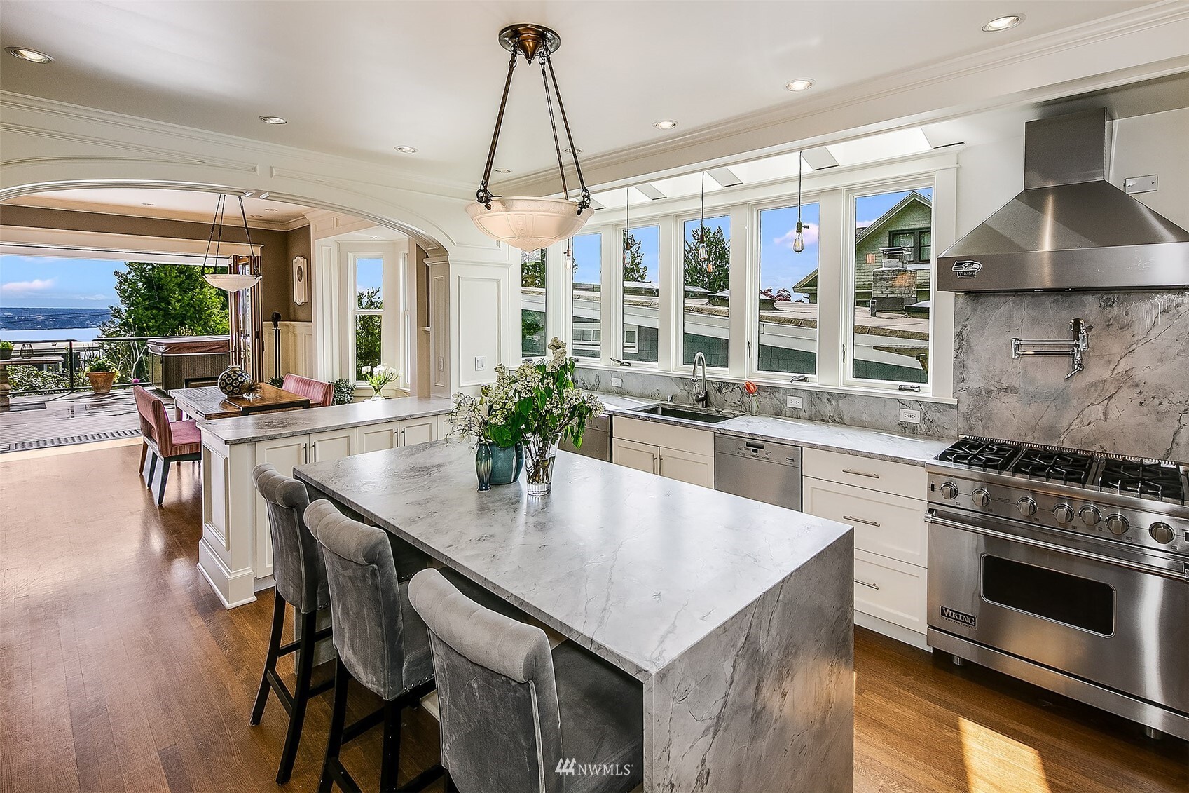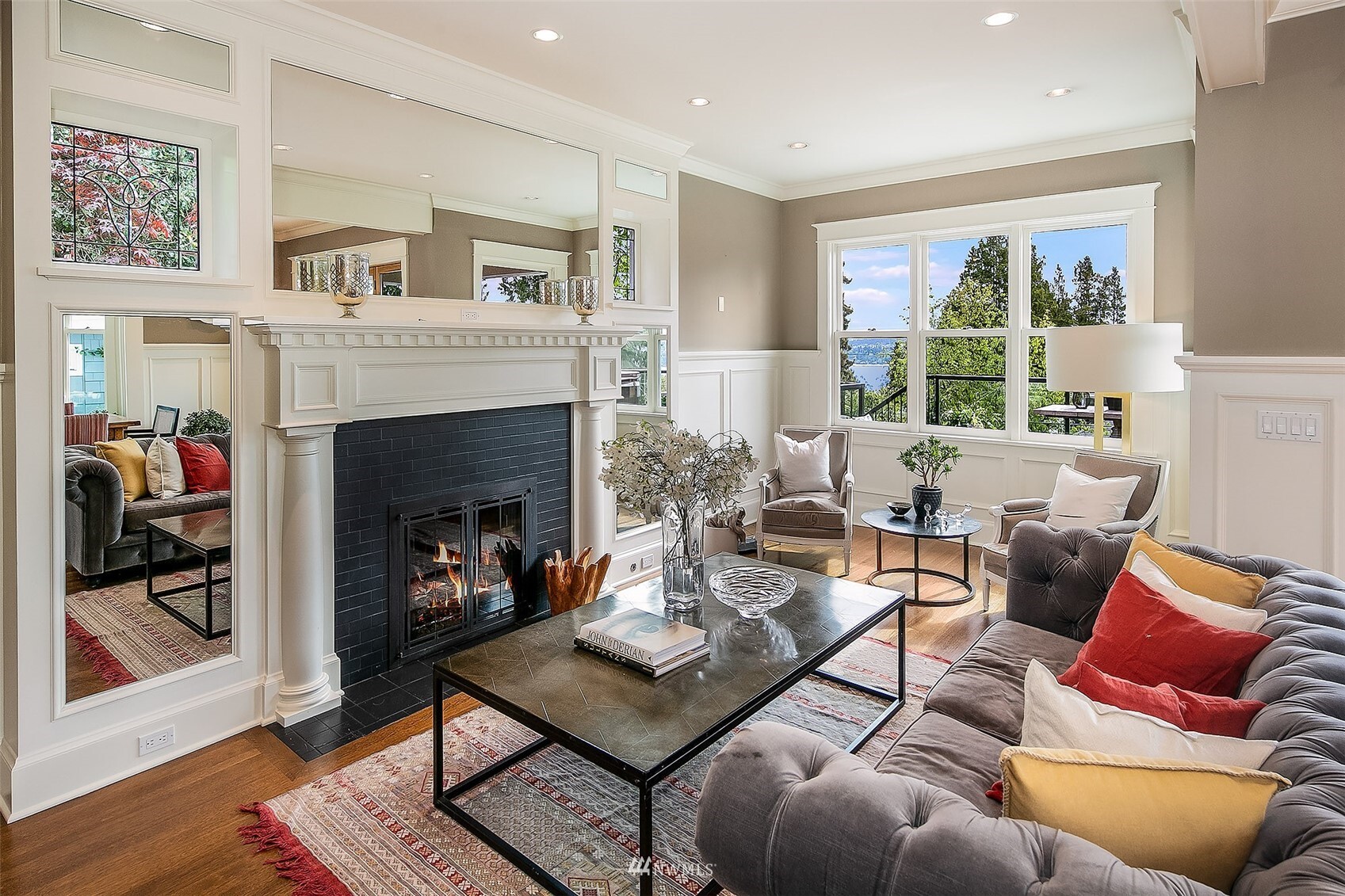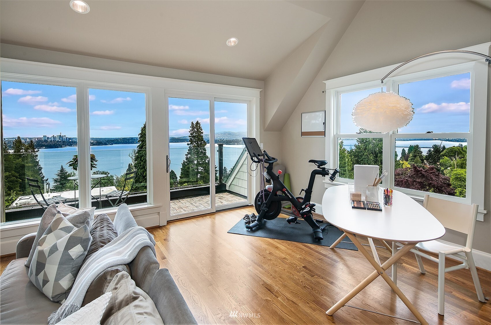 Feel the hush as you approach this stately Madrona Craftsman perfectly set on a private, corner lot embracing expansive lake and mountain vistas. In 2009 the home was re-envisioned and restored to impeccable standards with a quiet color palette, luxe finishes and modern floorplan allowing the views and your company to be center stage. Spread across 4 floors there is space for all to enjoy Mt. Rainier views and tranquility from every level. Top floor family room with balcony, kitchenette, bedroom & bath. The lower level with separate entrance is the perfect space to WFH, nanny or guest quarters. Madrona village has it all ~ stop at the winery or any of the superb restaurants and dine alfresco in your English garden. Relax, you’re Home!