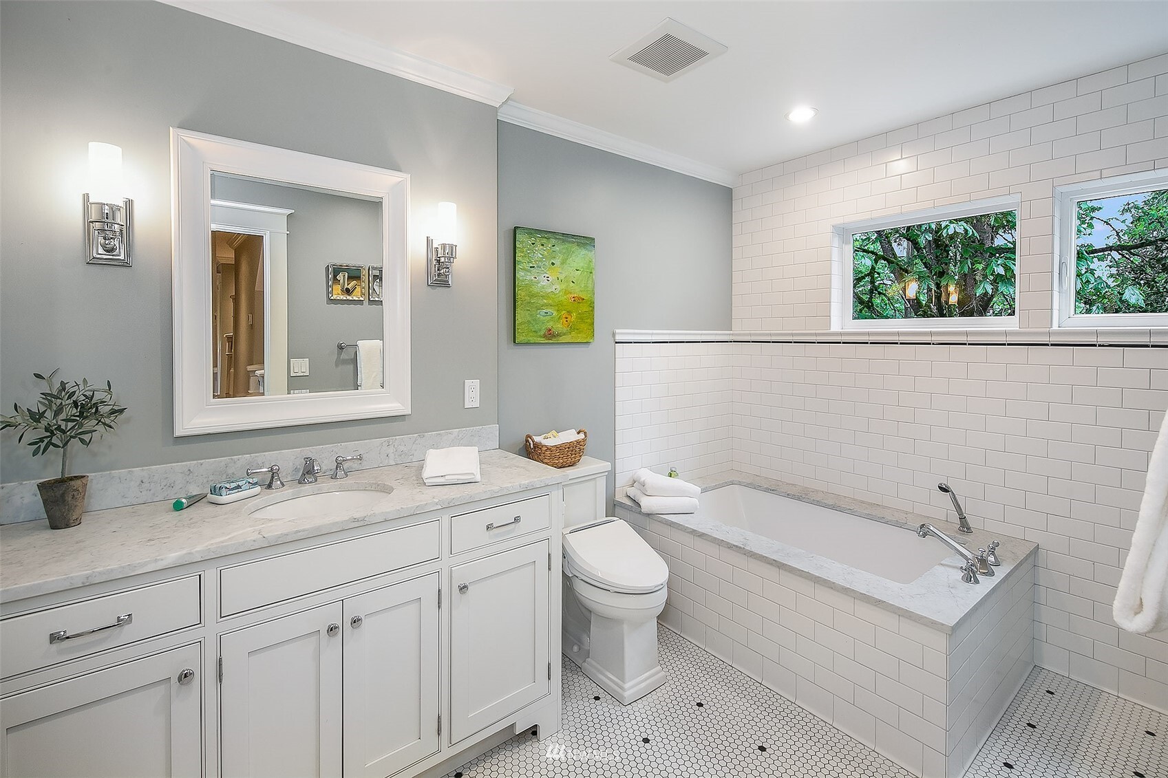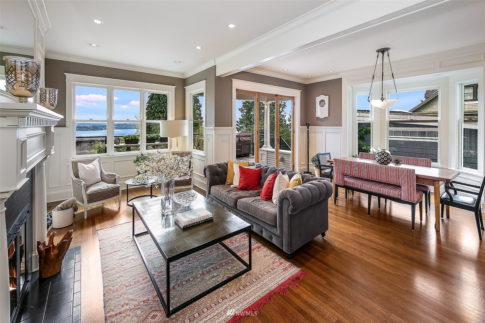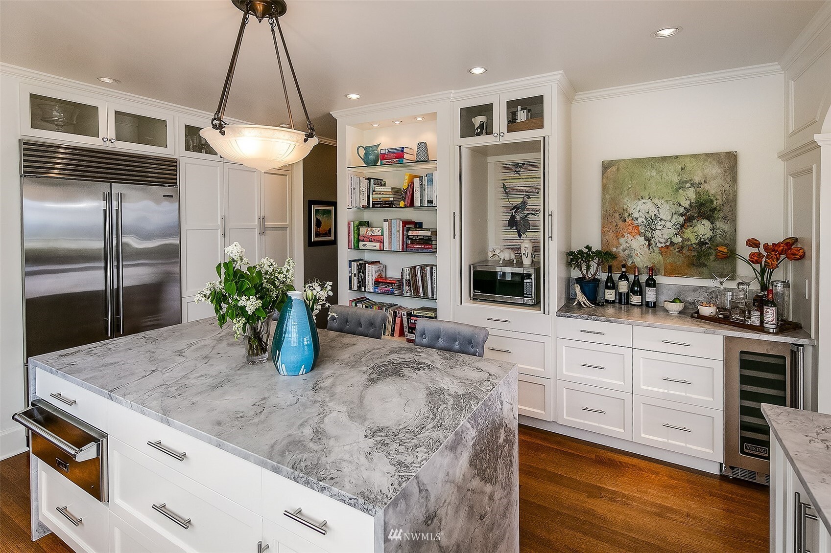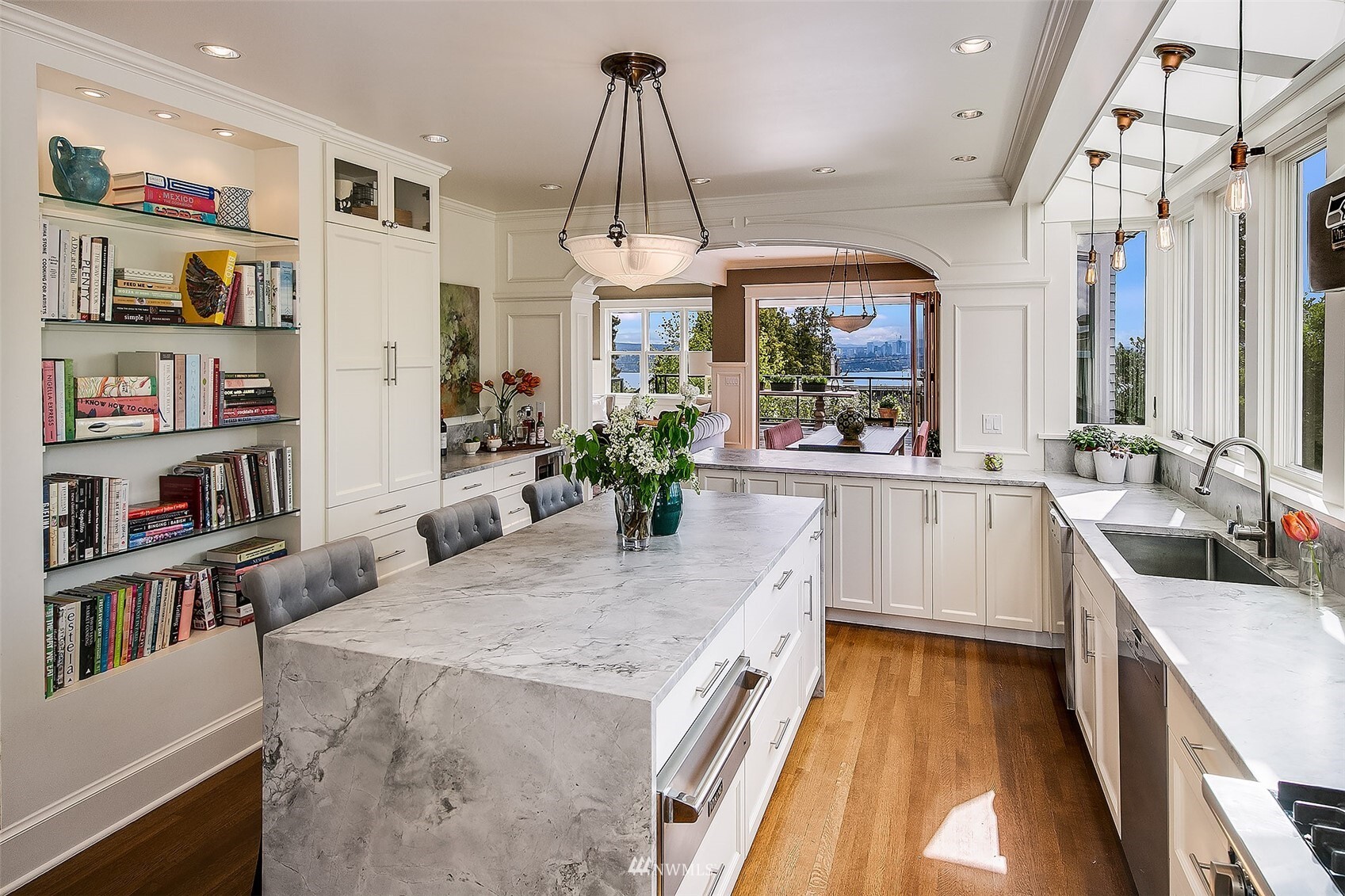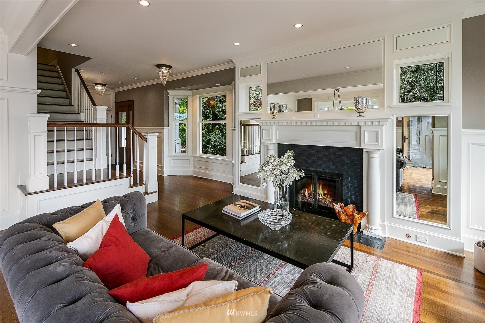Feel the hush as you approach this stately Madrona Craftsman perfectly set on a private, corner lot embracing expansive lake and mountain vistas. In 2009 the home was re-envisioned and restored to impeccable standards with a quiet color palette, luxe finishes and modern floorplan allowing the views and your company to be center stage. Spread across 4 floors there is space for all to enjoy Mt. Rainier views and tranquility from every level. Top floor family room with balcony, kitchenette, bedroom & bath. The lower level with separate entrance is the perfect space to WFH, nanny or guest quarters. Madrona village has it all ~ stop at the winery or any of the superb restaurants and dine alfresco in your English garden. Relax, you’re Home!
