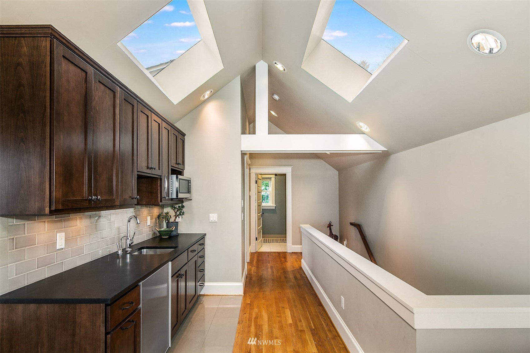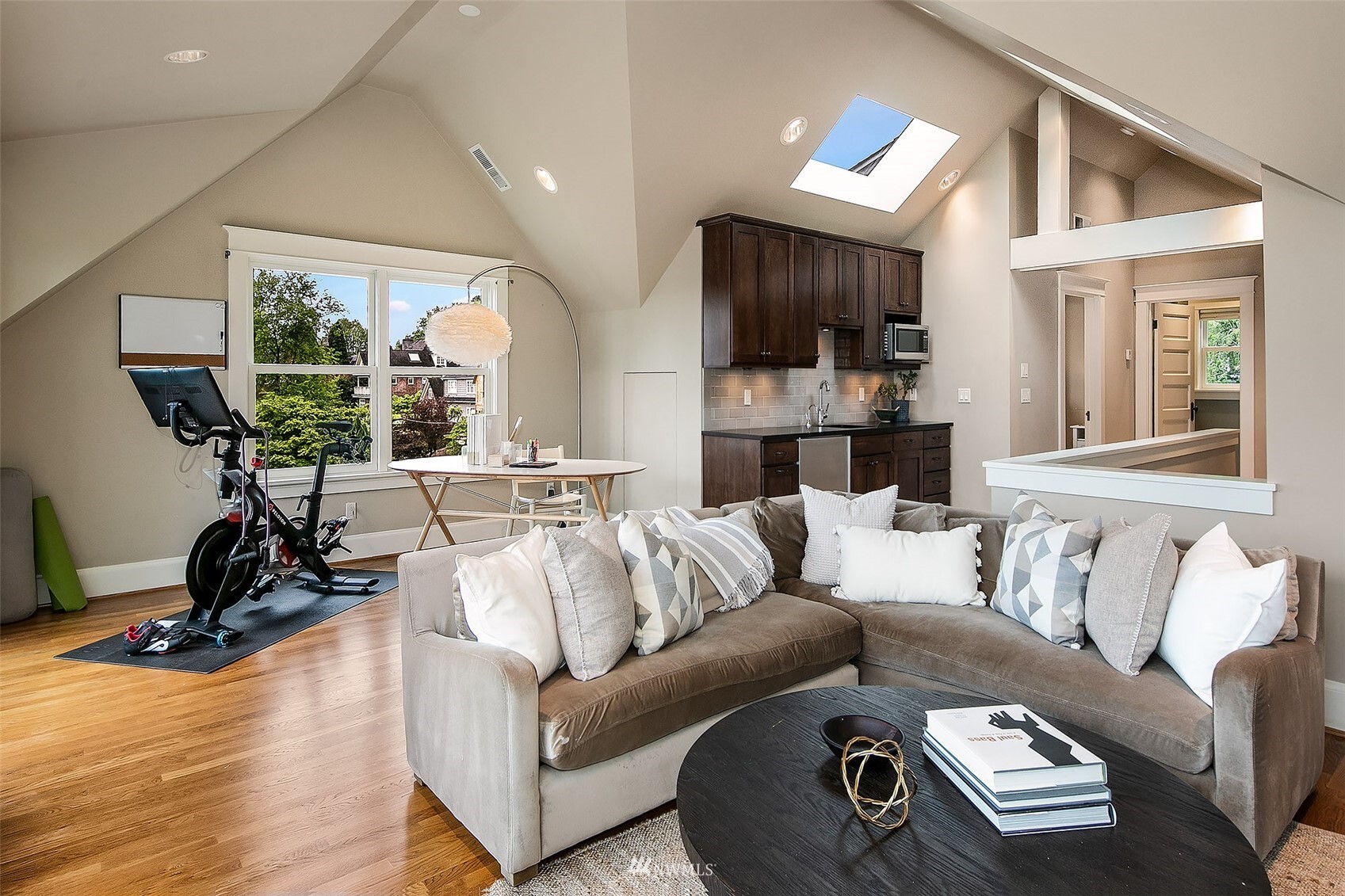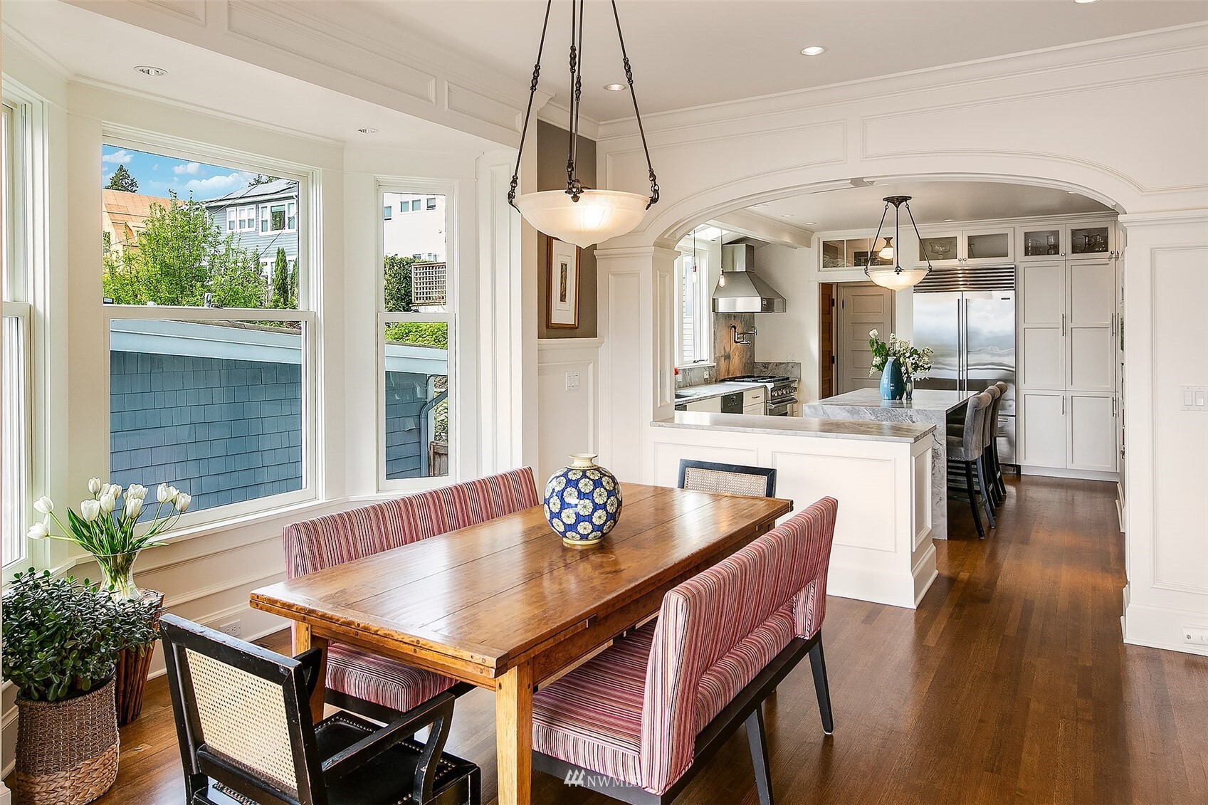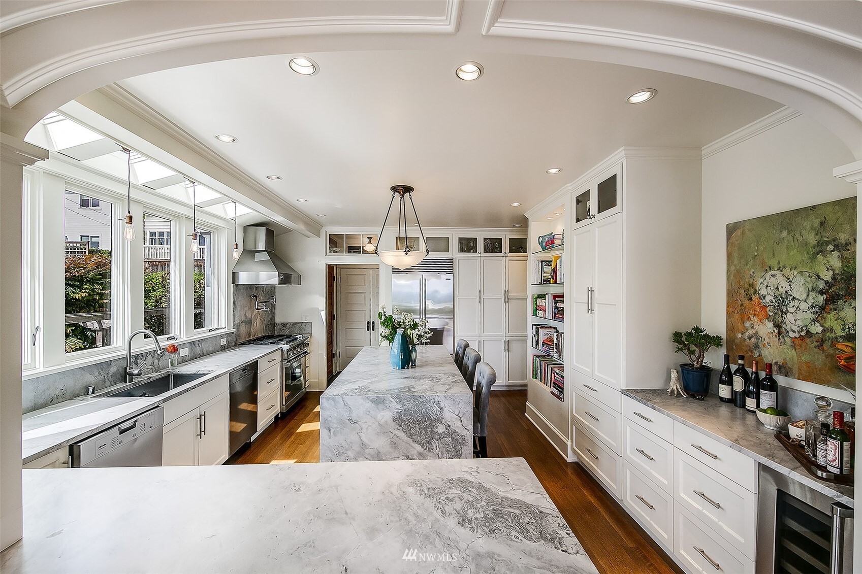 Feel the hush as you approach this stately Madrona Craftsman perfectly set on a private, corner lot embracing expansive lake and mountain vistas. In 2009 the home was re-envisioned and restored to impeccable standards with a quiet color palette, luxe finishes and modern floorplan allowing the views and your company to be center stage. Spread across 4 floors there is space for all to enjoy Mt. Rainier views and tranquility from every level. Top floor family room with balcony, kitchenette, bedroom & bath. The lower level with separate entrance is the perfect space to WFH, nanny or guest quarters. Madrona village has it all ~ stop at the winery or any of the superb restaurants and dine alfresco in your English garden. Relax, you’re Home!