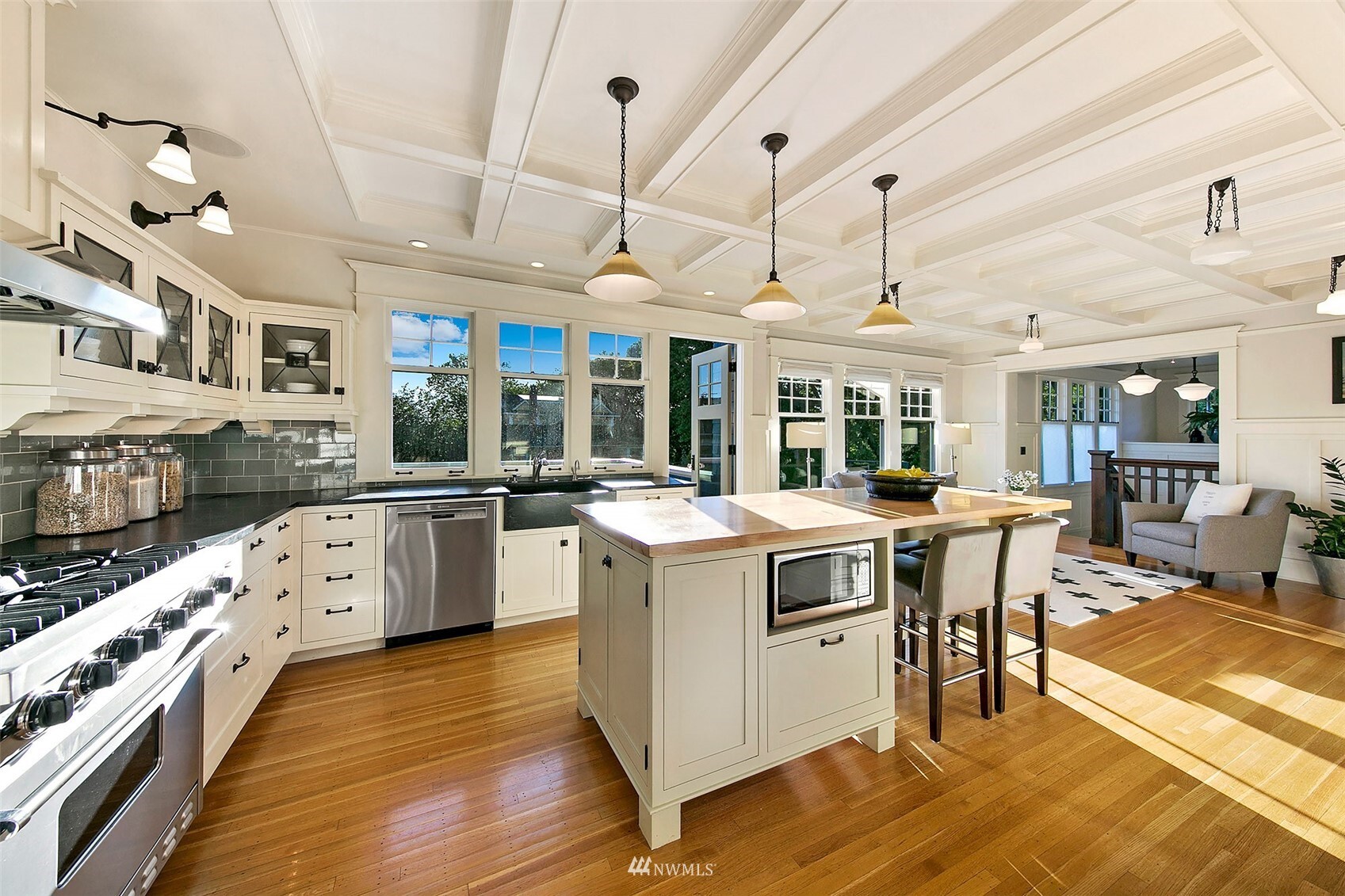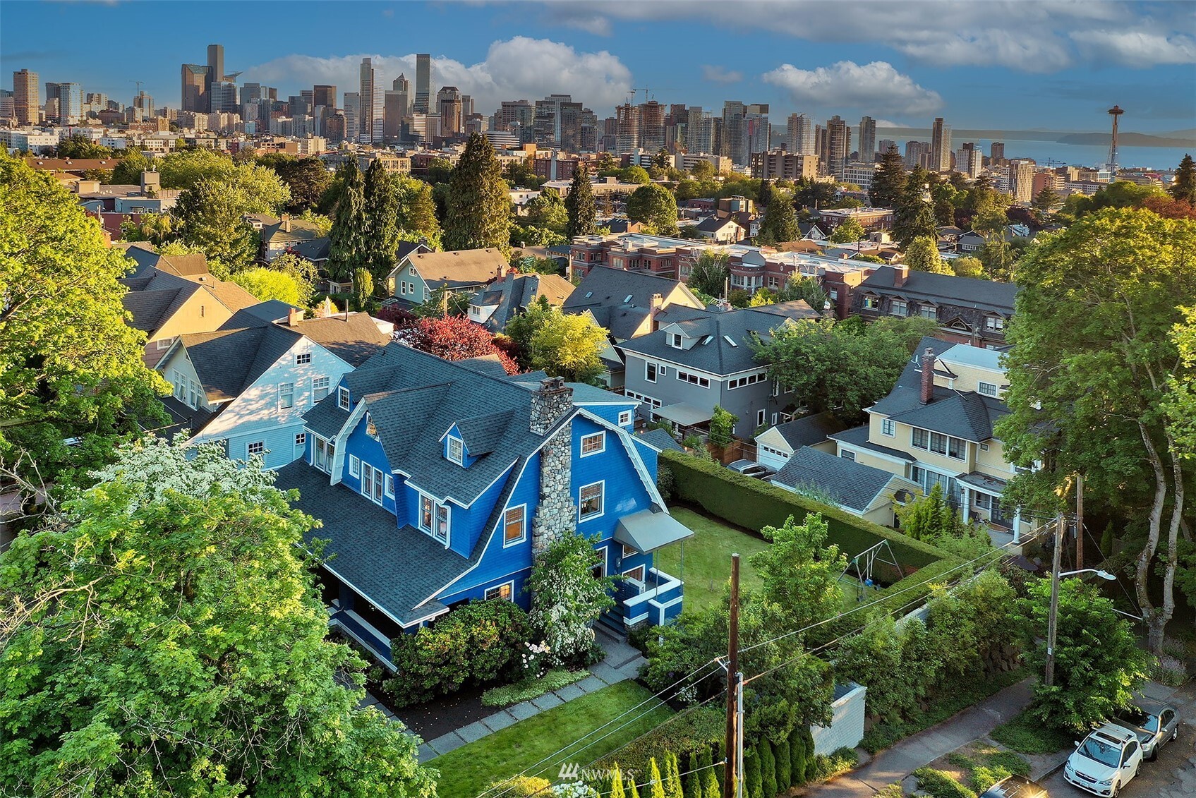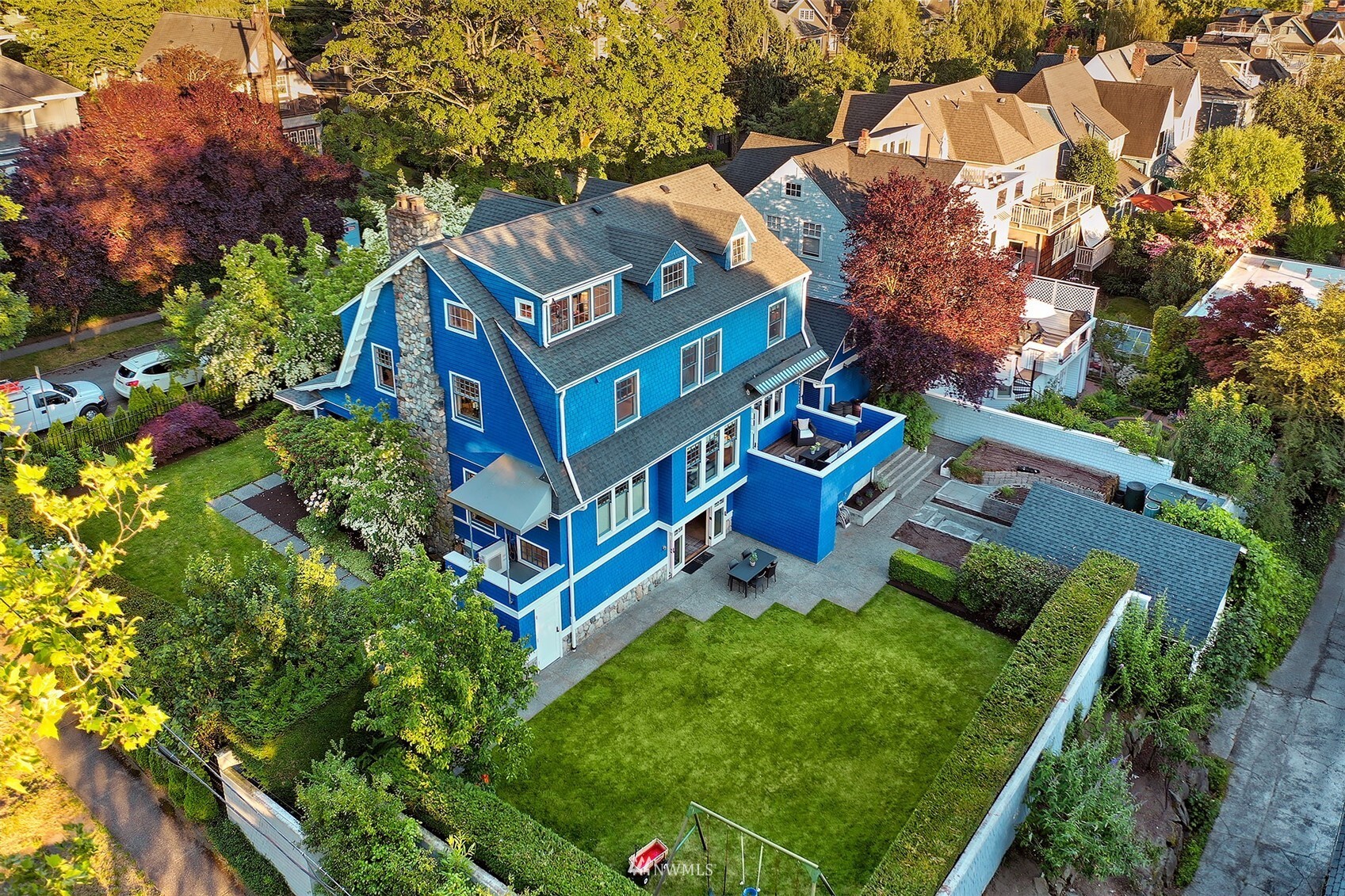 Private, spacious and perfectly positioned in the heart of Seattle. On a stately corner lot nearly ¼ acre in size sits this unique, updated 1906 Dutch colonial. Meticulously maintained original details blend elegantly with modern aesthetic. The sun-drenched award-winning open plan chef’s kitchen is the heart of the home, a natural gathering place with heated wood floors, built-ins, patio, all overlooking the impressive, hedged backyard and gardens. The contemporary downstairs features polished heated concrete floors, shiplap walls, live-edge curly maple counters and full kitchen perfect for indoor/outdoor living. Upper levels host 4 bedrooms, 2 baths, office and massive playroom. 2 separate garages. This turn-key urban oasis beckons!