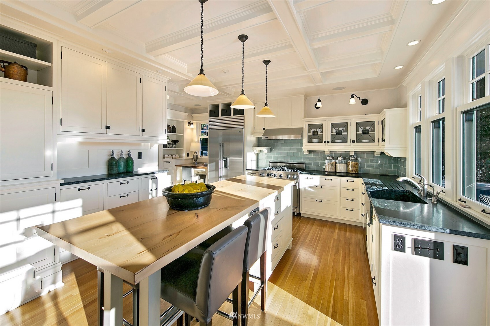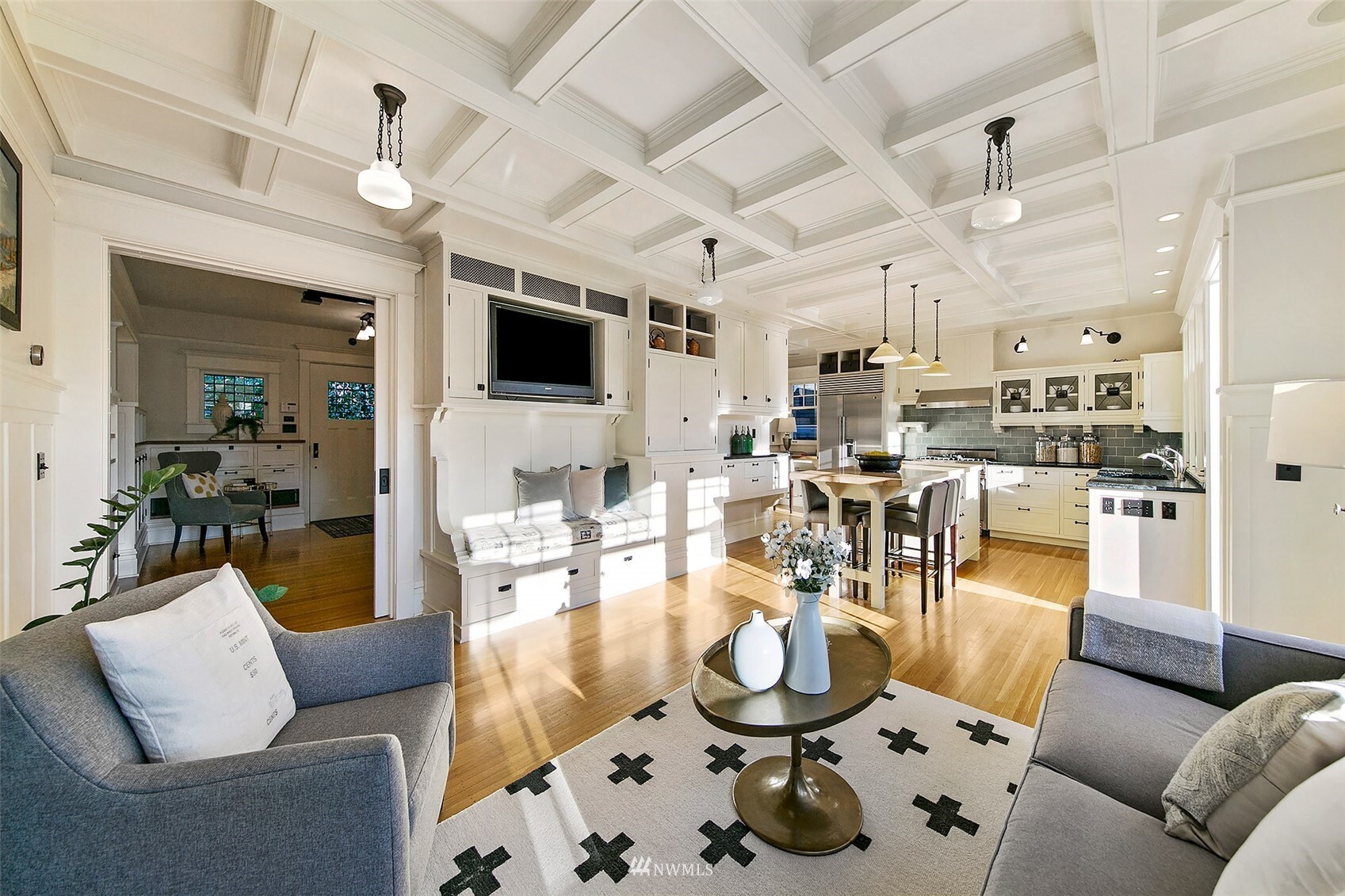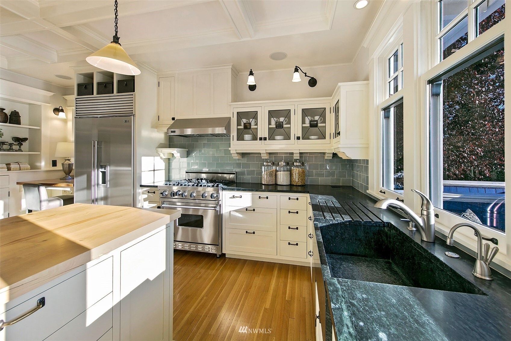Private, spacious and perfectly positioned in the heart of Seattle. On a stately corner lot nearly ¼ acre in size sits this unique, updated 1906 Dutch colonial. Meticulously maintained original details blend elegantly with modern aesthetic. The sun-drenched award-winning open plan chef’s kitchen is the heart of the home, a natural gathering place with heated wood floors, built-ins, patio, all overlooking the impressive, hedged backyard and gardens. The contemporary downstairs features polished heated concrete floors, shiplap walls, live-edge curly maple counters and full kitchen perfect for indoor/outdoor living. Upper levels host 4 bedrooms, 2 baths, office and massive playroom. 2 separate garages. This turn-key urban oasis beckons!