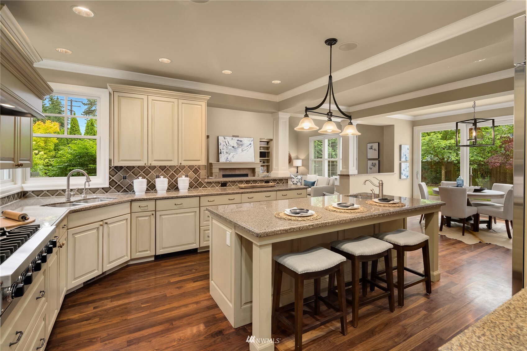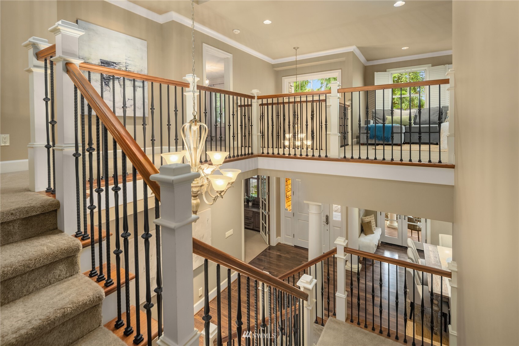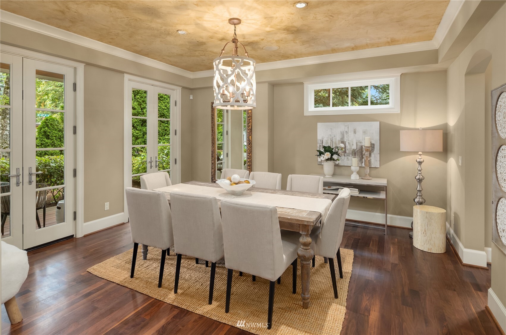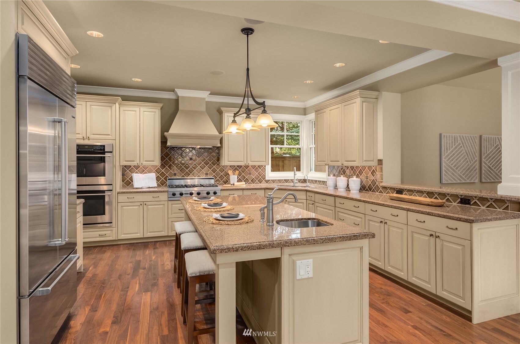 Stunning, traditional custom home built by well-known luxury builder, Beckes Homes. Vaulted ceilings, french doors, and gleaming hardwood floors. Chef's kitchen with large center island. Center island seating and casual dining. Sliding door opens to the patio, outdoor fire pit and big, level backyard. Formal dining room with two sets of french doors open to a charming deck. Main level Guest Room or Office with attached 3/4 Bath. Expansive primary bedroom with ensuite bathroom and large walk in closet. 3 more spacious bedrooms, 2 bathrooms and bonus flex space complete the second floor. Three car attached garage with plenty of storage.
