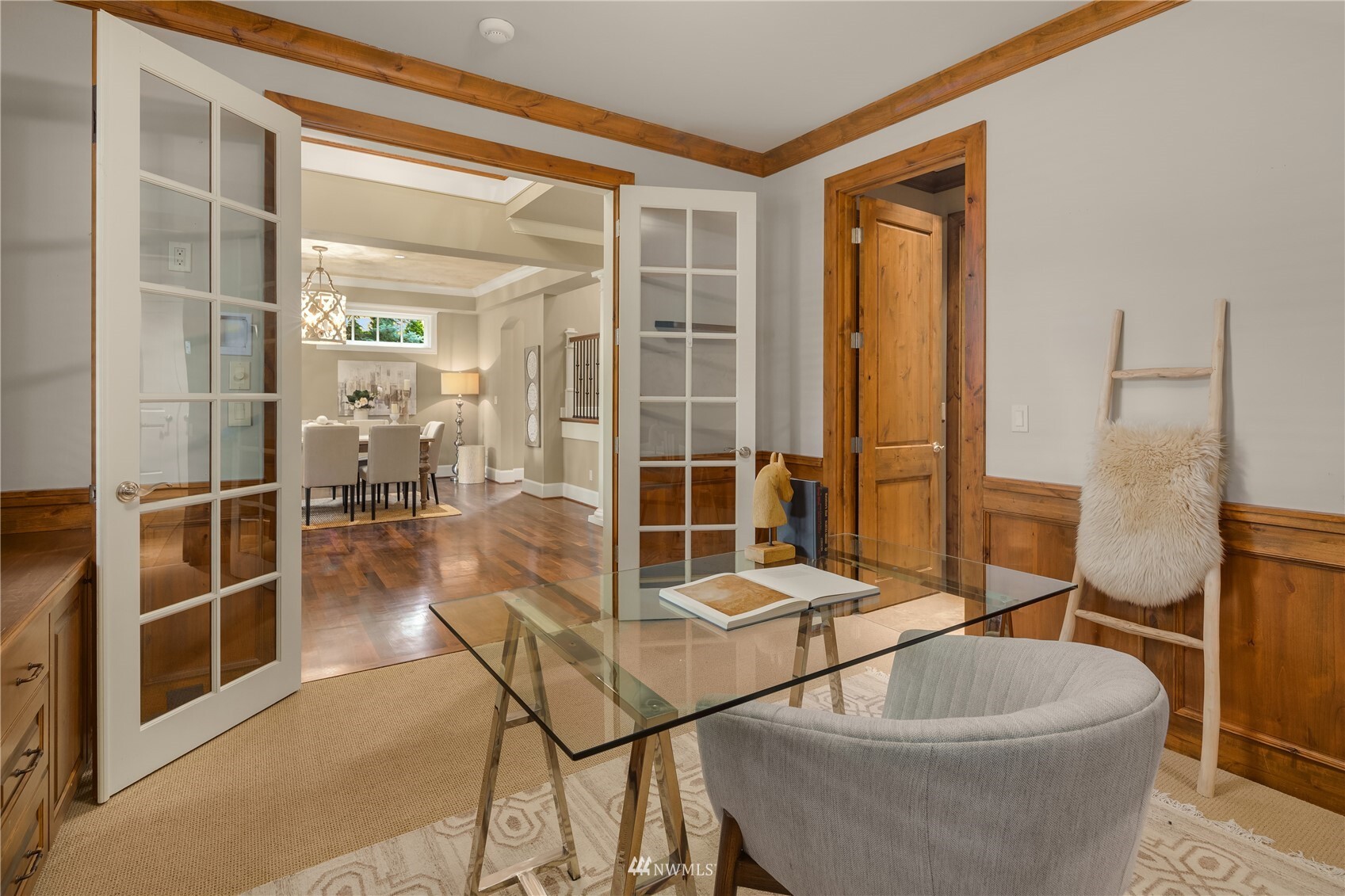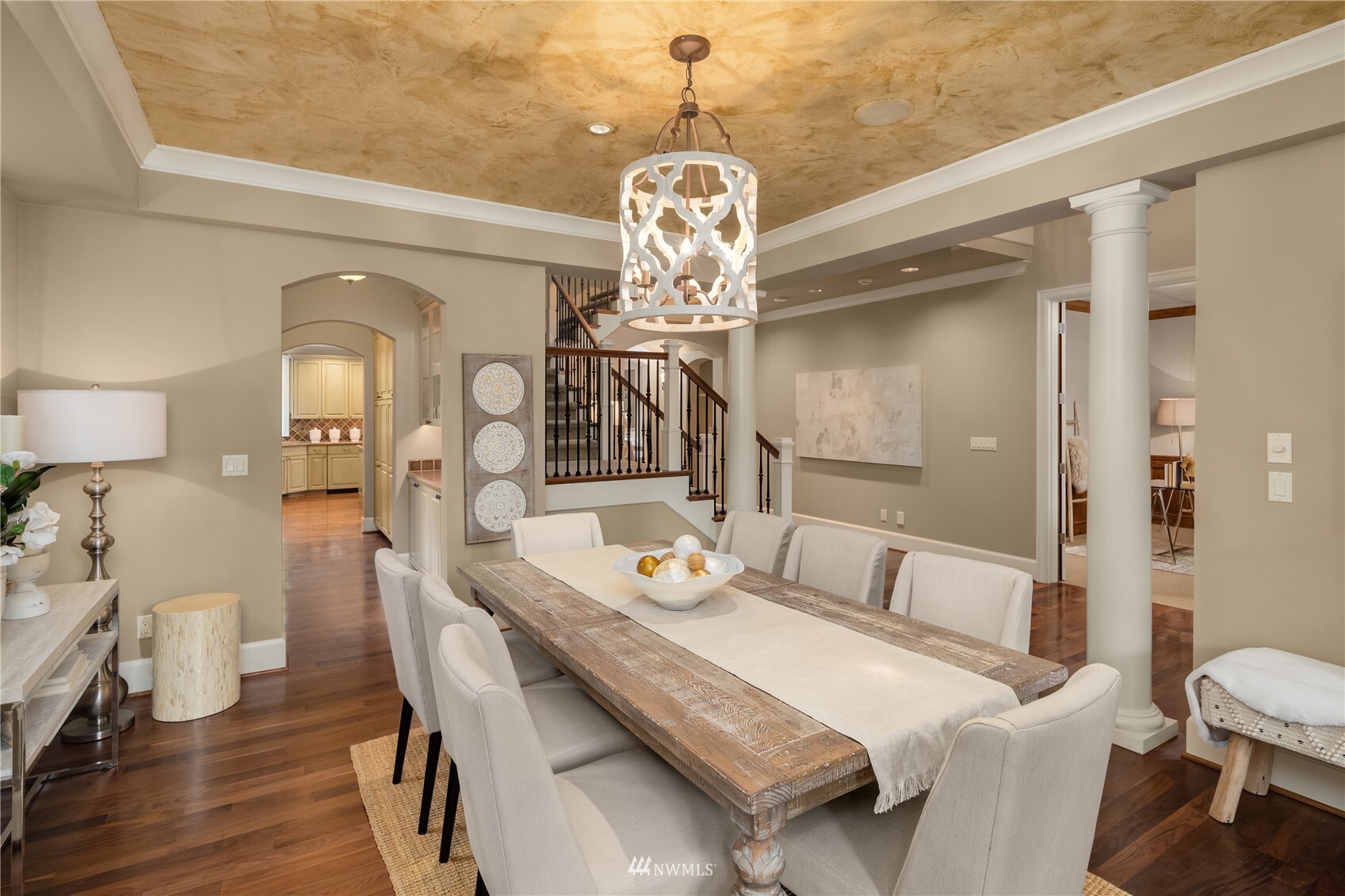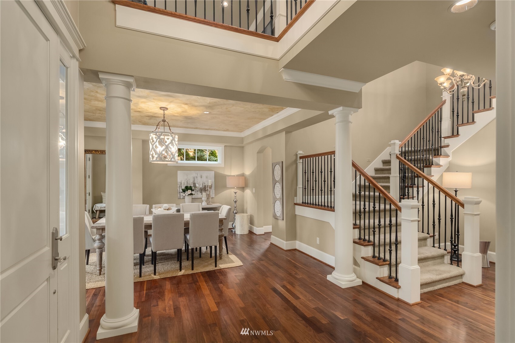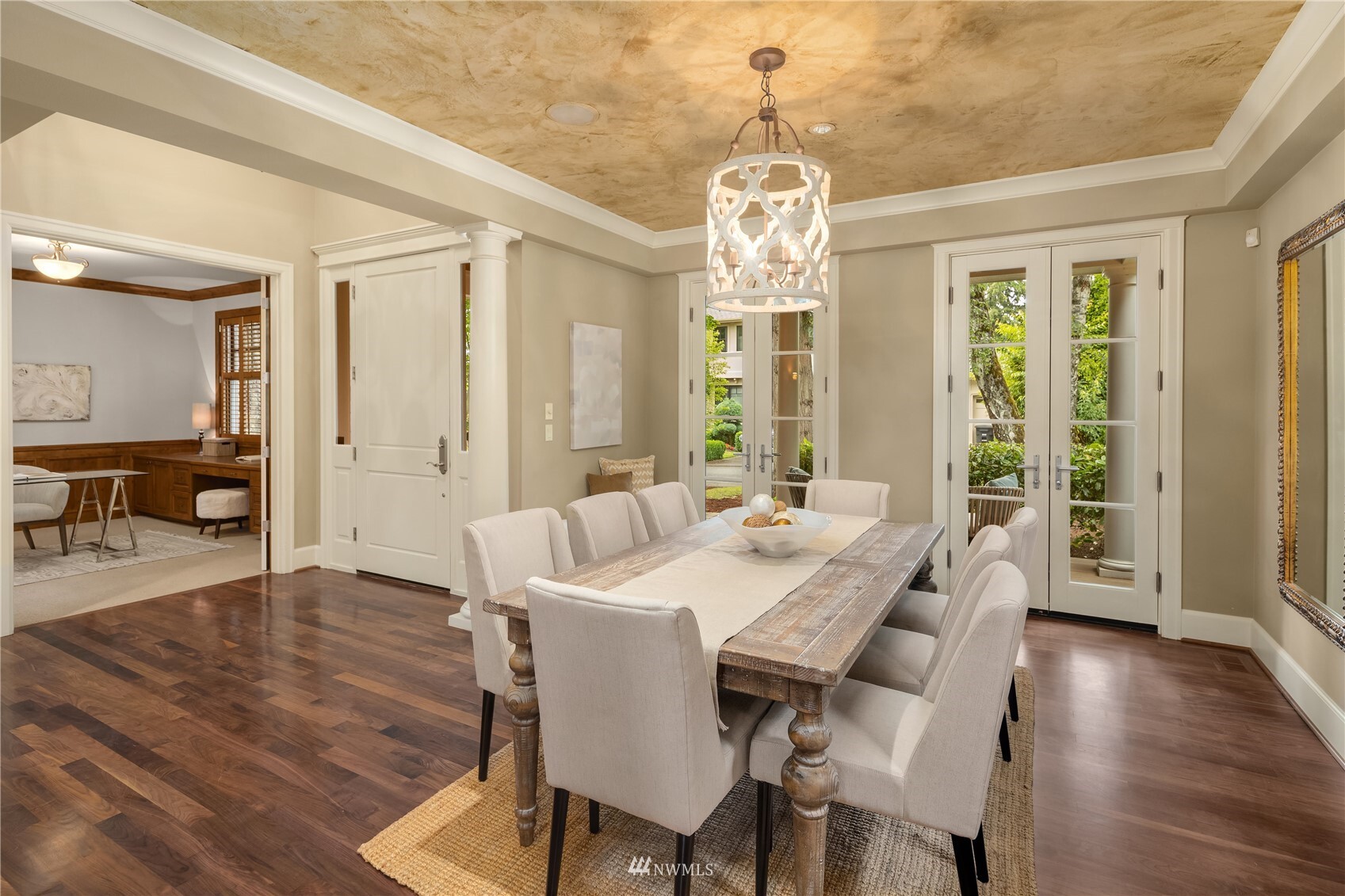 Stunning, traditional custom home built by well-known luxury builder, Beckes Homes. Vaulted ceilings, french doors, and gleaming hardwood floors. Chef's kitchen with large center island. Center island seating and casual dining. Sliding door opens to the patio, outdoor fire pit and big, level backyard. Formal dining room with two sets of french doors open to a charming deck. Main level Guest Room or Office with attached 3/4 Bath. Expansive primary bedroom with ensuite bathroom and large walk in closet. 3 more spacious bedrooms, 2 bathrooms and bonus flex space complete the second floor. Three car attached garage with plenty of storage.