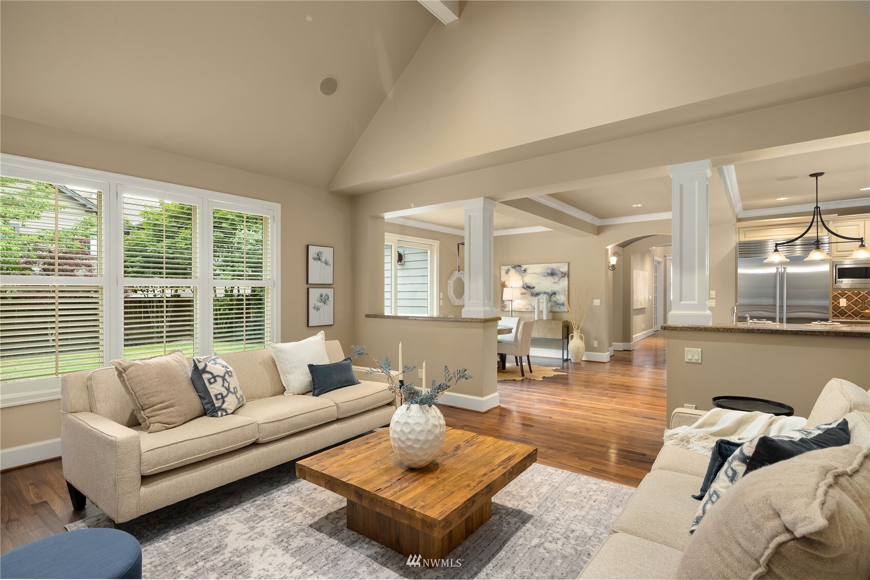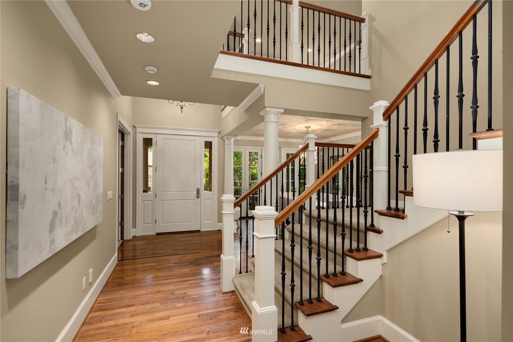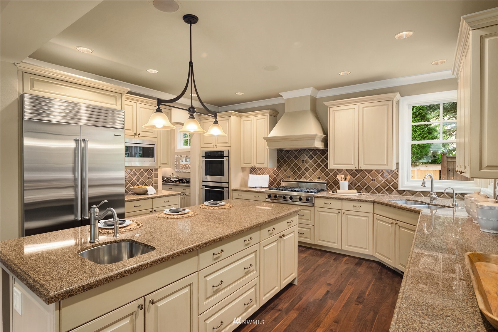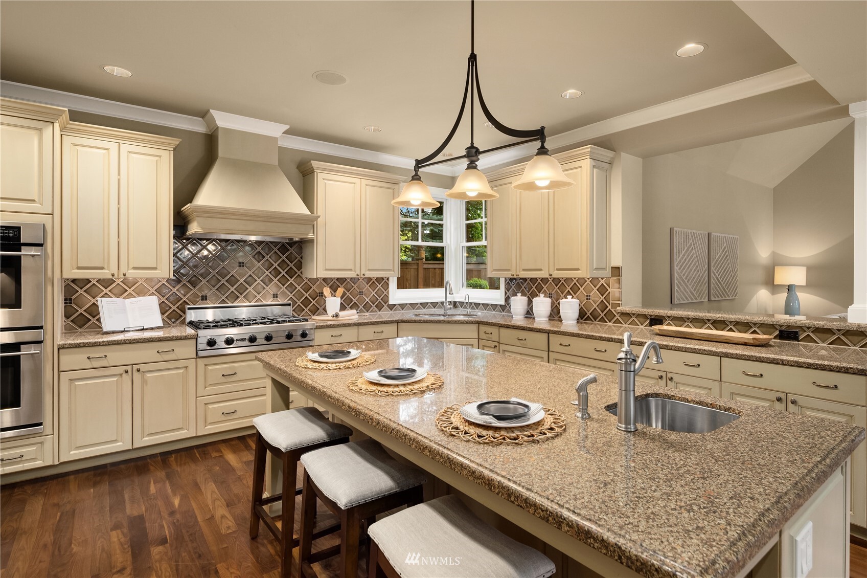 Stunning, traditional custom home built by well-known luxury builder, Beckes Homes. Vaulted ceilings, french doors, and gleaming hardwood floors. Chef's kitchen with large center island. Center island seating and casual dining. Sliding door opens to the patio, outdoor fire pit and big, level backyard. Formal dining room with two sets of french doors open to a charming deck. Main level Guest Room or Office with attached 3/4 Bath. Expansive primary bedroom with ensuite bathroom and large walk in closet. 3 more spacious bedrooms, 2 bathrooms and bonus flex space complete the second floor. Three car attached garage with plenty of storage.