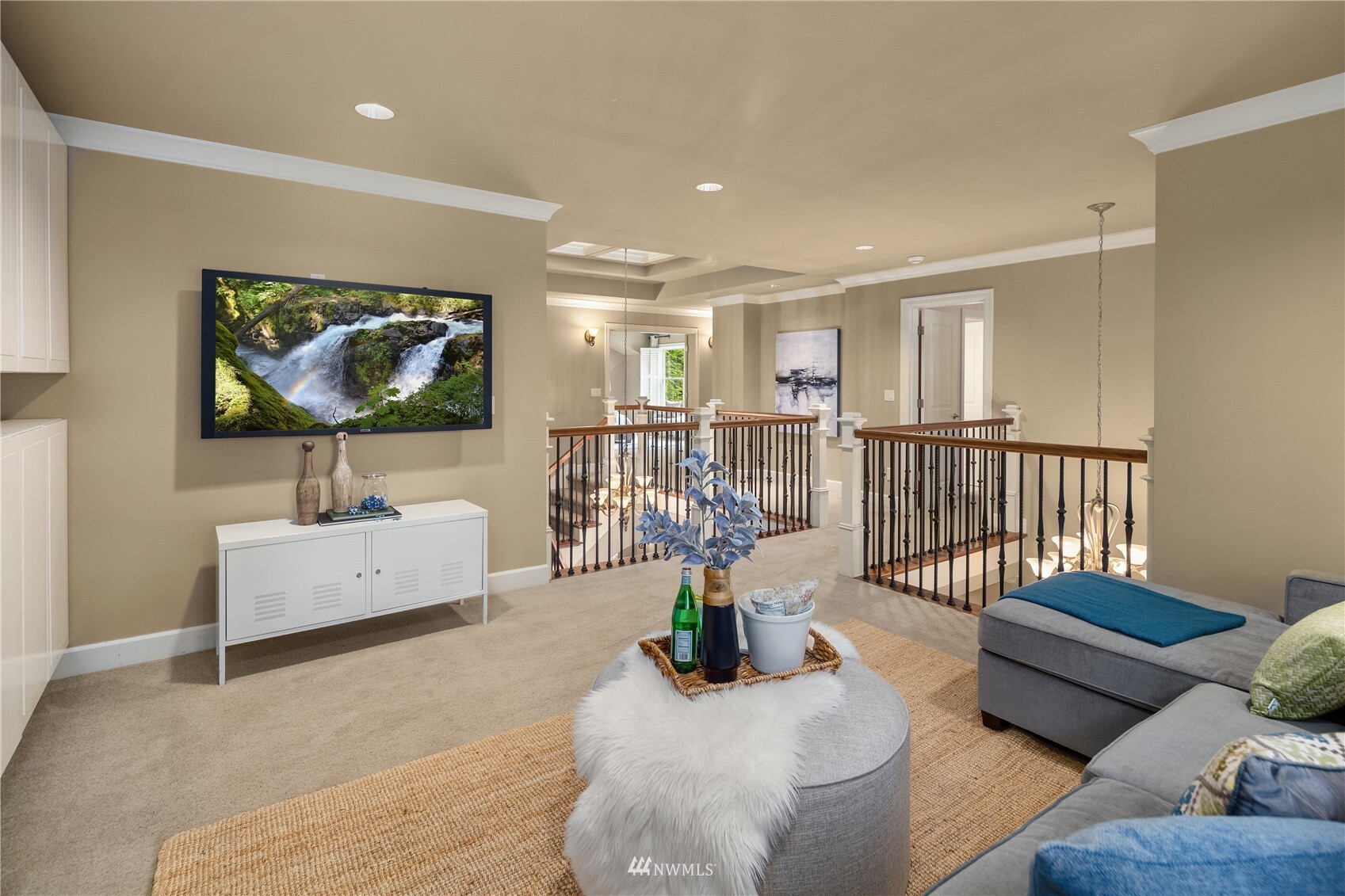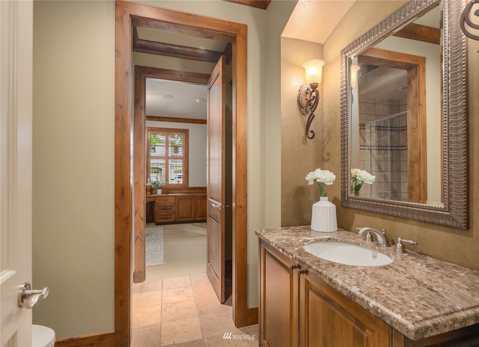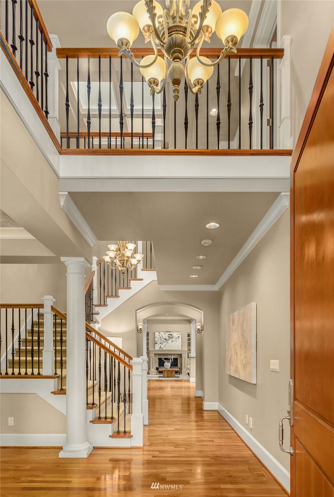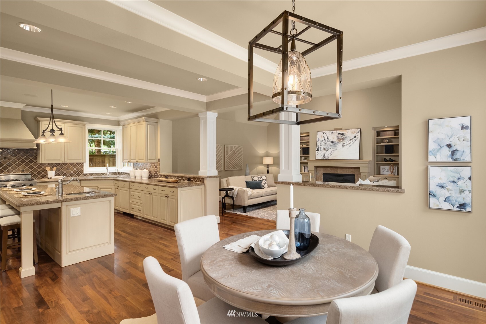 Stunning, traditional custom home built by well-known luxury builder, Beckes Homes. Vaulted ceilings, french doors, and gleaming hardwood floors. Chef's kitchen with large center island. Center island seating and casual dining. Sliding door opens to the patio, outdoor fire pit and big, level backyard. Formal dining room with two sets of french doors open to a charming deck. Main level Guest Room or Office with attached 3/4 Bath. Expansive primary bedroom with ensuite bathroom and large walk in closet. 3 more spacious bedrooms, 2 bathrooms and bonus flex space complete the second floor. Three car attached garage with plenty of storage.