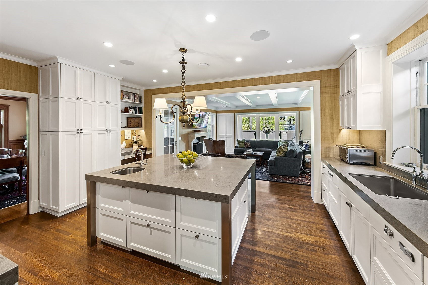 Warmth, dignity, impeccable detail, this stately 1920 Mediterranean offers comfort and elegance in a prime neighborhood. The original design and superior craftsmanship, enhanced by a Stuart Silk 2-story addition delivers ample space to gather or escape – offering both an open great room with beautifully appointed kitchen and impressive primary suite with balcony. Restored African Gum Wood mouldings enhance beautifully scaled spaces. The 2nd floor offers 3 large bedrooms, primary suite, 3 bathrooms and spacious deck. In the impeccably finished lower level, enjoy a game of pool, watch the ball game and select a bottle from the custom wine cellar. Guest quarters, landscaped gardens, abundant outdoor living spaces. Home, in a supreme location!