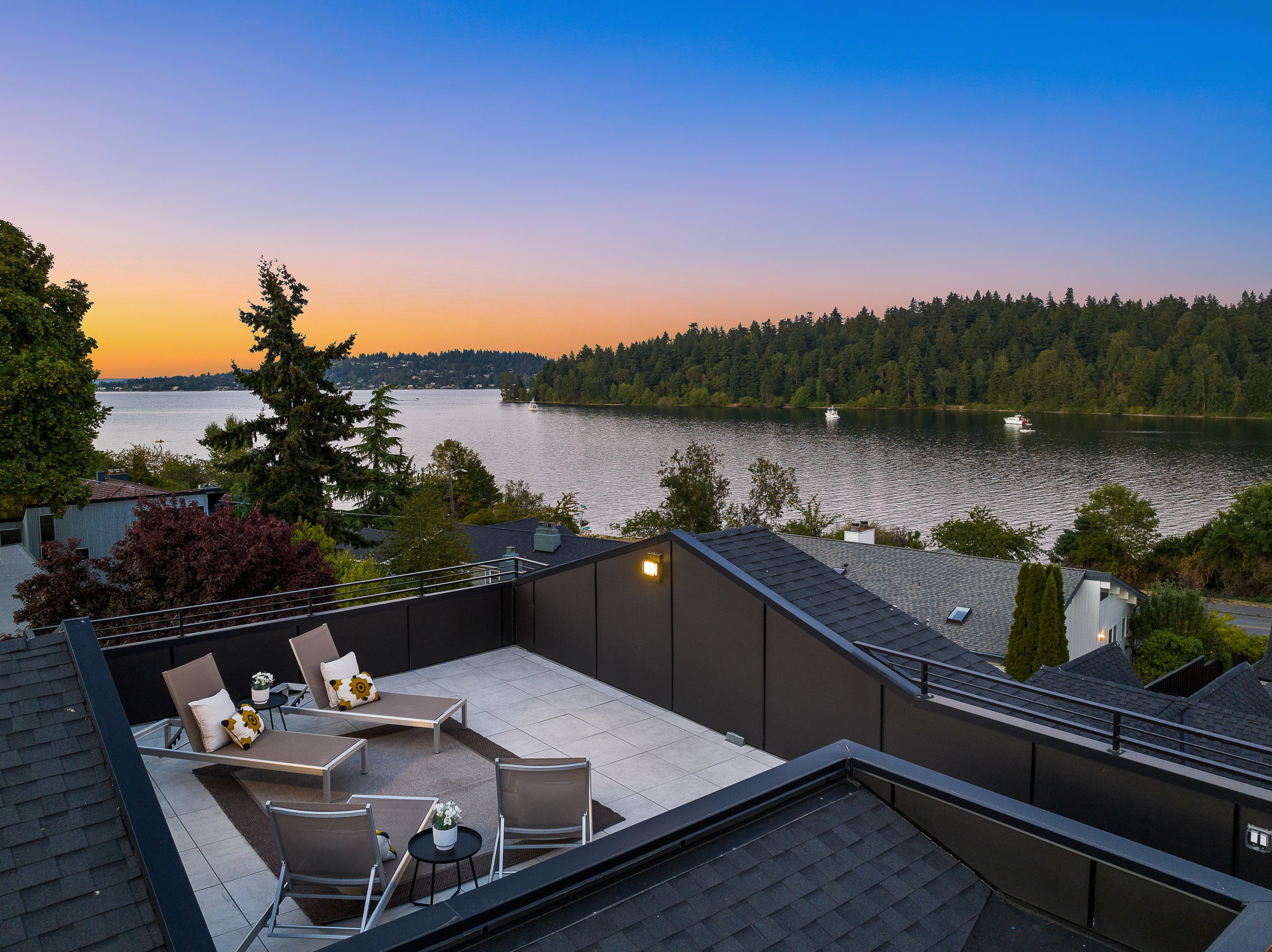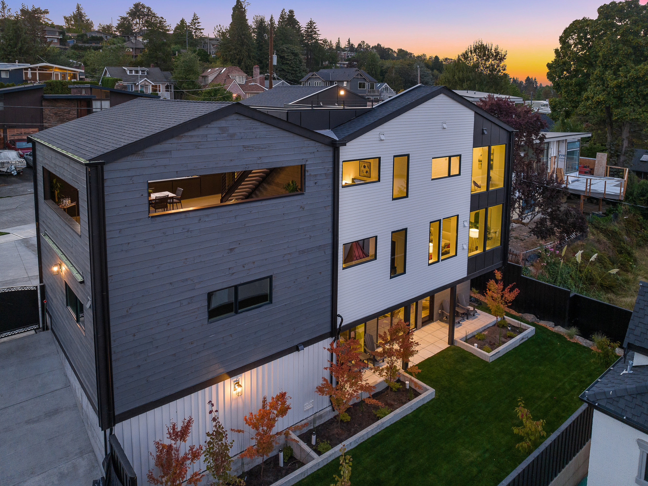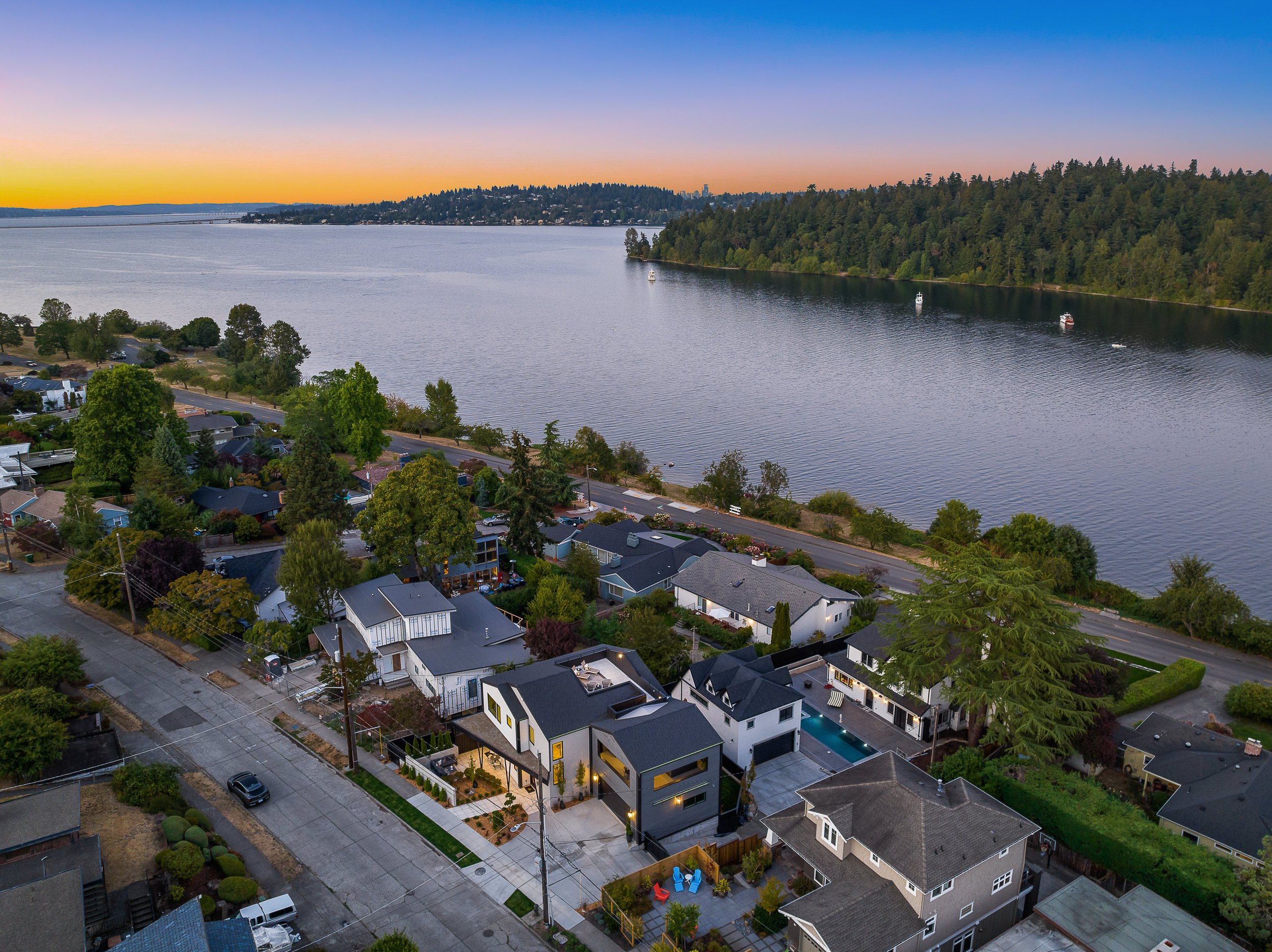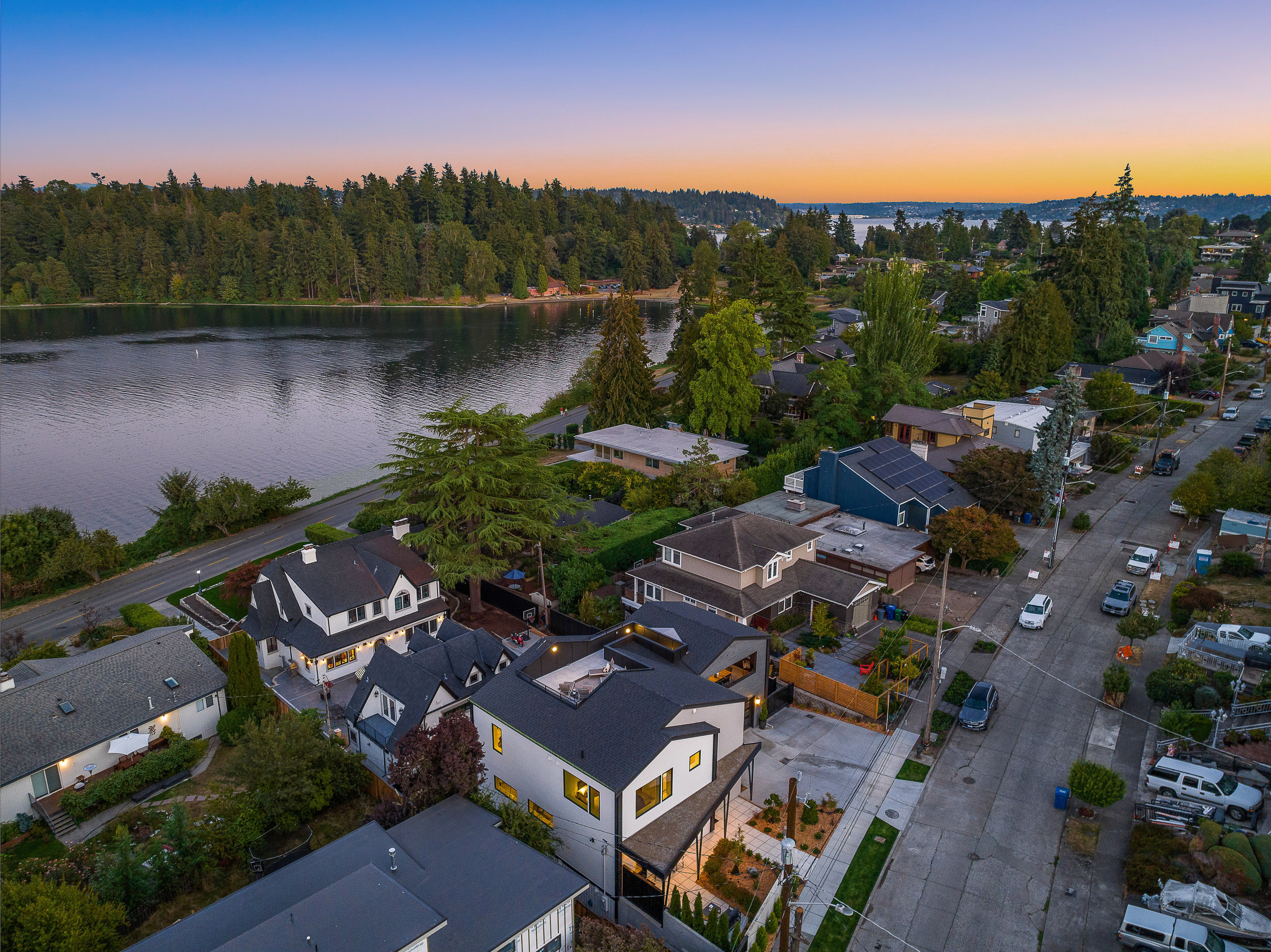 Stunning 5-Star Built Green VIEW home plus a spacious ADU for a tremendous value. Dwell Development is a leader in sustainable, high-quality modern minimalism. Lakehouse is designed for net-zero energy and is located in an urban lakeside oasis with close-up Lake Washington views. Stylish, luxurious finishes, a kitchen straight out of Architectural Digest, luxe primary retreat, main floor guest suite, covered entertaining deck, private enclosed patio, and rooftop deck with expansive views. Level grassy yard, a huge room for media, a gym, wine, and more. Solar-ready, 2 EV chargers, efficient heating and cooling, HRV + Filtered air.