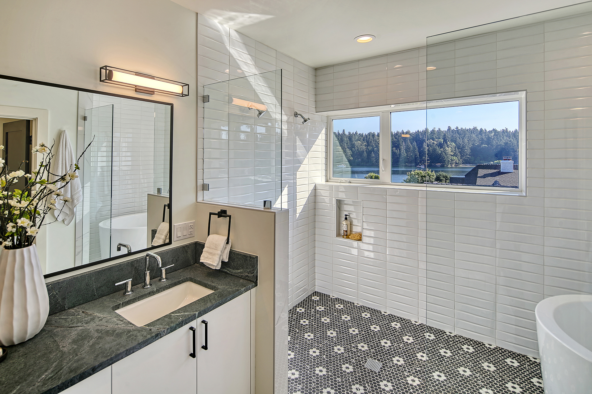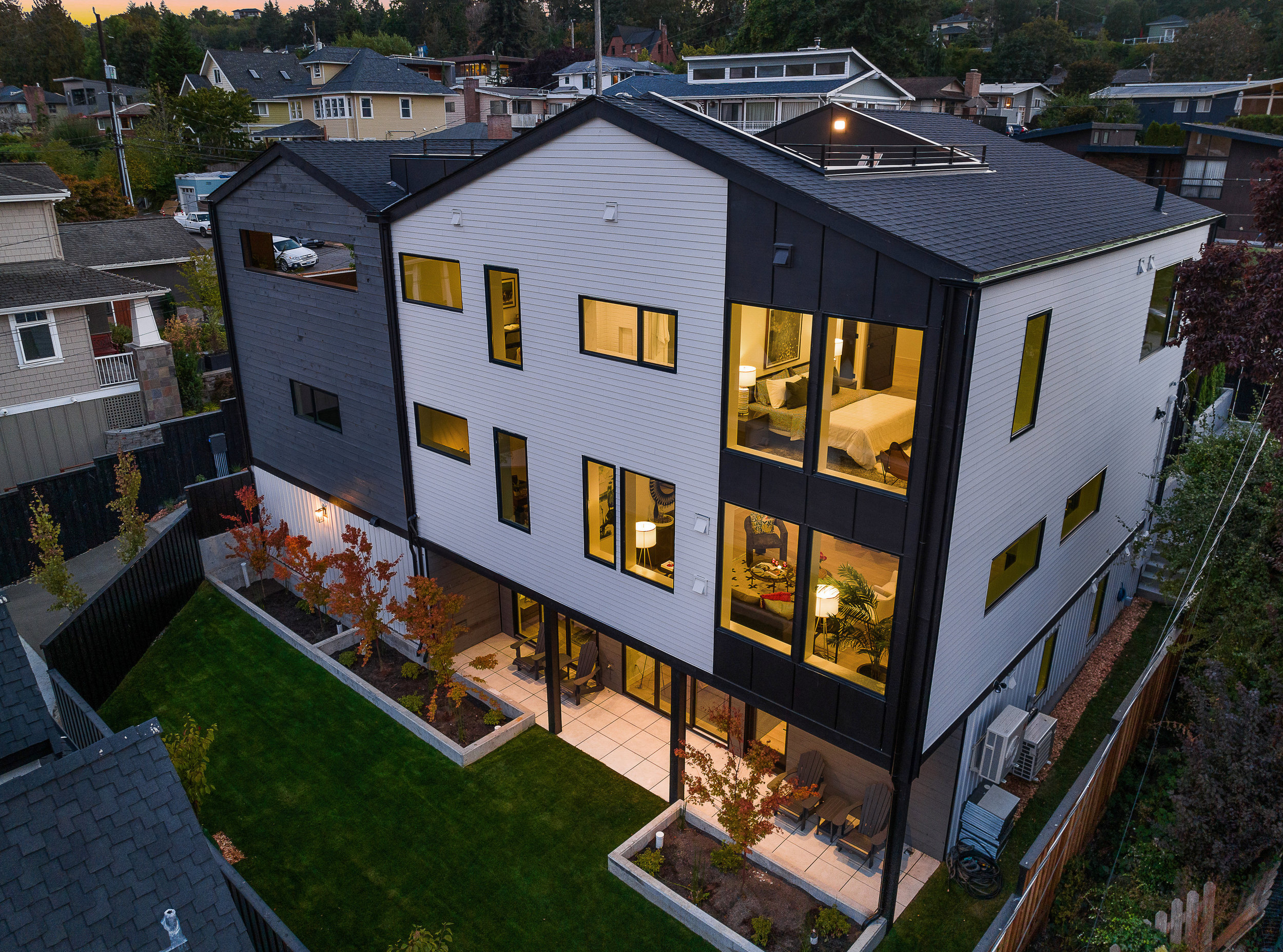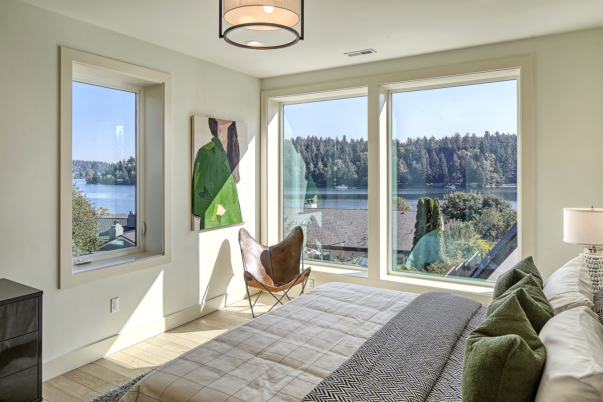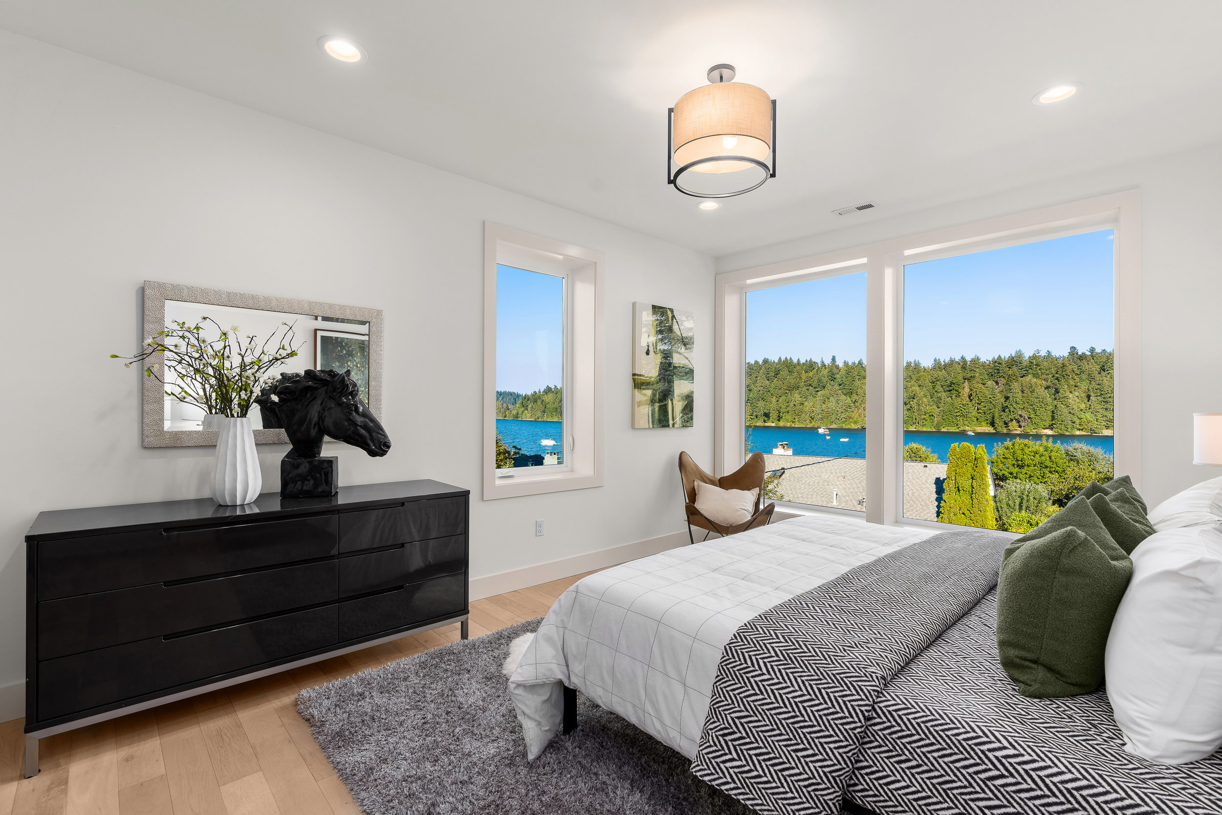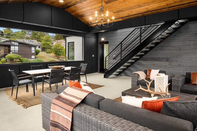 Stunning 5-Star Built Green VIEW home plus a spacious ADU for a tremendous value. Dwell Development is a leader in sustainable, high-quality modern minimalism. Lakehouse is designed for net-zero energy and is located in an urban lakeside oasis with close-up Lake Washington views. Stylish, luxurious finishes, a kitchen straight out of Architectural Digest, luxe primary retreat, main floor guest suite, covered entertaining deck, private enclosed patio, and rooftop deck with expansive views. Level grassy yard, a huge room for media, a gym, wine, and more. Solar-ready, 2 EV chargers, efficient heating and cooling, HRV + Filtered air.