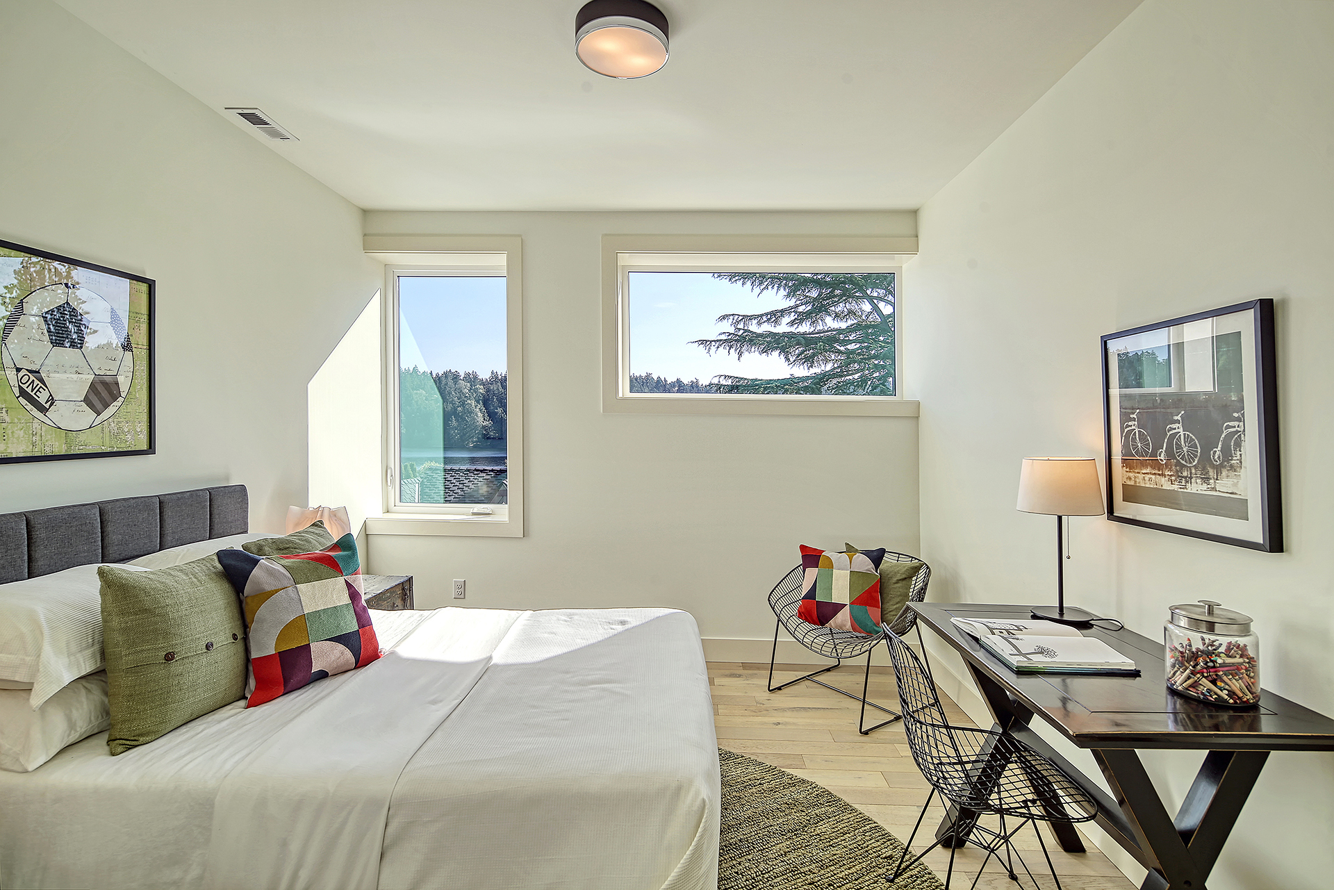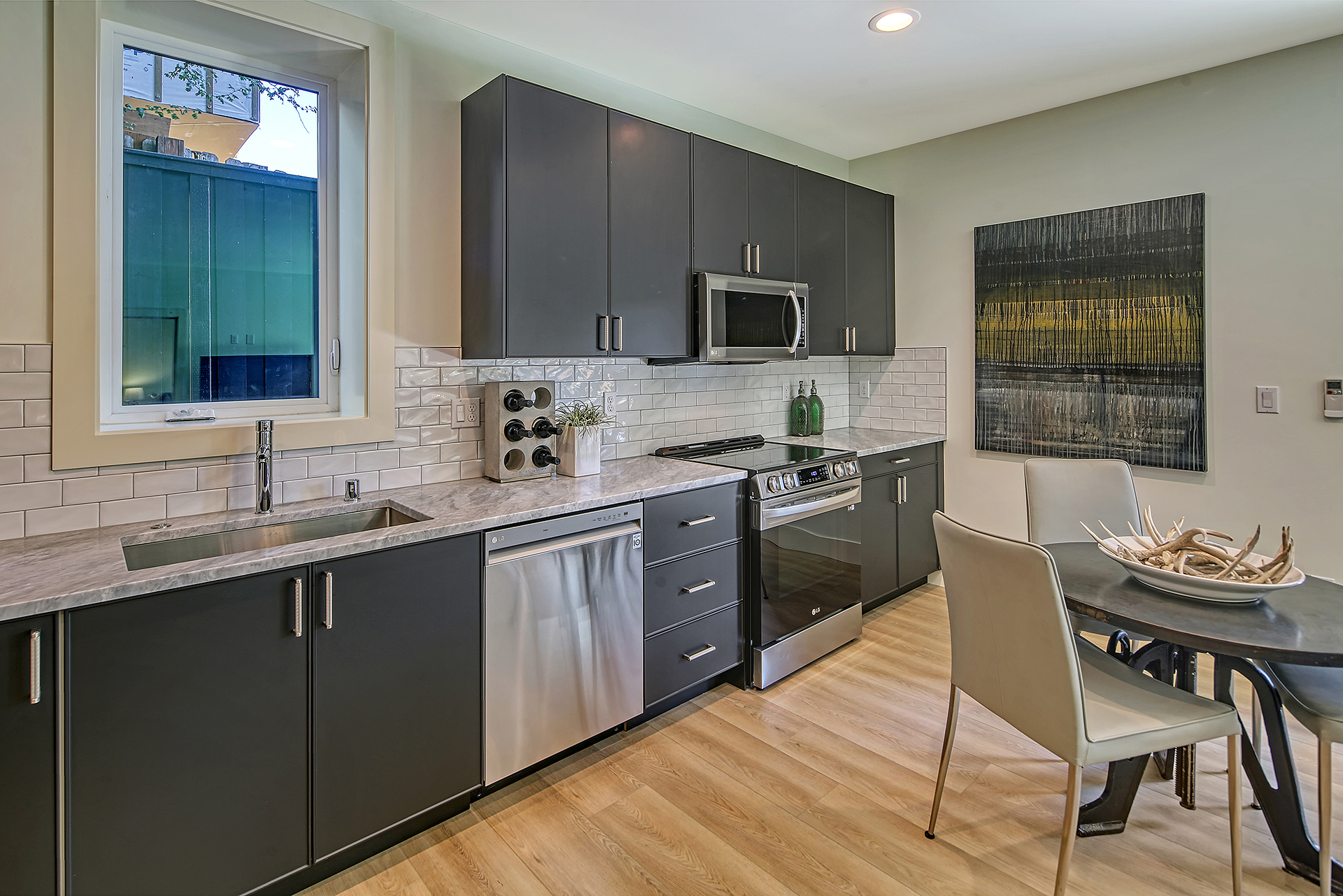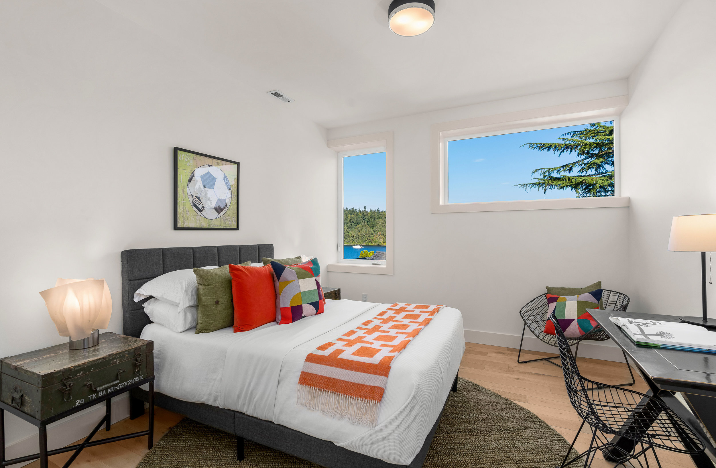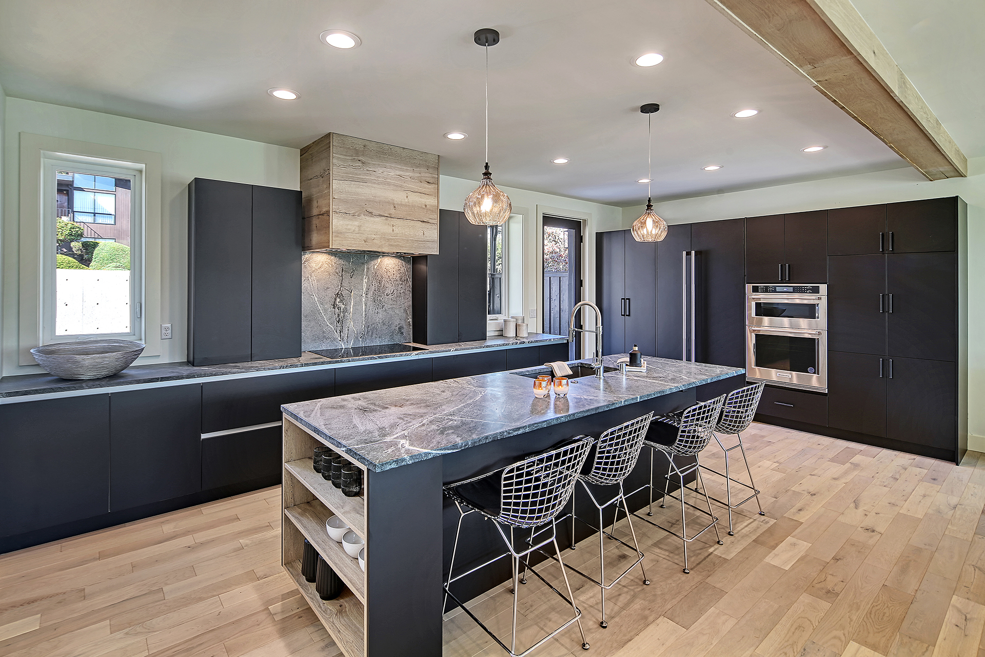 Stunning 5-Star Built Green VIEW home plus a spacious ADU for a tremendous value. Dwell Development is a leader in sustainable, high-quality modern minimalism. Lakehouse is designed for net-zero energy and is located in an urban lakeside oasis with close-up Lake Washington views. Stylish, luxurious finishes, a kitchen straight out of Architectural Digest, luxe primary retreat, main floor guest suite, covered entertaining deck, private enclosed patio, and rooftop deck with expansive views. Level grassy yard, a huge room for media, a gym, wine, and more. Solar-ready, 2 EV chargers, efficient heating and cooling, HRV + Filtered air.