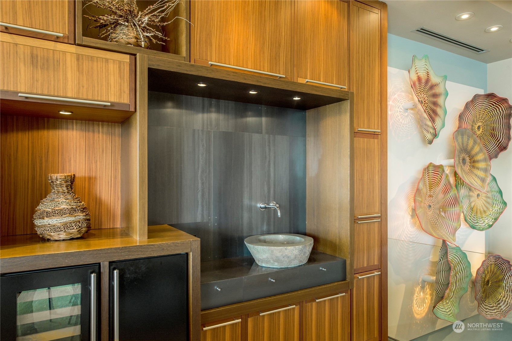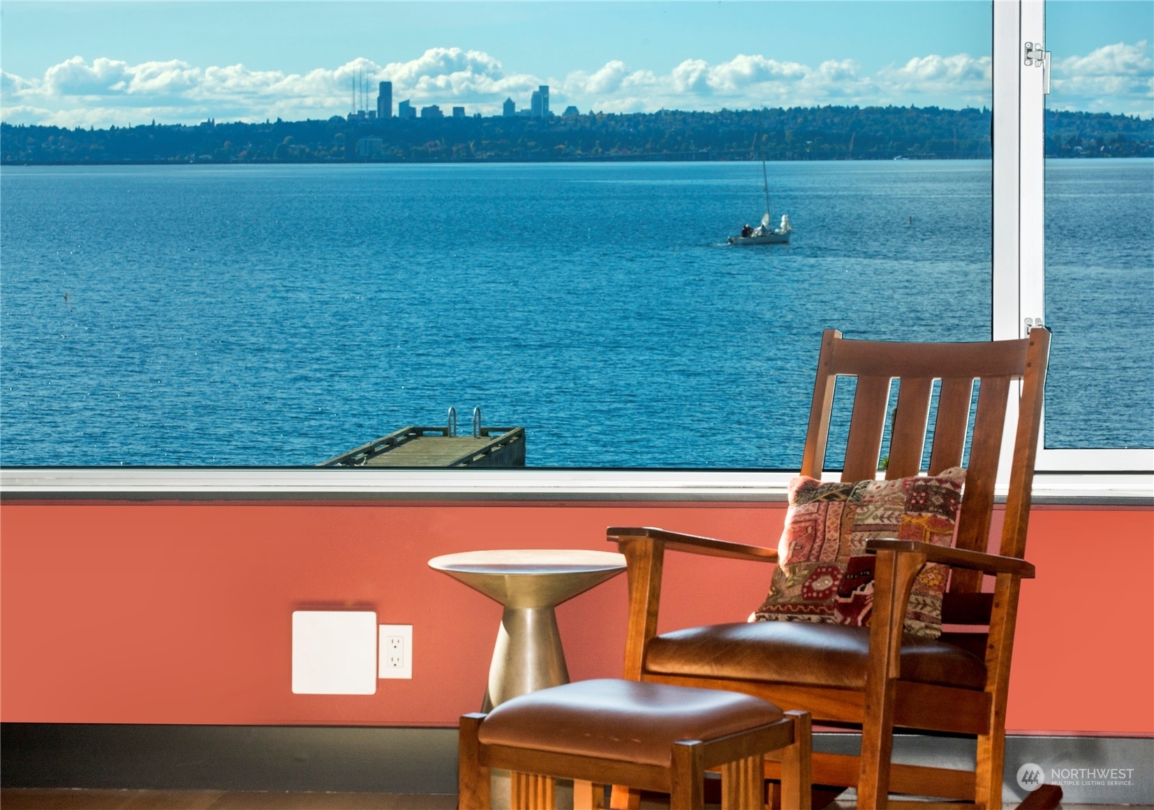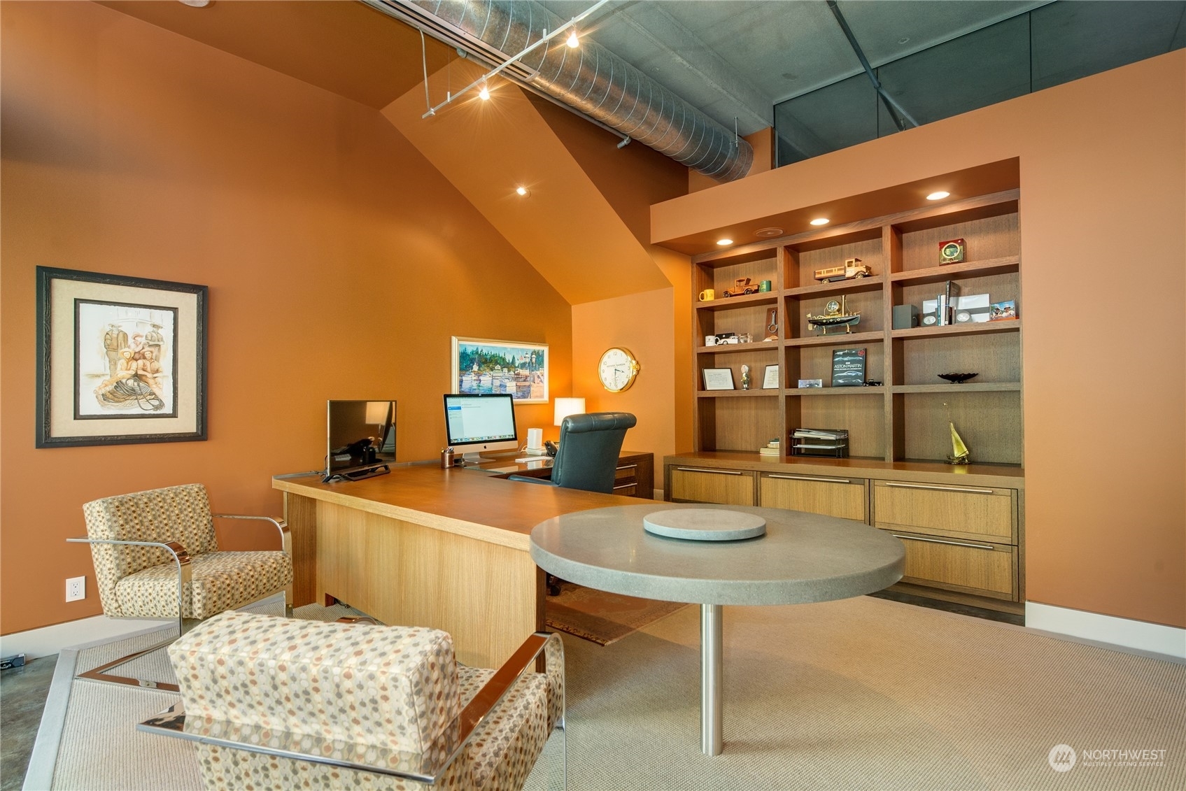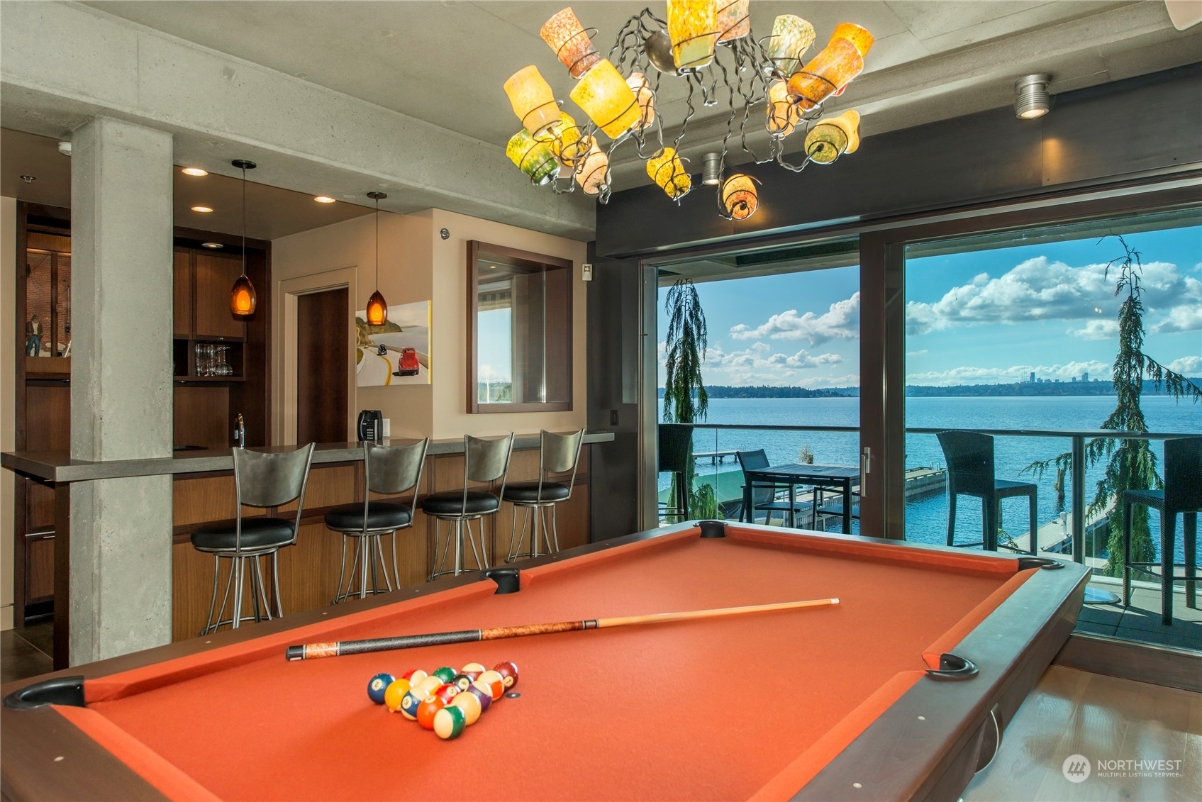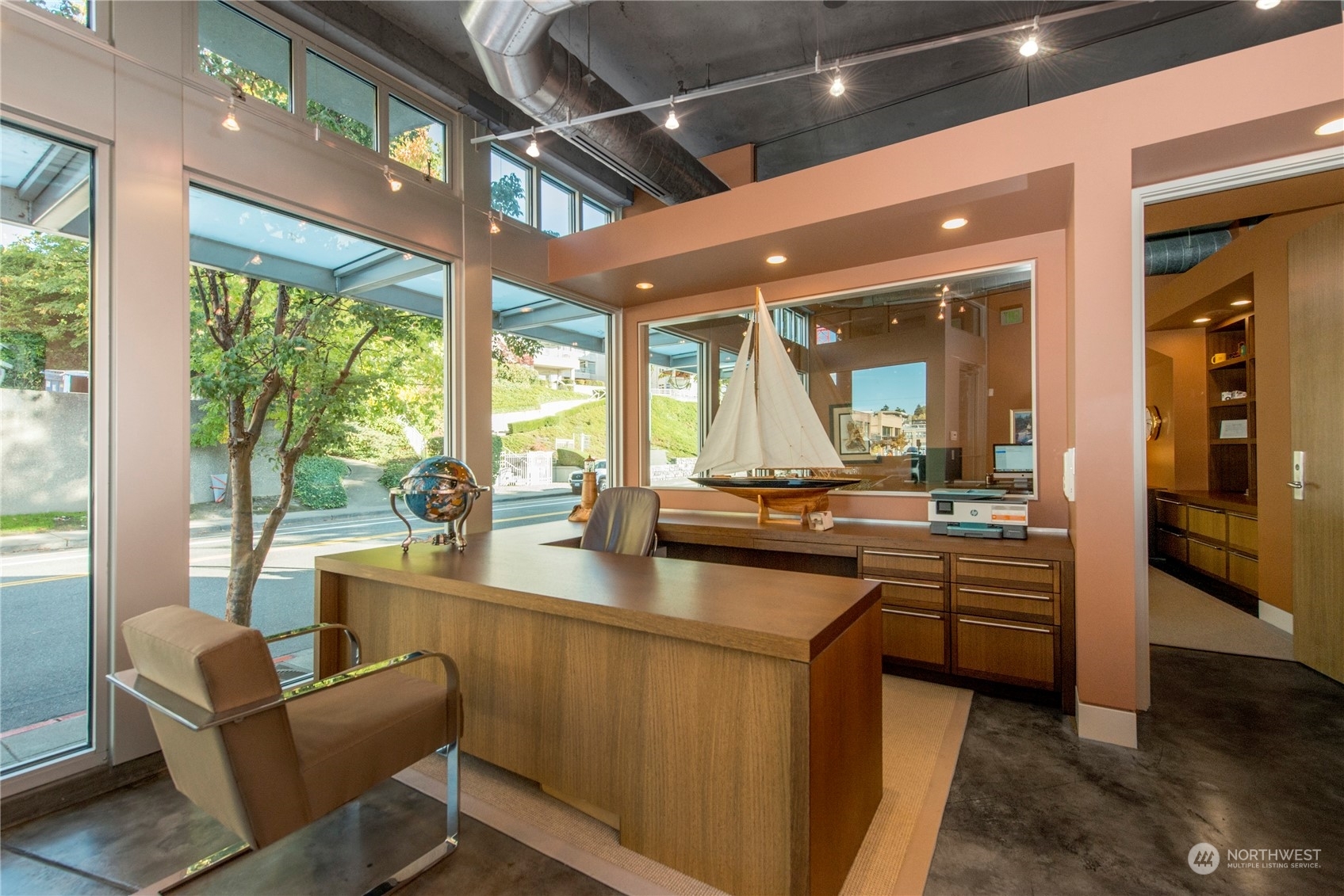One of a kind waterfront. Lock and leave with stunning Industrial Modern Design. Sweeping views of Lake Washington and Olympic Mountains. The finest construction of steel and concrete in heart of City, yet so private. 4 en suite bedrooms. Finished 3,375 square foot heated garage with collector car exhaust extractor easily parks 9 cars. Locked gated dock with concrete pilings and solar power lift capable for mooring a significant yacht. Wet bar and temperature controlled wine room. Elevator services 3 floors from garage to top floor. Street level separate entrance to office suites. Imagine your home with collector car parking, yacht moorage, office suites in the heart of Kirkland. Lifestyle perfection.
