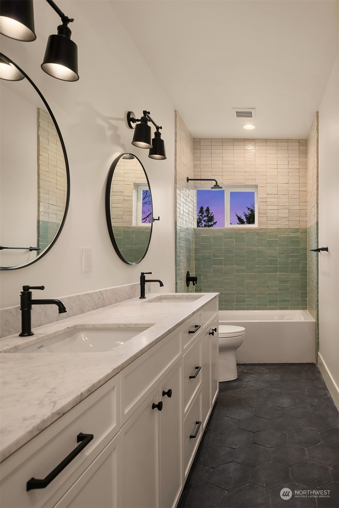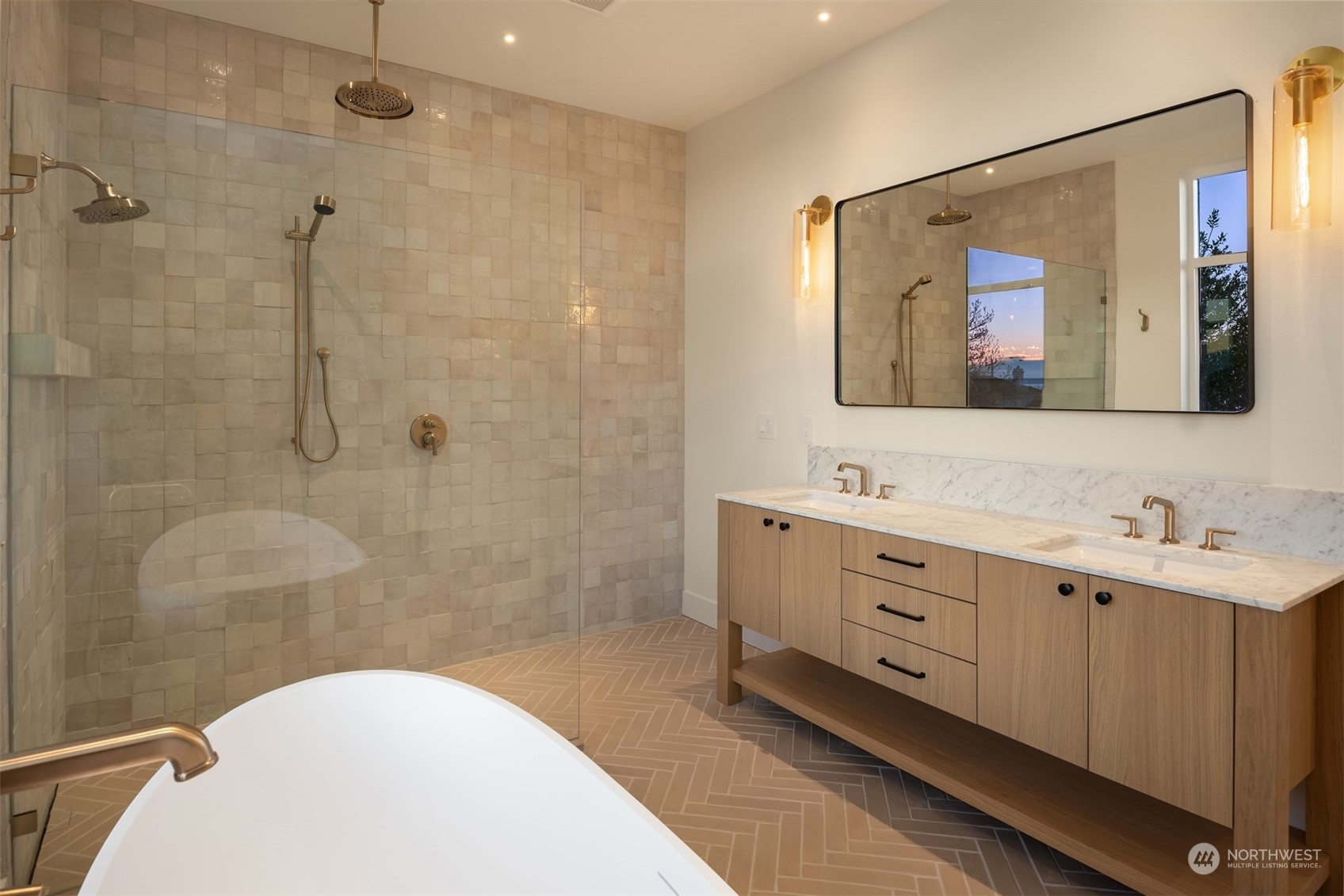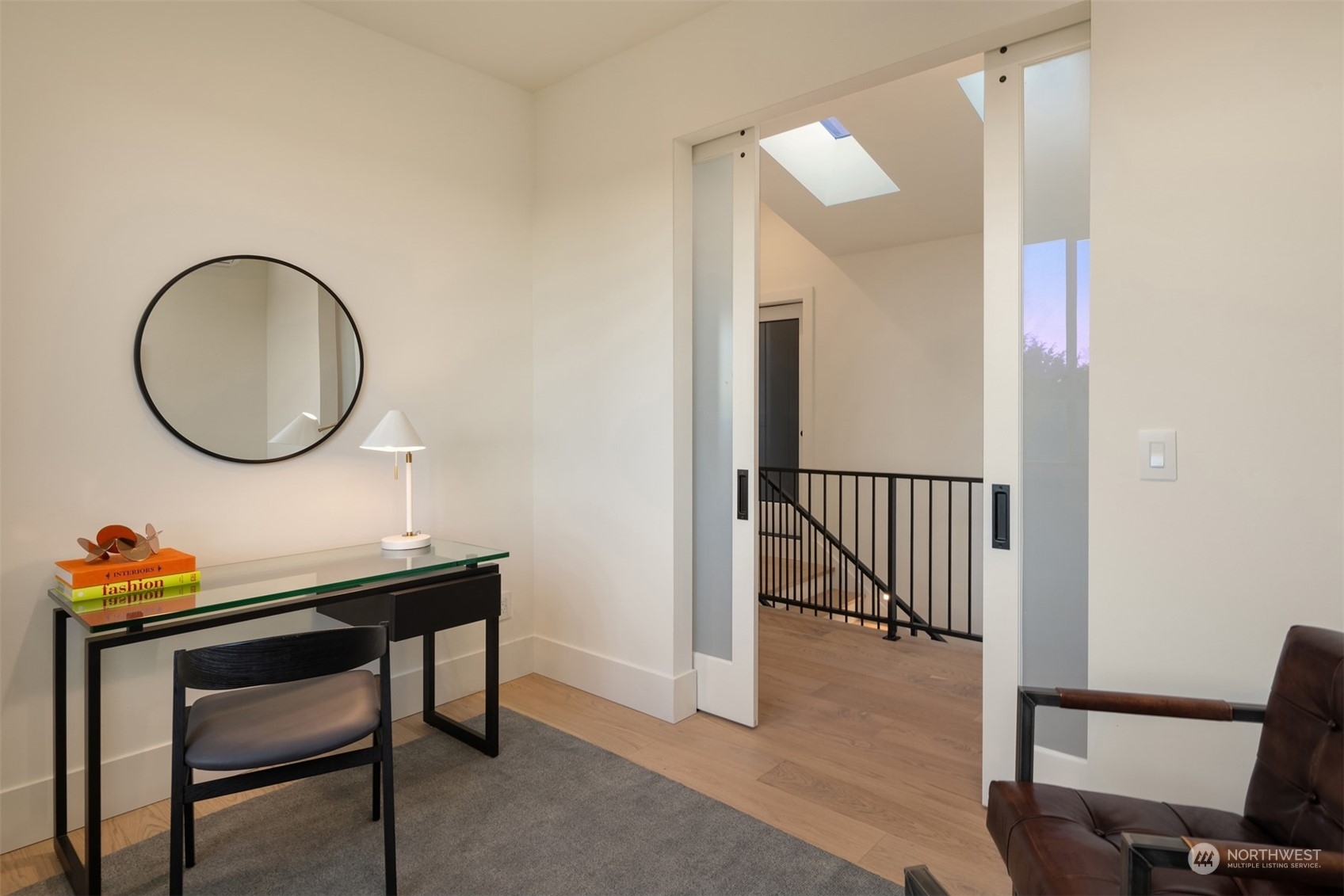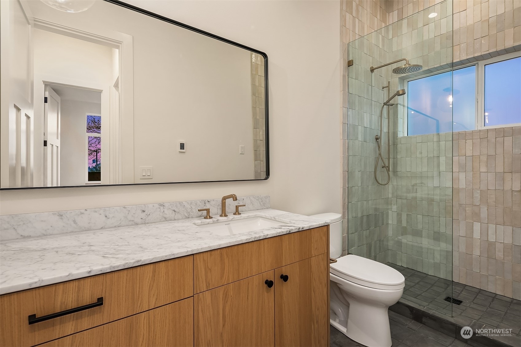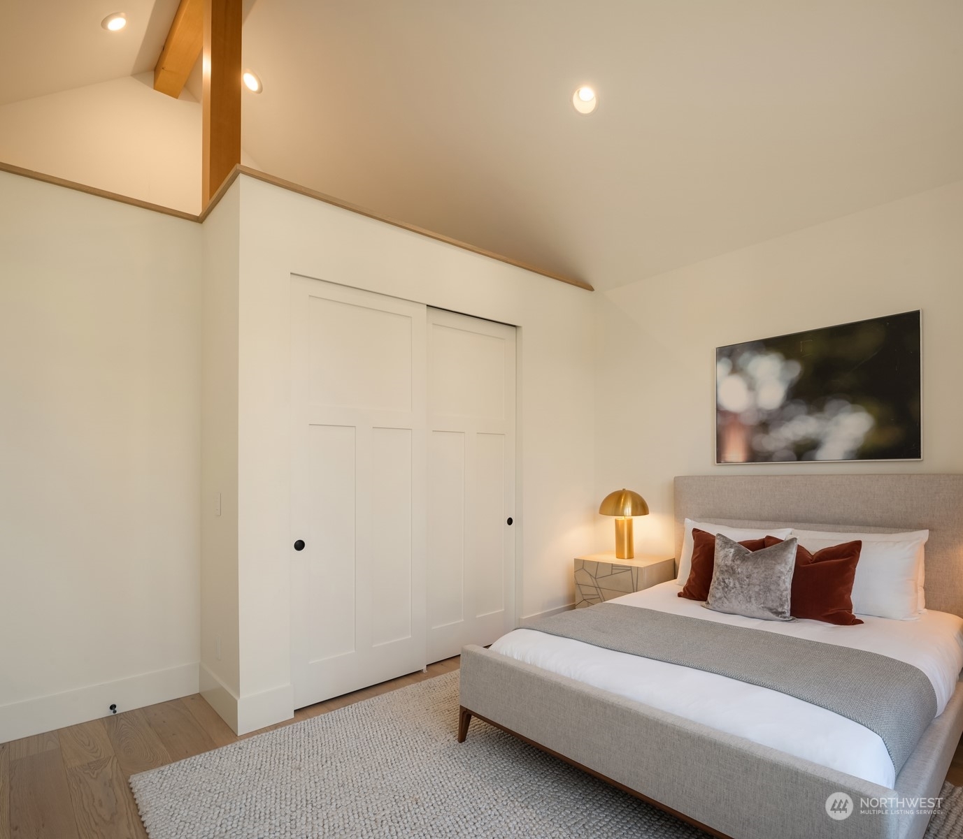 This new privately commissioned home from acclaimed developer Halverson Design Build reflects the elegance of North Capitol Hill’s most sought-after street – Federal Avenue. Enjoy stunning views of Seattle, Lake Union, and Olympic Mountains from the home’s expansive windows and spacious rooftop deck. This masterfully-designed home boasts abundant natural light, soaring ceilings + exquisitely curated finishes. Open-concept living features hardwoods, exposed beams, custom built-ins + fireplace. Chef’s kitchen impresses with premier appliances, Carrara marble counters, + large pantry. Retreat in luxury to owner’s suite with cathedral ceilings, fireplace, skylights, + spa-like bath. Home office, fenced backyard, bonus rooms, + two-car garage.