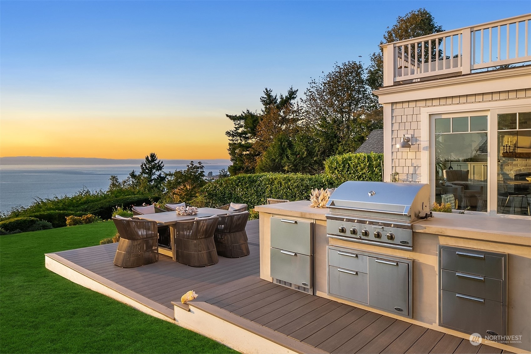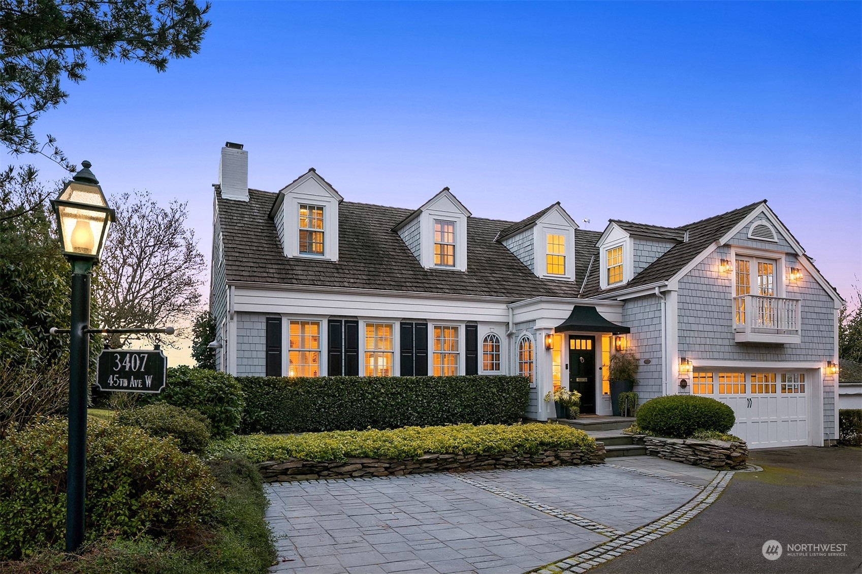 Stunning Magnolia Cape Cod harmonizes the pinnacle of Seattle living w/ the true comfort of home. This exquisite residence has been reimagined to capture the beauty & grace of the era while thoughtfully incorporating modern day life. With 180 degree Sound & Mountain views, this spectacular setting offers a picturesque backdrop from almost every room. Coveted floorplan w/ 4 bedrooms up & guest suite plus media room down. Entertain seamlessly w/ an open concept main floor leading to a breathtaking backyard retreat. Soak in the majestic sunsets from the entertaining deck or relax & enjoy the scenic beauty from the upper balcony. Located on a private cul-de-sac this home exudes luxury & charm, while welcoming everyone with its inviting allure.
